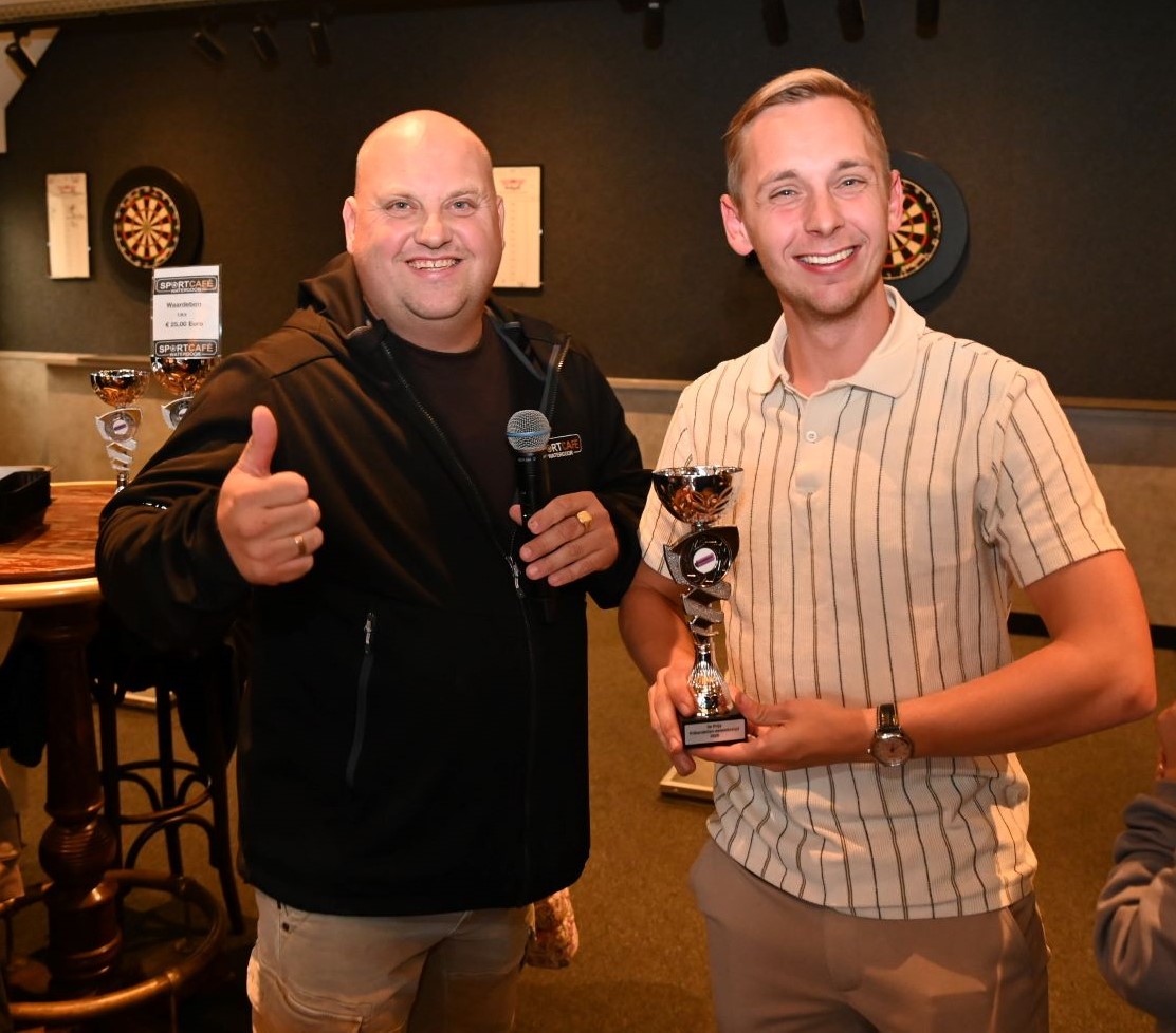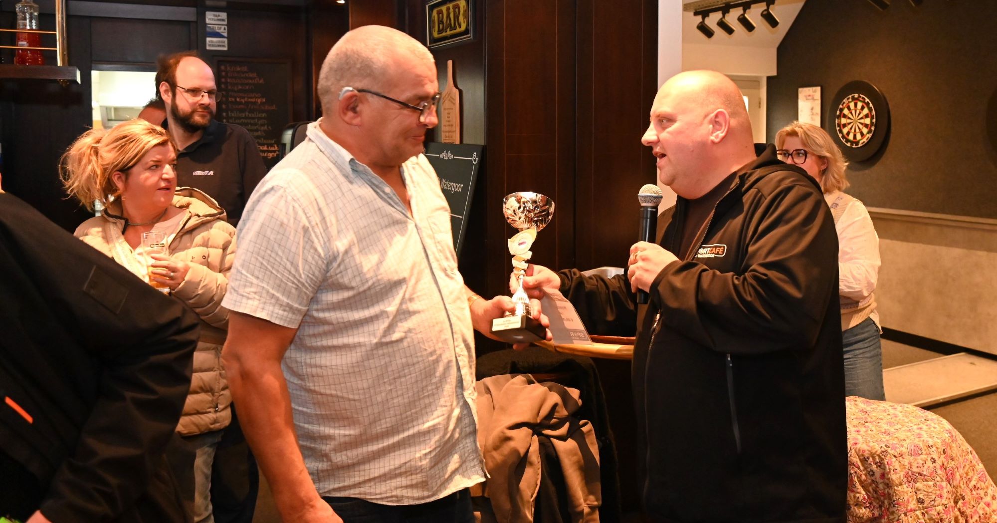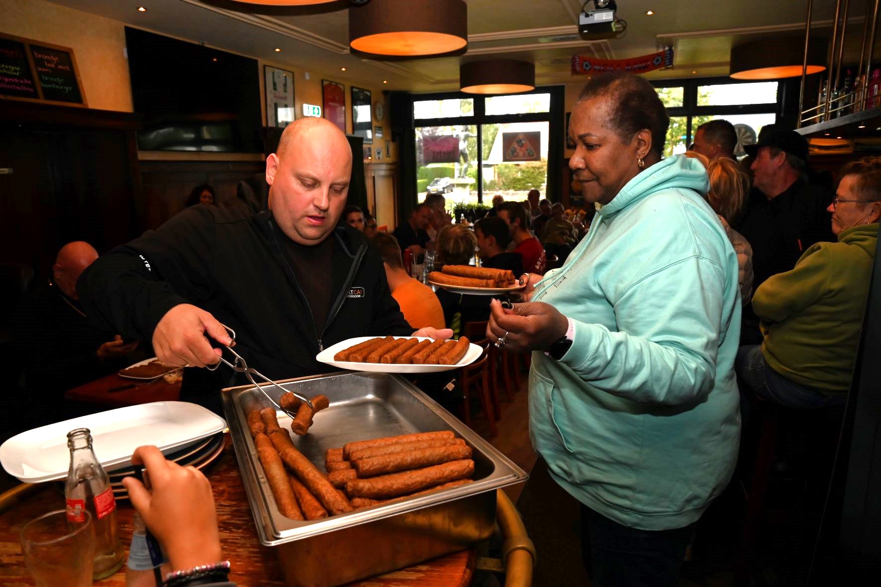 Eddy van de Beek is vrijdagavond 26 september uitgeroepen tot Nijkerks kampioen frikandellen eten. Dat kampioenschap vond plaats in sportcafé Watergoor. Er waren liefst zestien deelnemers. De tactiek van Eddy was om vier frikandellen tegelijk te eten. Uiteindelijk wist hij 17 frikandellen te verorberen. Dat is overigens nog geen record. Nummer 2 werd Teuno en het brons was voor Colin Blom. Uit handen van Marc van de Akker ontvingen de prijswinnaars een beker en voor de winnaar was er een tegoedbon van het sportcafé. Foto Kees van den Heuvel