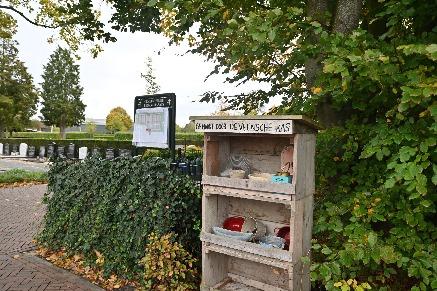De uitbreiding van de begraafplaats in Nijkerkerveen is afgerond. Er is extra ruimte gecreƫerd met in potentie 254 nieuwe plekken en er zijn een urnenmuur en een strooiveld aangelegd. Maar daarna zit de begraafplaats wel aan haar taks. Om het resultaat te zien was er zaterdag 25 oktober een open inloopochtend. Iedereen was welkom om het resultaat te bekijken en in gesprek te gaan met medewerkers van de gemeente. Zij gaven uitleg over de uitbreiding en informeerden de mensen over de mogelijkheden en kosten van begraven in de gemeente Nijkerk. In 2021 heeft er een eerste gesprek plaatsgevonden met verschillende aanwonenden over het uitbreiden van de begraafplaats in Nijkerkerveen. Tijdens dit gesprek konden zij hun op- en aanmerkingen maken. Met alle informatie uit dit gesprek is er een voorontwerp gemaakt voor het uitbreiden van de begraafplaats. foto Kees van den Heuvel