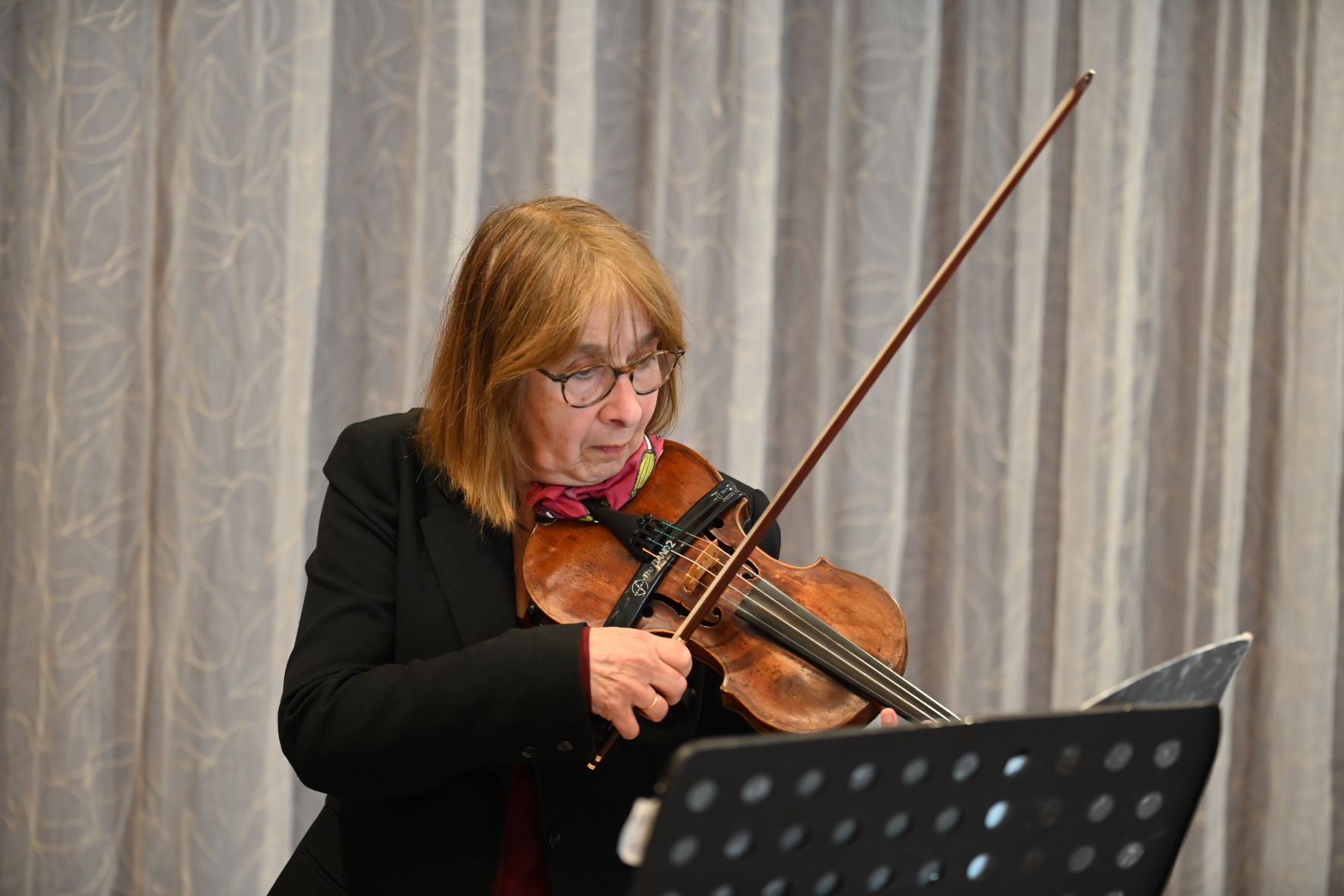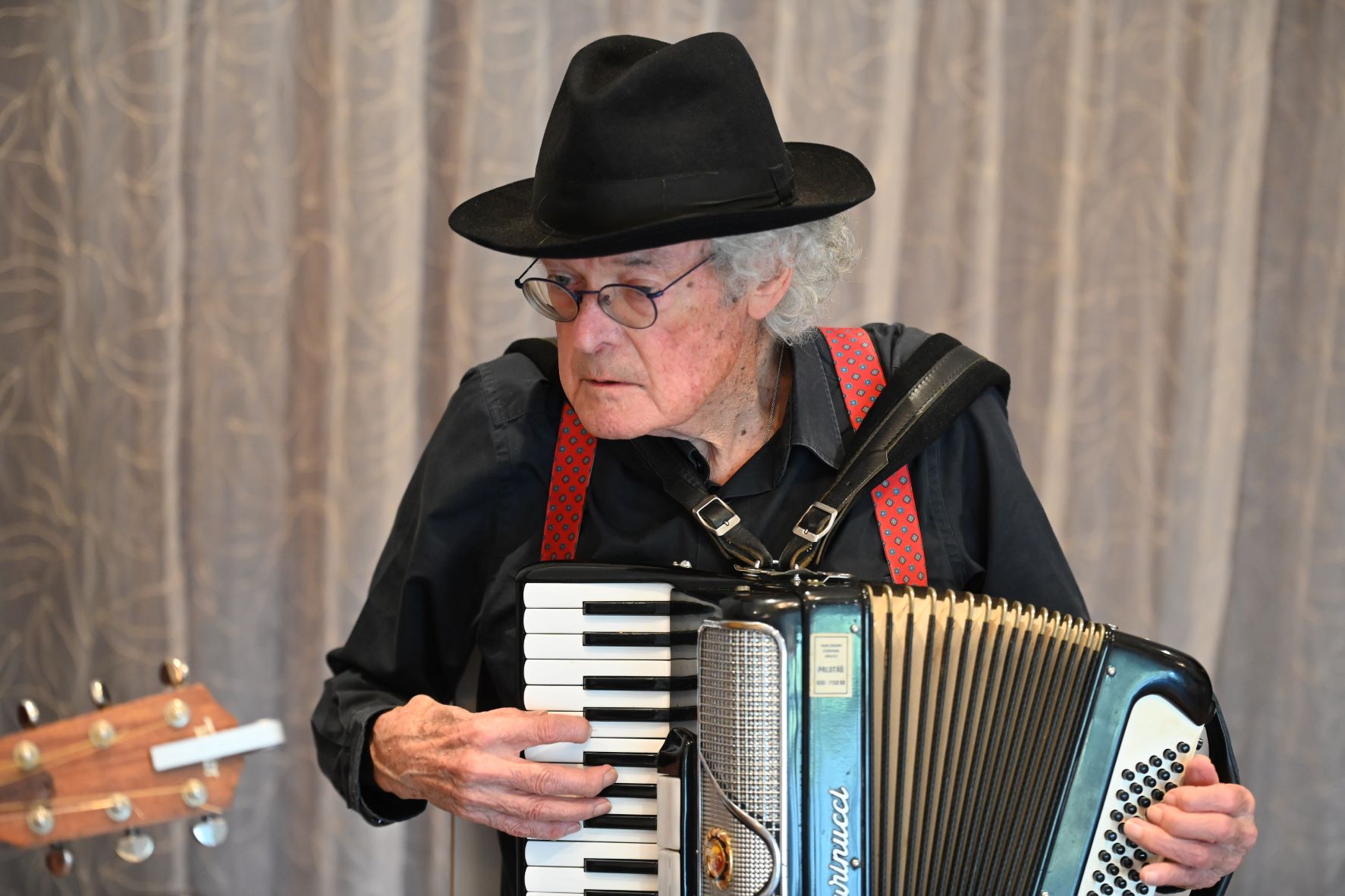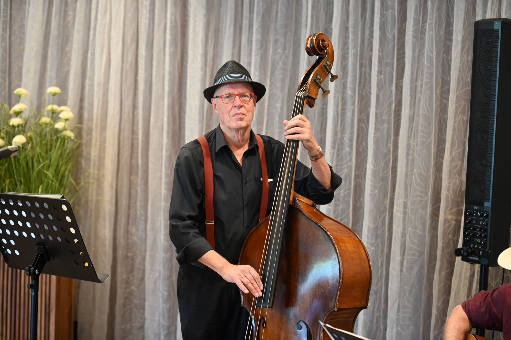Omdat de bibliotheek in Nijkerk wordt verbouwd vond het zomerconcert zondag 7 september van de Bibliotheek Gemeente Nijkerk plaats in verzorgingscentrum De Pol in Nijkerk. Gezien het feit dat het verzorgingscentrum slecht is te bereiken omdat bijna alle aanvoerwegen zijn geblokkeerd vanwege werkzaamheden, was er nog best wat belangstelling. Tijdens het concert vertoonde het Trio “Simon & Ses Amis” haar kunsten. Foto Kees van den Heuvel
