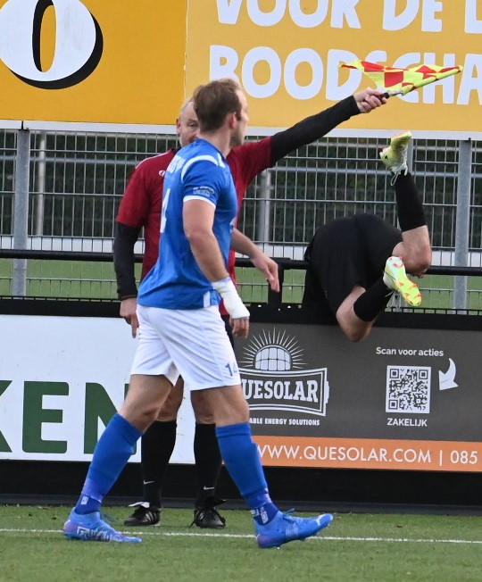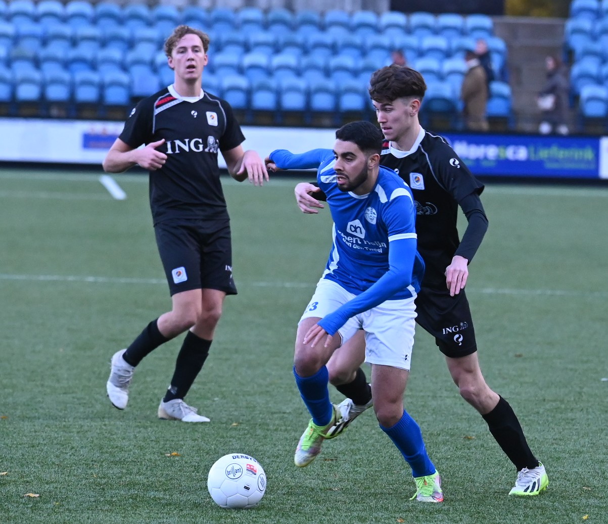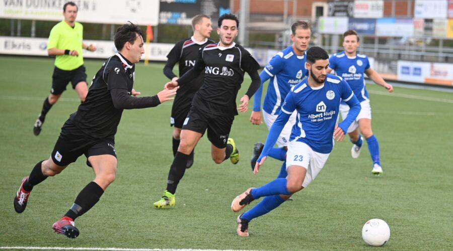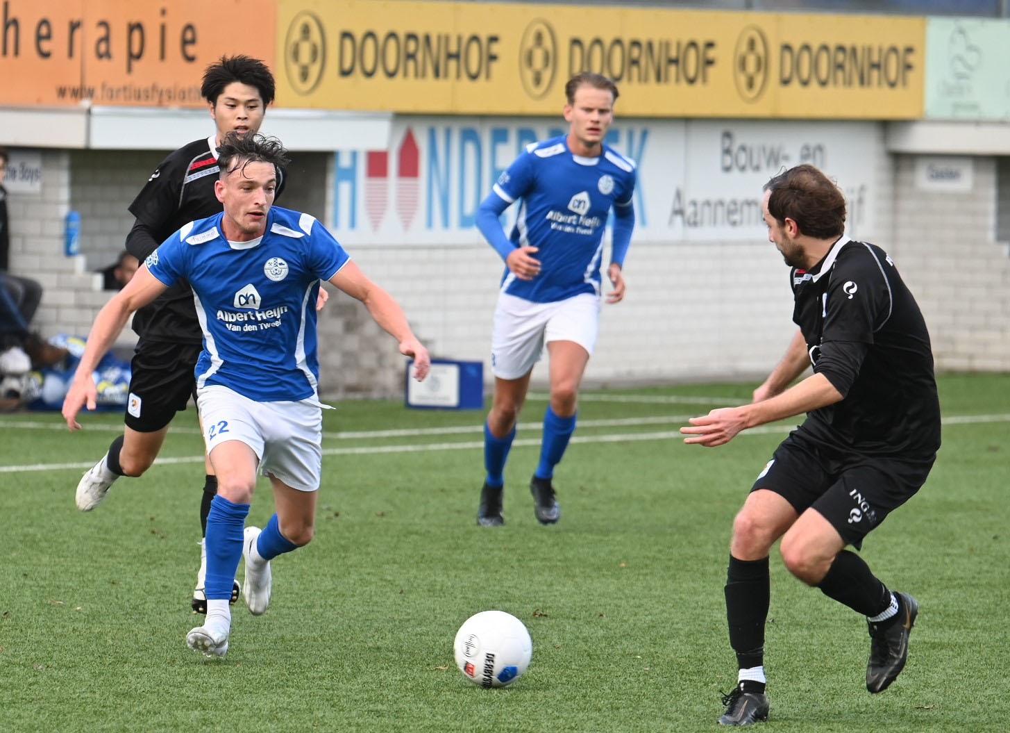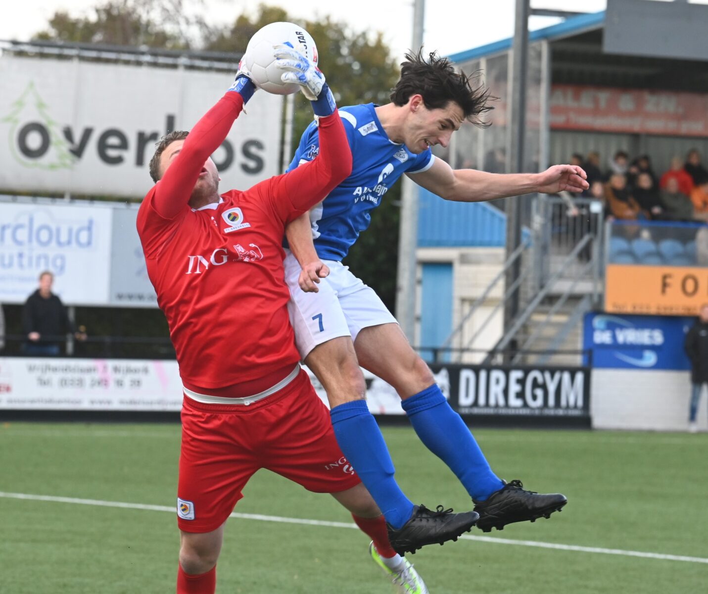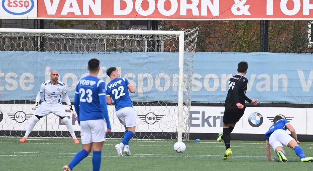 Veensche Boys is zaterdag 11 november aangelopen tegen haar eerste thuisnederlaag van het seizoen. Het werd in het duel tegen FC Breukelen 0-1. Veensche Boys is met dit resultaat gezakt naar een vierde plek en ook niet meer in beeld voor het binnenhalen van de eerste periode. De Blauwe Helden gingen sterk van start en hadden de overhand tegen een aanvankelijk onwennig Breukelen maar de kansen werden niet verzilverd. Vooral de kansen van Corné Parol en Nassim Barkoki verdienden een beter lot. Pas na een half uur spelen kwam Breukelen in de buurt van de goal van doelman Jordy Deckers. Een kopbal langszij en een lob over het dak van de goal waren al voortekenen voor het onheil. Even voor rust speelde Jordy Deckers de bal uit richting Dave Knikker maar de bal belandde in de voeten van een speler van Breukelen en vervolgens was de tegengoal een feit. Na rust werden de nodige versterkingen binnengebracht, maar Veensche Boys kon geen potten meer breken. De Veenders speelden veel de lange bal, maar die kwamen terecht in niemansland. Er waren ook nauwelijks kansen te noteren, terwijl Breukelen er alles aan deed om de pot achterin dicht te houden. Na negentig minuten reguliere speelminuten kon de ploeg van Breukelentrainer Michael van den Berg opgelucht adem halen en haar eerste zege van het seizoen vieren. Foto Kees van den Heuvel
