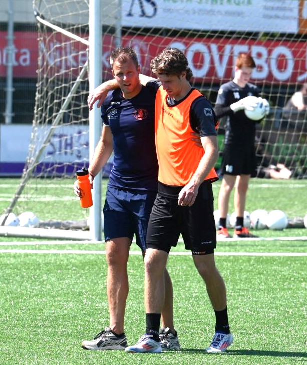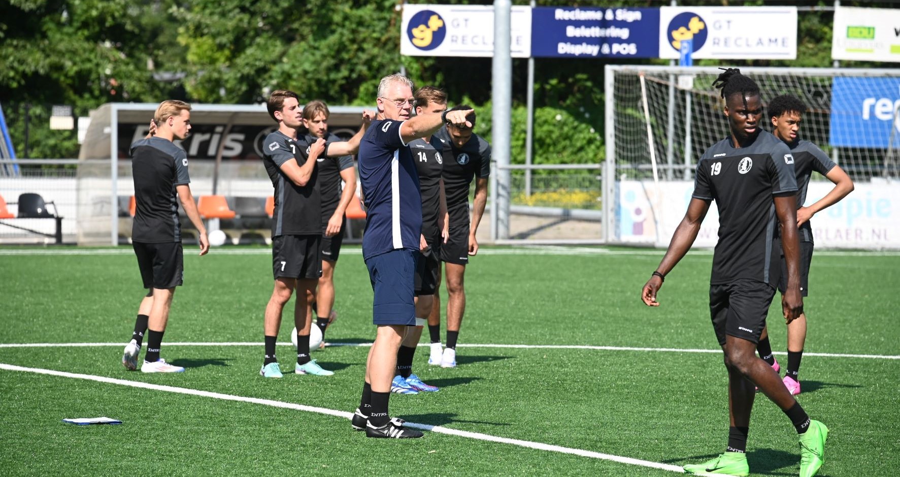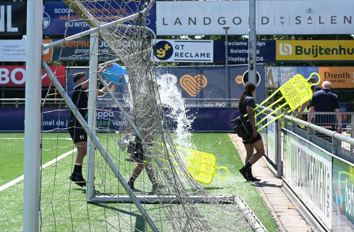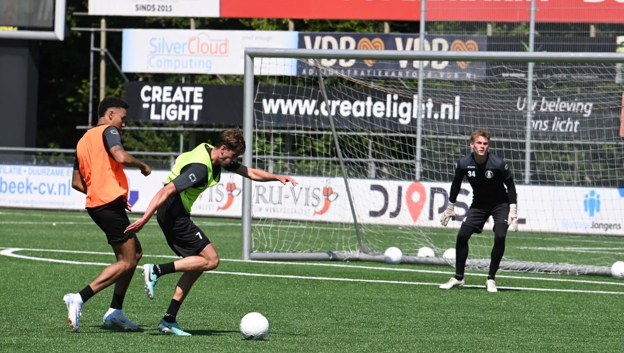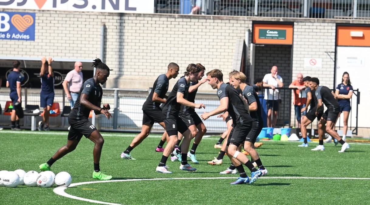 In een verzengende hitte is de eerste training van Sparta Nijkerk zaterdag 20 juli van start gegaan. Dat is iets later dan normaal, maar logisch vanwege de beschikbaarheid van spelers. Zaterdag ontbraken nog acht voetballers. Toch zullen ze volgende week gelijk aan de bak moeten, want dan speelt Sparta Nijkerk in de Harry Hamstra Cup tegen DVS’33, TEC Tiel en Spakenburg. Op 17 augustus is de opening van het seizoen met de klapper Sparta Nijkerk – IJsselmeervogels. Foto Kees van den Heuvel