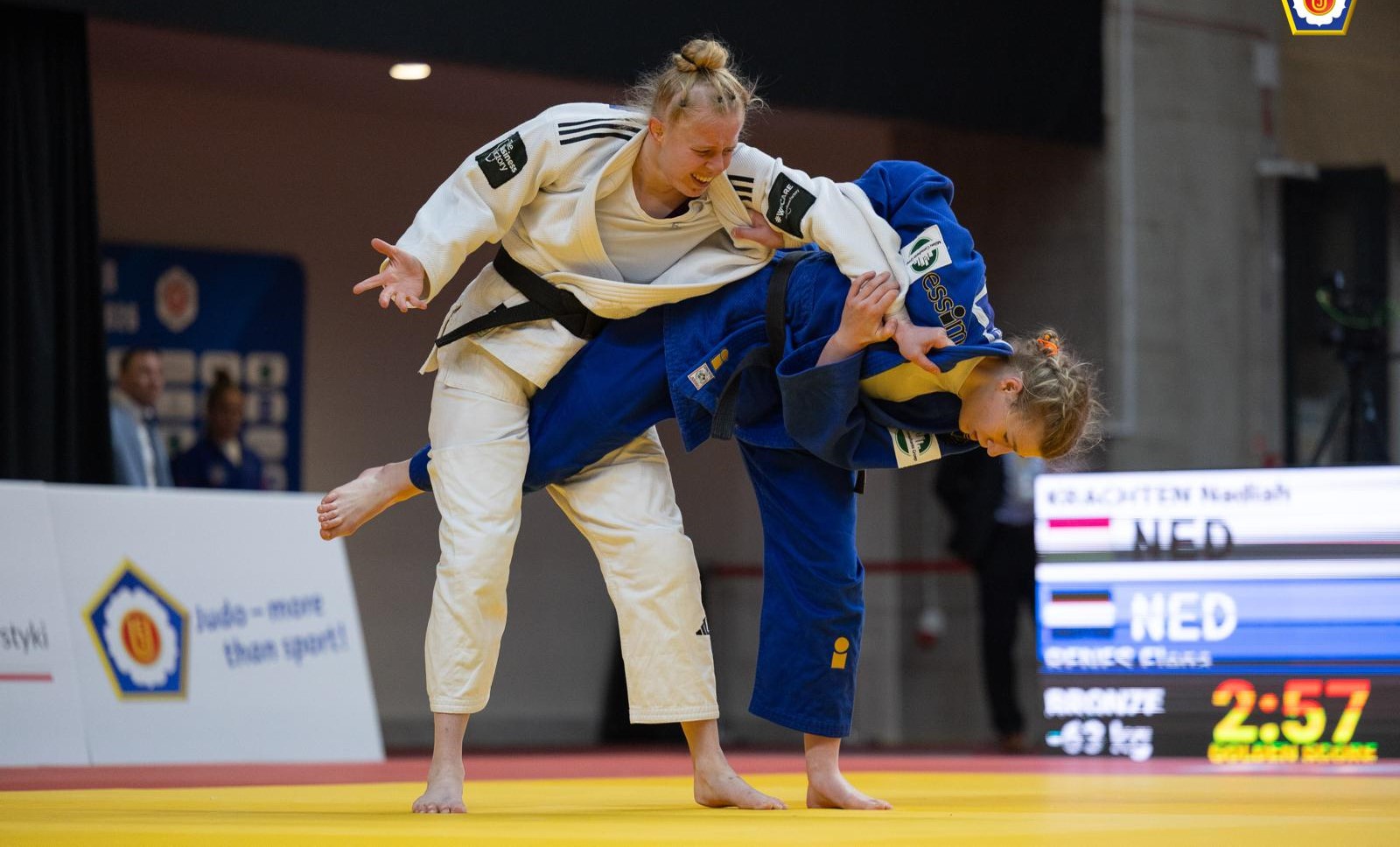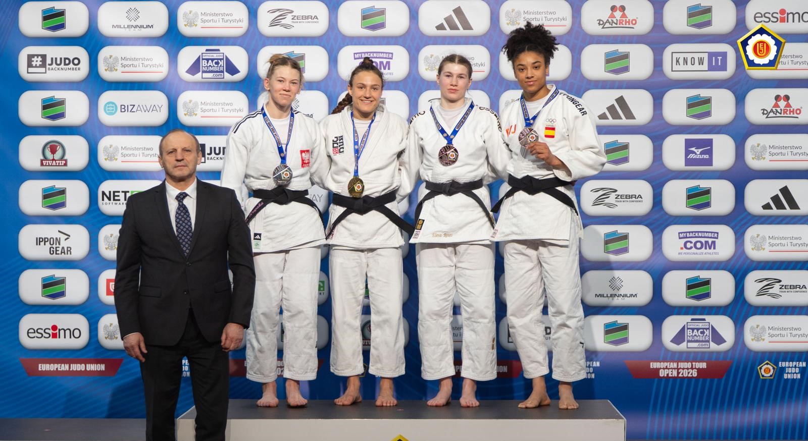 Afgelopen weekend scoorde Elena Renes haar eerste medaille ooit op een European Open. In Warschau wist Elena 4 partijen te winnen en een bronzen plak in de wacht te slepen. In de eerste partij wist ze te winnen van een stugge Kazach, in de 2e ronde van een Italiaan, de 3e ronde won ze van een Duitser en in de vierde ronde – de halve finale – ging het in de laatste secondes mis tegen een Franse. Des te knapper dat Elena zich wist te herpakken voor het gevecht om brons, deze wist ze te winnen van een Nederlandse concurrent. Foto’s via Joey van Rootselaar
