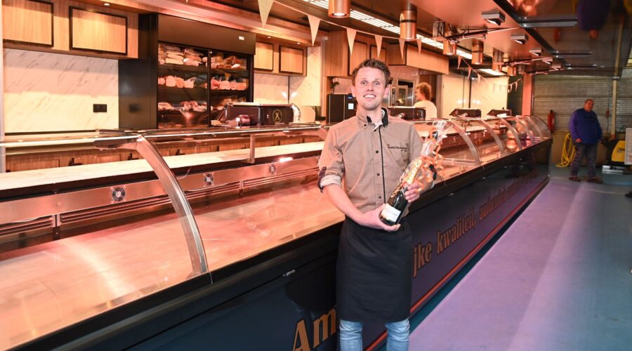 Enrico van de Visch uit Nijkerkerveen is de nieuwe eigenaar geworden van Uw Marktslager. Met een feest voor familie en bekenden heeft hij zondagmiddag 2 juni in Hoevelaken de nieuwe ultramoderne marktwagen ten doop gehouden. De wagen, met een lengte van ruim dertien meter, is geheel naar eigen inzicht ingericht. Enrico staat onder meer op de weekmarkten van Amstelveen, Ede en Utrecht. De slagerij bestaat sinds 1959, opgericht door de familie Van der Tol. In eerste instantie is het begonnen als een heuse slagerij gevestigd te Amersfoort, later is de Slagerij verruild voor een marktwagen. Samen met zijn zoon, Corno van der Tol heeft hij de marktslagerij zien groeien tot een verkoopwagen. De zaak werd vanaf 2020 gerund door Corno van der Tol en zijn compagnon Enrico van de Visch. Die heeft nu het eigenaarschap overgenomen. Foto Kees van den Heuvel