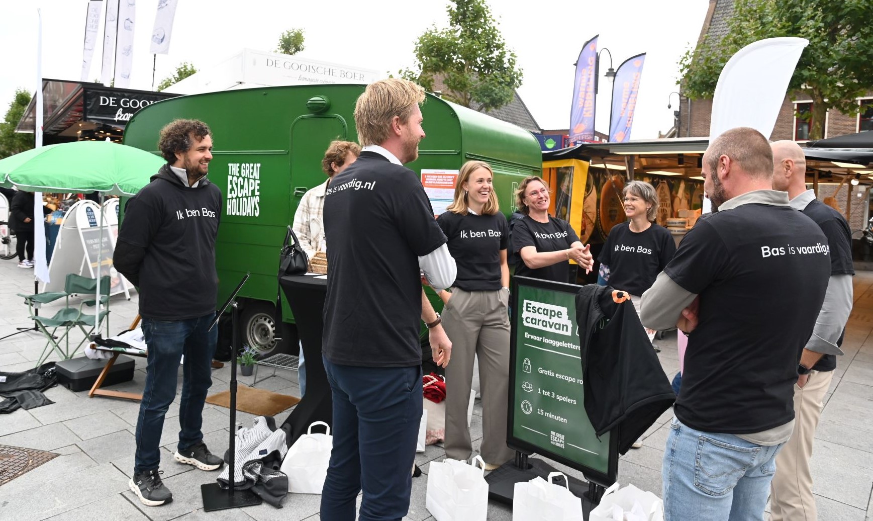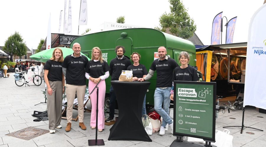 Op de vrijdagse weekmarkt in Nijkerk stond 26 september de Escape Caravan. De Escape Caravan is een interactieve escaperoom die mensen laat ervaren hoe het is om laaggeletterd te zijn, zodat er meer begrip en bewustzijn ontstaat voor dit grote, vaak onzichtbare probleem in de Nederlandse samenleving. Bezoekers lopen in de caravan vast door beperkte informatie, vergelijkbaar met de frustratie die laaggeletterde mensen dagelijks ervaren bij het lezen, schrijven of begrijpen van taal. Ik stuur nog even een reminder over van de escape caravan (laaggeletterdheid) die morgen (26 september) op de markt in Nijkerk staat. Burgemeester Tinet de Jonge, de directeur van de Rabobank, de directeur van Bieze Food Group, directeur Laura Koppenberg van de Bibliotheek en Dirk-Jan, die vroeger zelf laaggeletterd was, namen deel aan de Escape Caravan. Foto Kees van den Heuvel