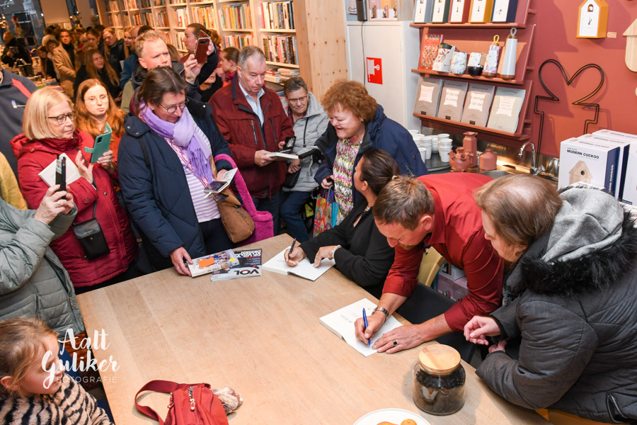 De rij stond tot aan de deur bij boekhandel Roodbeen in Nijkerk. Vele liefhebbers kwamen zaterdagmiddag naar de boekhandel voor een handtekening en fotomomentje met het populaire gezin. Vader Johan, moeder Janneke en hun negen kinderen werden in 2019 in een klap bekend door hun optreden op televisie wat destijds meer dan een miljoen kijkers trok. De Jelies is volgens de uitgeverij een boek over op het eerste oog onverwoestbaar gezin waar het geluk vanaf spat en waarin weinig fout lijkt te kunnen gaan. Maar is dat ook zo? Ze vertellen alles over hun eigen jeugd, hun eerste ontmoeting, en de kracht van hun onvoorwaardelijke liefde, waar niet iedereen altijd achter stond.