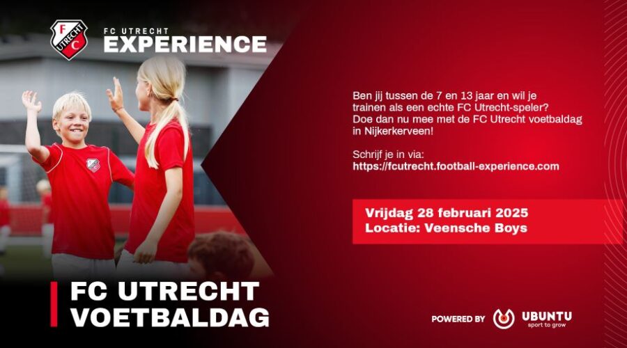Na de geweldige editie van vorig jaar is FC Utrecht op 28 februari 2025 weer terug in Nijkerkerveen! Met veel enthousiaste deelnemers en een dag vol voetbalplezier was de vorige editie een groot succes. Dit jaar wordt het nóg beter! De kinderen trainen als een echte prof, werken aan hun techniek en spelinzicht en spelen uitdagende wedstrijdvormen. Natuurlijk ontbreekt de FC Utrecht-sfeer niet!