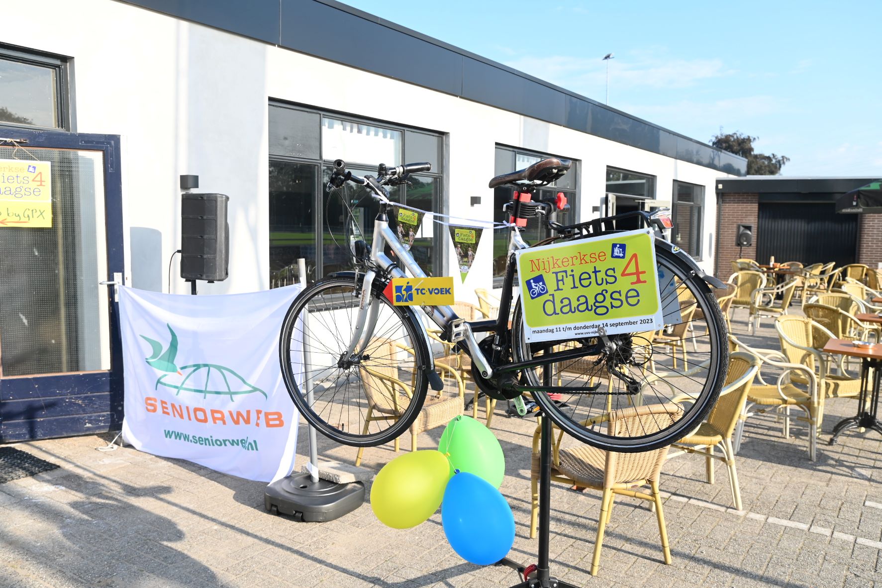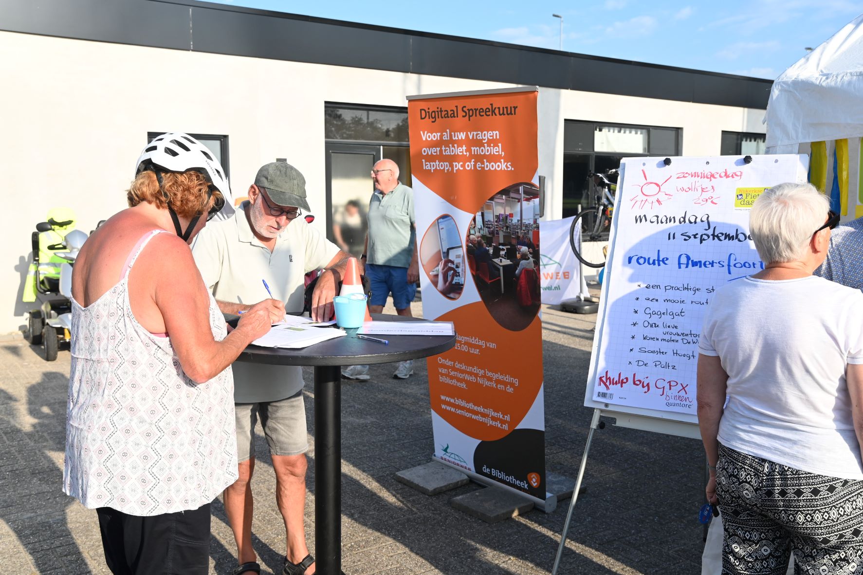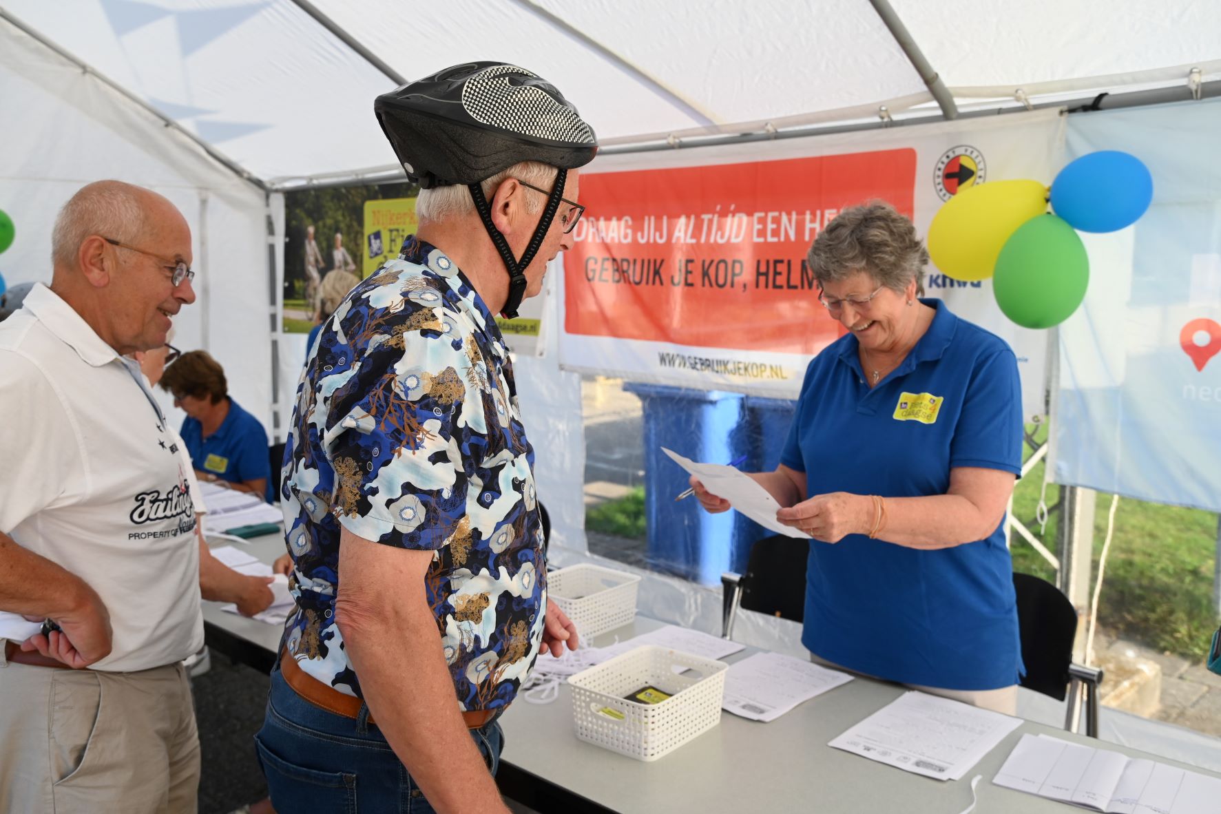 Geholpen door de zonnige weersomstandigheden zijn maandagmorgen 11 september circa 800 deelnemers op pad gegaan voor de eerste dag van de UVV fietsvierdaagse in Nijkerk. Omstreeks 600 deelnemers meldden zich digitaal aan en er sloten naar verwachting nog ruim 200 deelnemers spontaan aan. Het startpunt was de NSC Burcht in Nijkerk. De mensen kregen een appel mee voor onderweg en daarna deed Jan Verweij van de UVV uitgeleide. Ook een delegatie van de ScootAngels, de scootmobielclub, nam deel. De opkomst van de Fietsvierdaagse in Nijkerk was boven verwachting, zo concludeerde de organisatie. De deelnemers kwamen overigens niet alleen uit Nijkerk. Uit alle provincies waren de fietsers afkomstig en er waren zelfs zes deelnemers uit Belgie. Foto Kees van den Heuvel