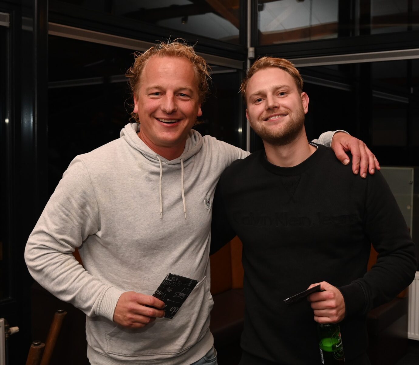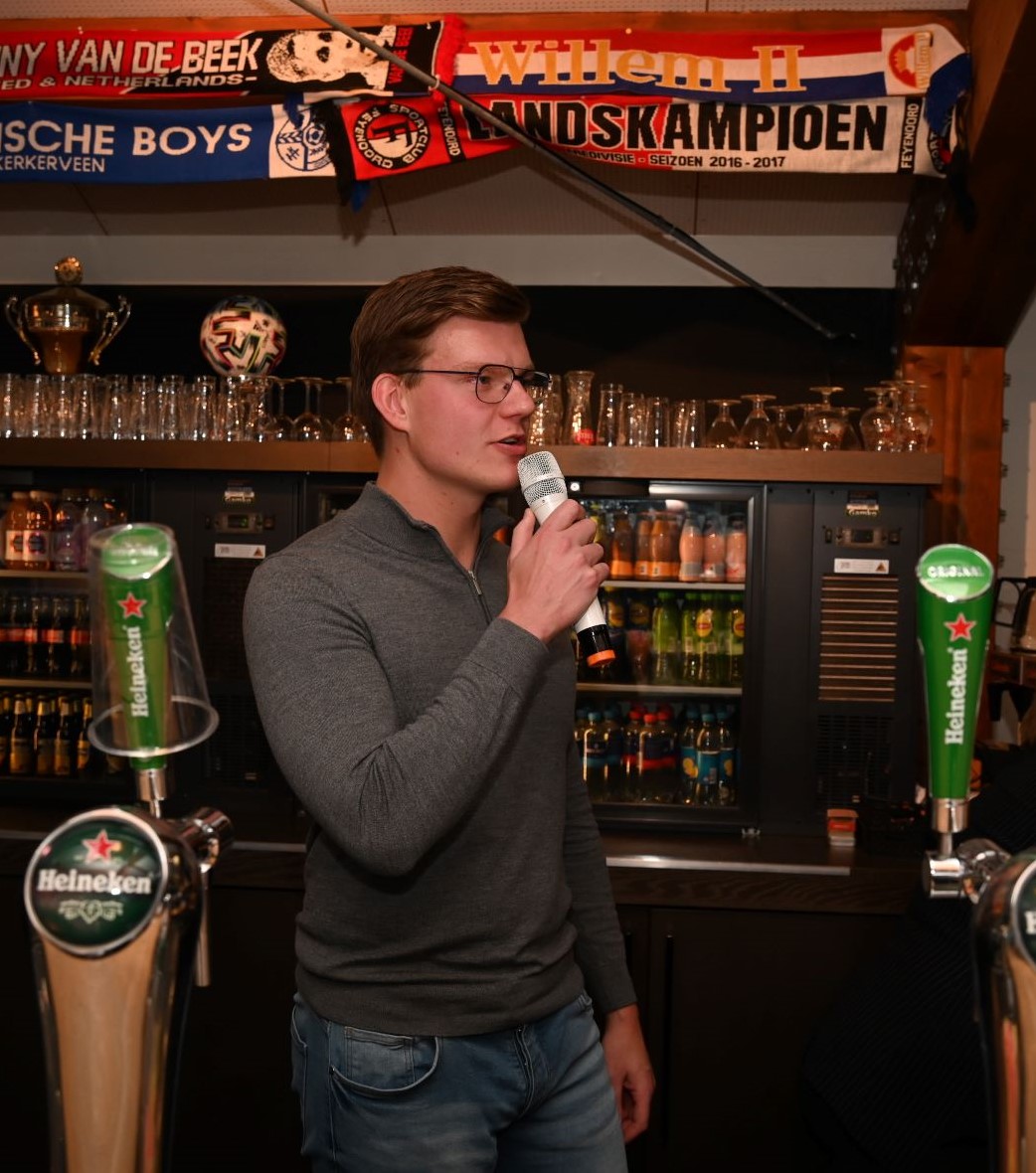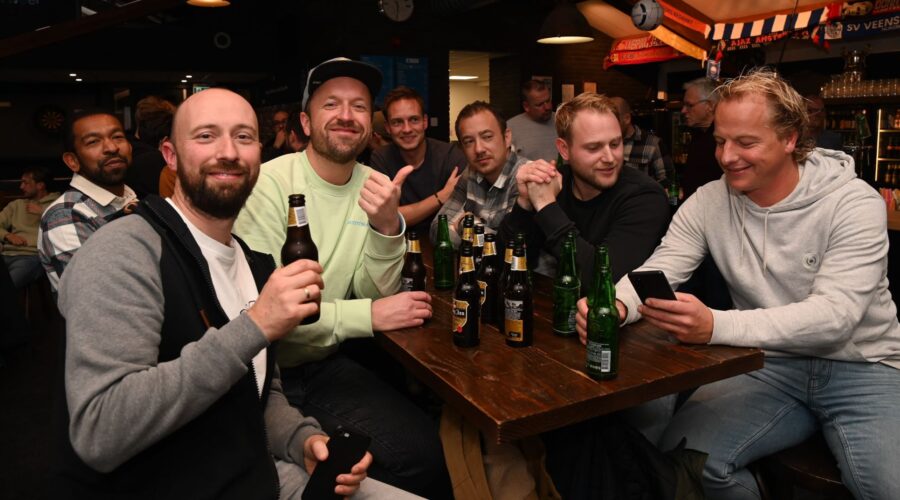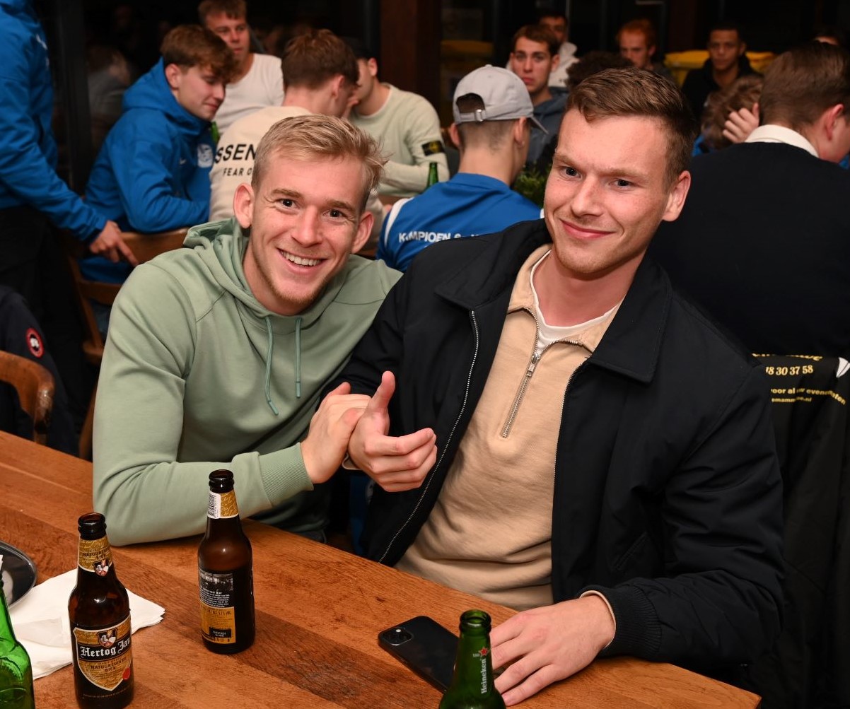 Friso Doornhof en Dennis van Dusschoten zijn donderdagavond 9 november de winnaars geworden van de eerste editie van de voetbalquiz van Veensche Boys. In de kantine van de Blauwe Helden werden tientallen vragen afgevuurd op circa dertig koppels waarbij het team Friso+Dus het beste resultaat scoorden. Nummers 2 werden het gelegenheidstrio Mauro Peters, Jari van Putten en Corné Parol. Het brons was voor Kevin Hols en Gerwen Rebel. Tim Bouw praatte de avond vakkundig aan elkaar. Foto Kees van den Heuvel