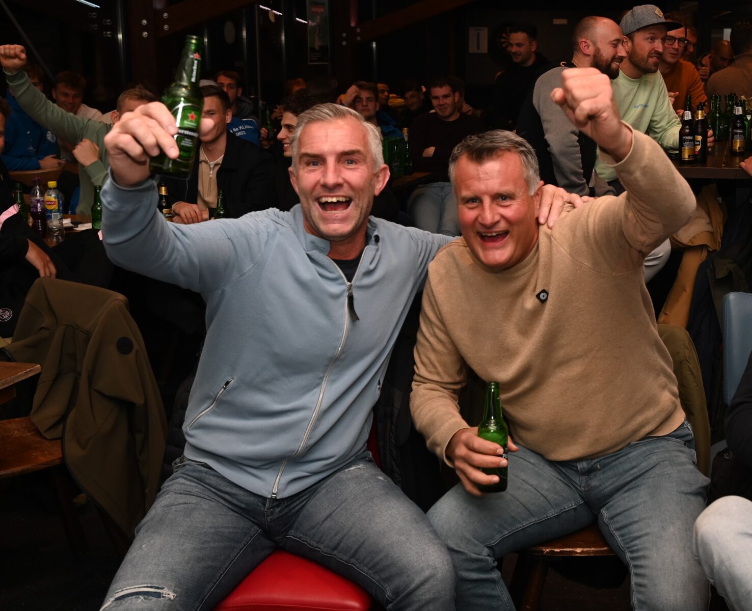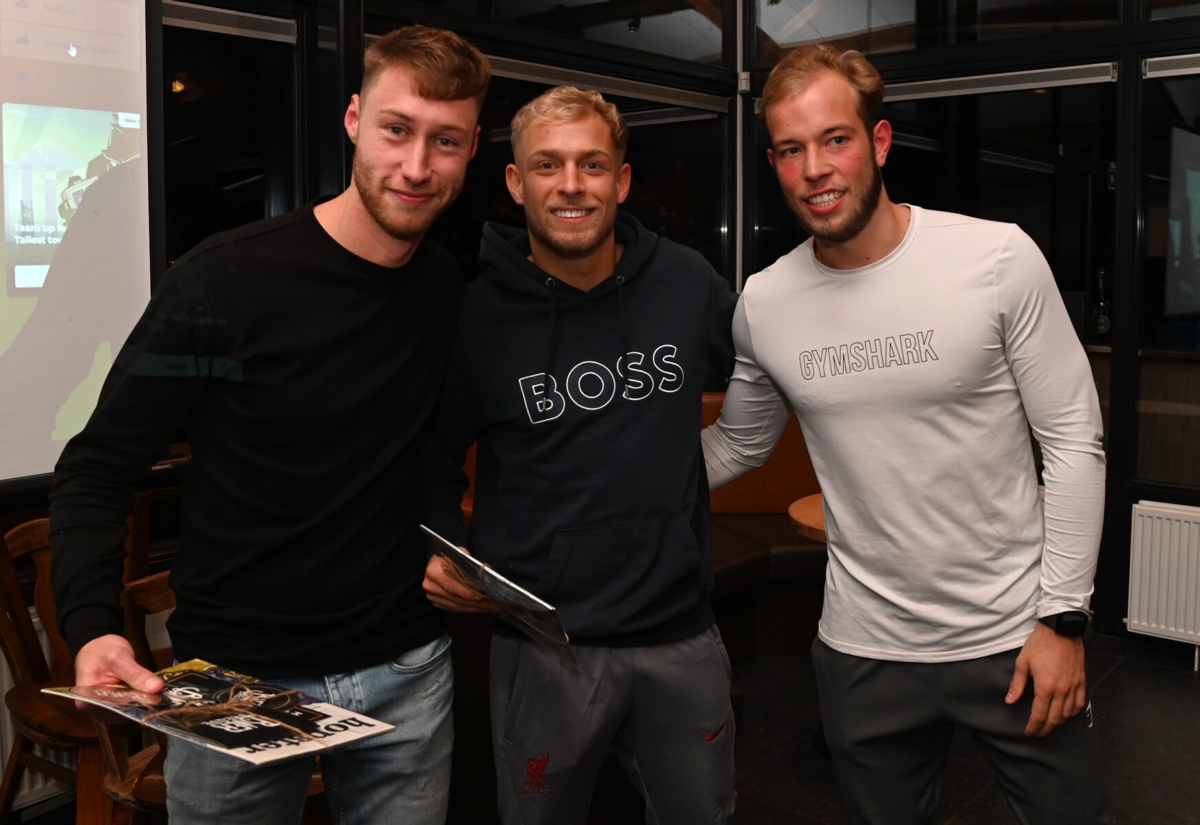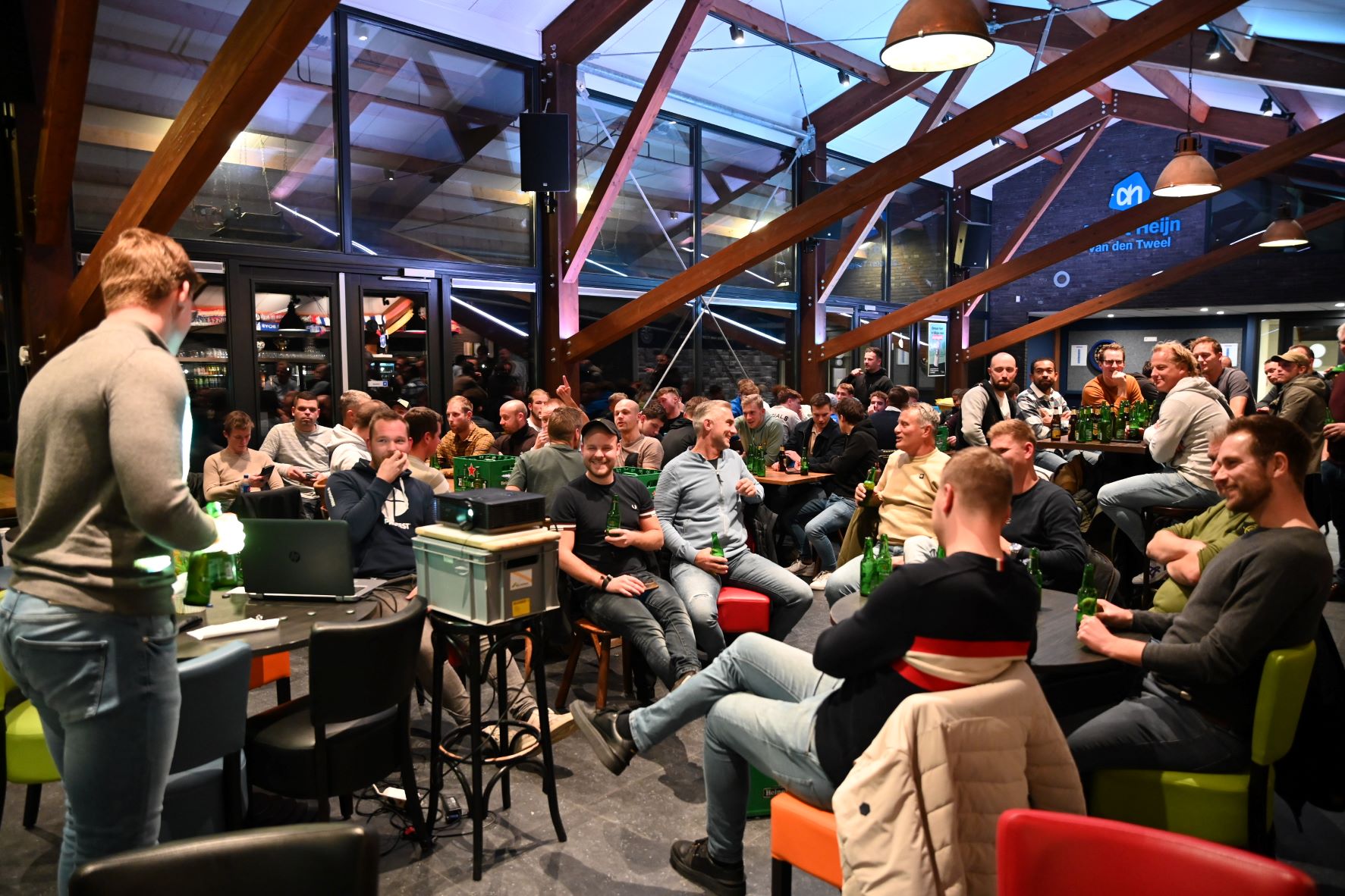 Friso Doornhof en Dennis van Dusschoten zijn donderdagavond 9 november de winnaars geworden van de eerste editie van de voetbalquiz van Veensche Boys. In de kantine van de Blauwe Helden werden tientallen vragen afgevuurd op circa dertig koppels waarbij het team Friso+Dus het beste resultaat scoorden. Nummers 2 werden het gelegenheidstrio Mauro Peters, Jari van Putten en Corné Parol. Het brons was voor Kevin Hols en Gerwen Rebel. Tim Bouw praatte de avond vakkundig aan elkaar. Foto Kees van den Heuvel