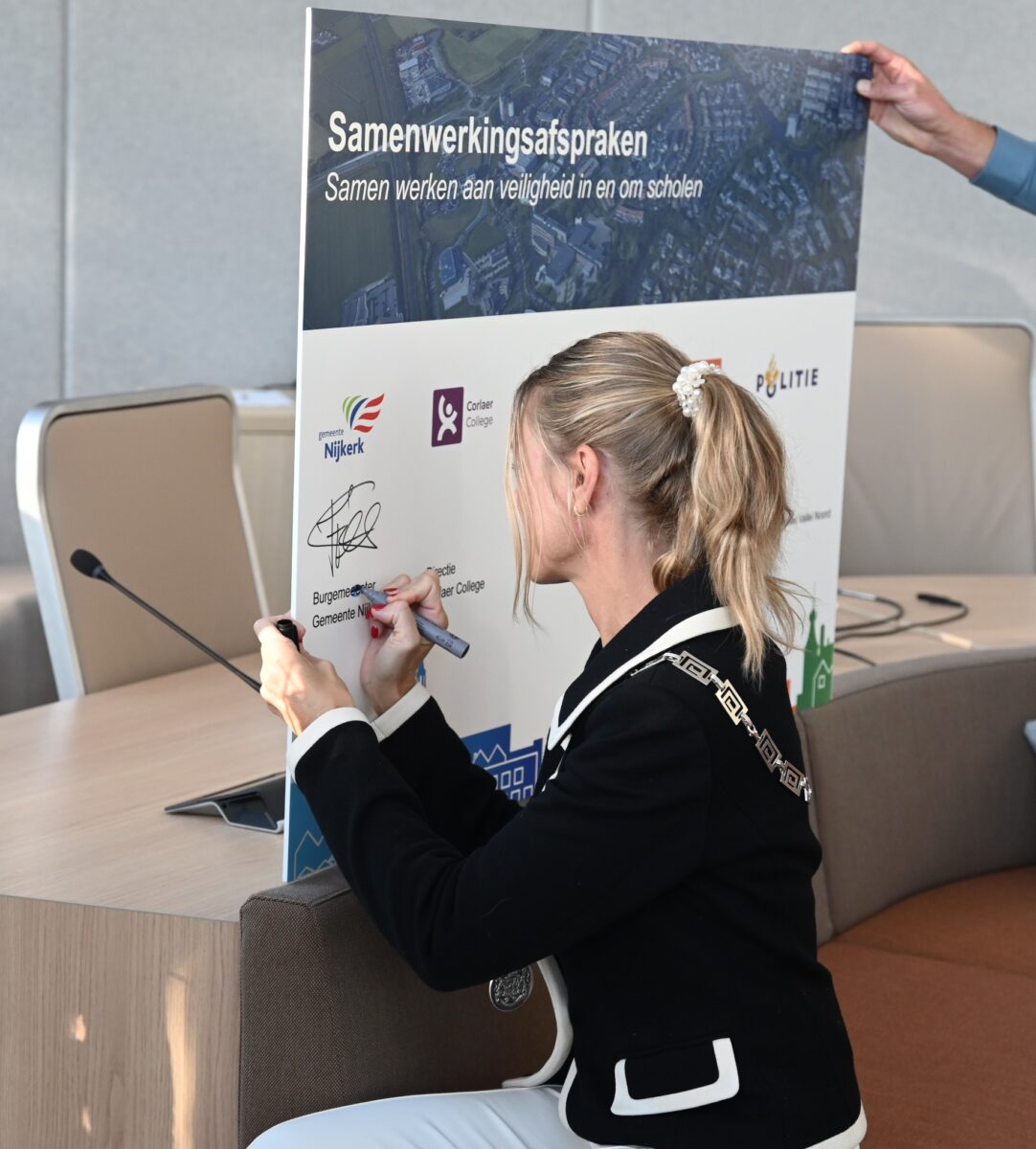 Donderdag 9 oktober hebben de gemeente Nijkerk, de politie, Corlaer College, Accent Praktijkonderwijs en Aeres VMBO samenwerkingsafspraken ondertekend. De afspraken gaan onder andere over het samen zorgen voor een veilige en fijne sfeer op school. Iedereen, zowel leerling als docent moet zich welkom, gerespecteerd en veilig kunnen voelen op school.