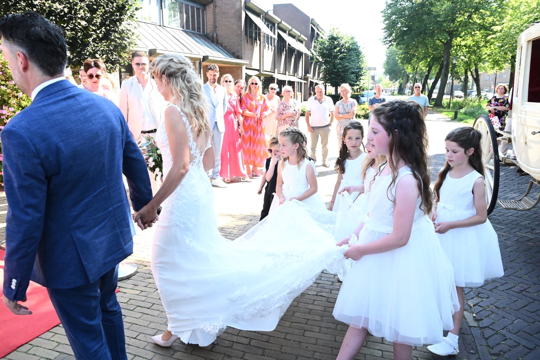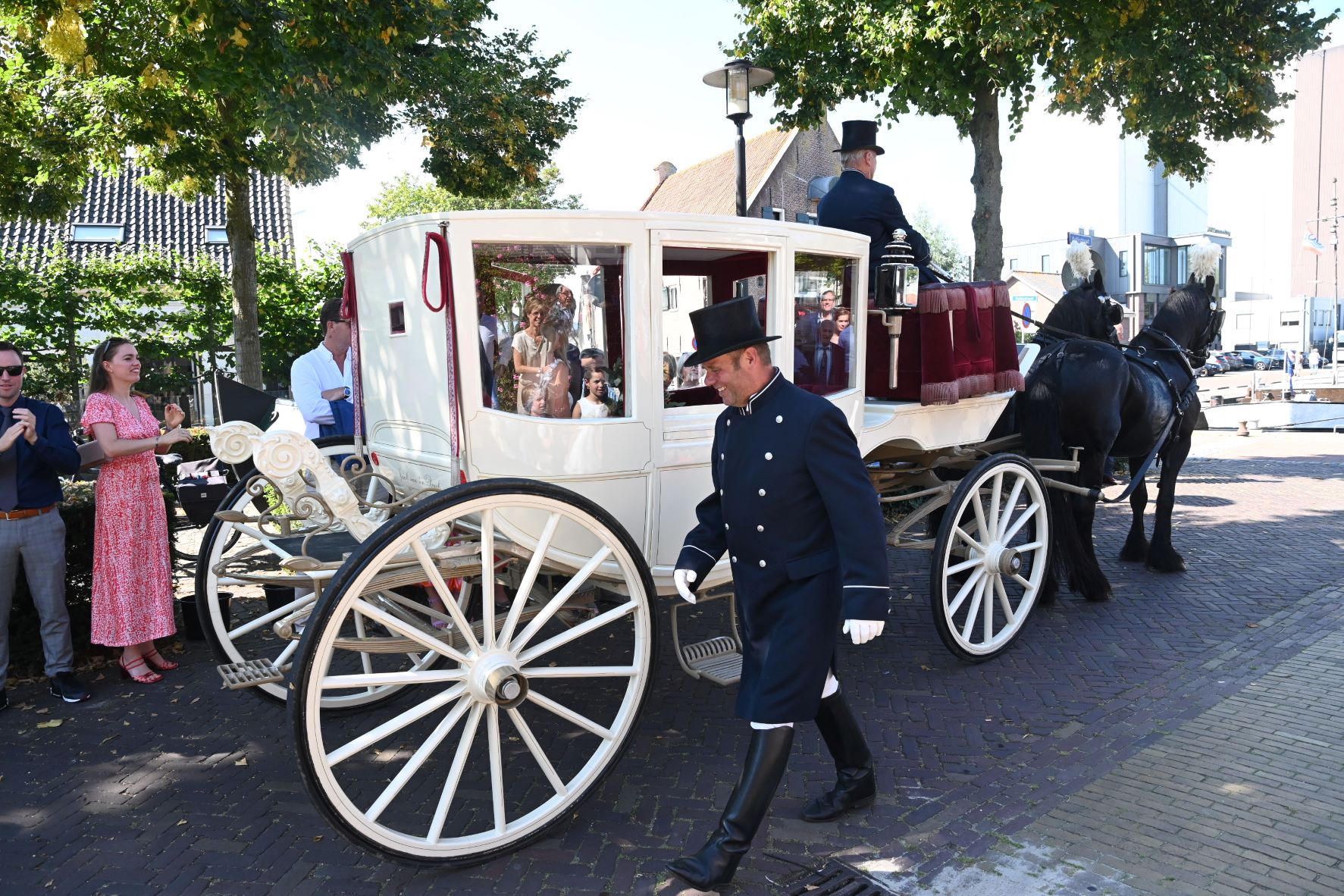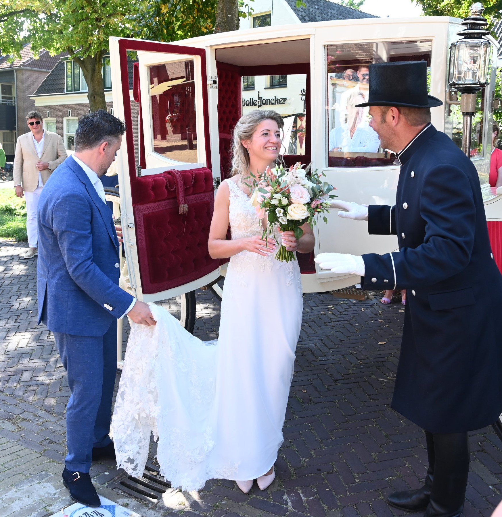 Het was vrijdag 8 september een grote dag voor Bianca Bouwman en Gerwin Poolen uit Nijkerk. Gerwin is wellicht ook bekend als eigenaar van wijnhandel en slijterij De Moor. Ze traden met elkaar in het huwelijk. Onder een stralende zon reden ze per sprookjesachtige koets romantisch naar het stadhuis van Nijkerk en daar hebben ze elkaar eeuwige trouw beloofd. Gerwin leerde Bianca kennen bij een wijncursus en ze hebben elkaar daarna een tijdje uit het oog verloren. Maar niet veel later sprong de vonk weer over, met als resultaat een traditioneel huwelijksfeest dat tot in de laatste uurtjes tijdens een groot tuinfeest is gevierd. Foto Kees van den Heuvel