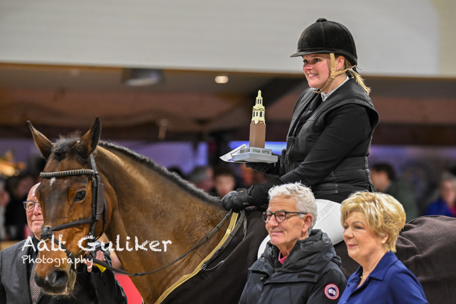 Tijdens de slotavond was het gezellig druk in de manege. Het publiek genoot van spannende en spectaculaire finales in de klassen van 0.90 m tot en met 1.20 m, waarin werd gestreden om de felbegeerde torenbokaal en bijbehorende prijzen.