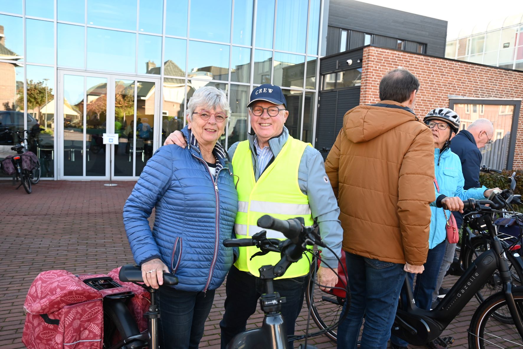 In het kader van de seniorenweek vond donderdag 9 oktober een fietstocht plaats. Dat was een 22 kilometer lange tocht door Nijkerk, Nijkerkerveen en Hoevelaken, beginnend met koffie bij de Kruiskerk. De deelname was gratis. Geurts Tweewielers uit Nijkerk controleerde of de banden van de fietsen de juiste spanning hadden. He eindpunt was Het Paashuis, waar een klein presentje werd aangeboden. Foto Kees van den Heuvel