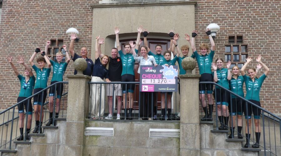 Corlaer Cycling was de laatste groep die nog het eindbedrag moest bekend maken van de goede doelenactie Expeditie Corlaer. De totale opbrengst werd alsnog bekend gemaakt tijdens de Wielerronde van Hoevelaken op zaterdag 28 juni. Er bleek een bedrag van liefst 13.270 euro opgehaald. Dit is bestemd voor Villa Pardoes. Foto Gerrit Steen