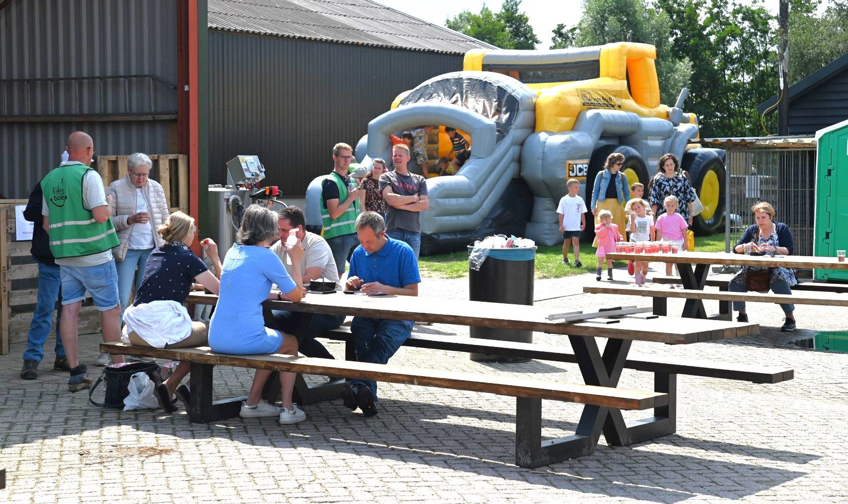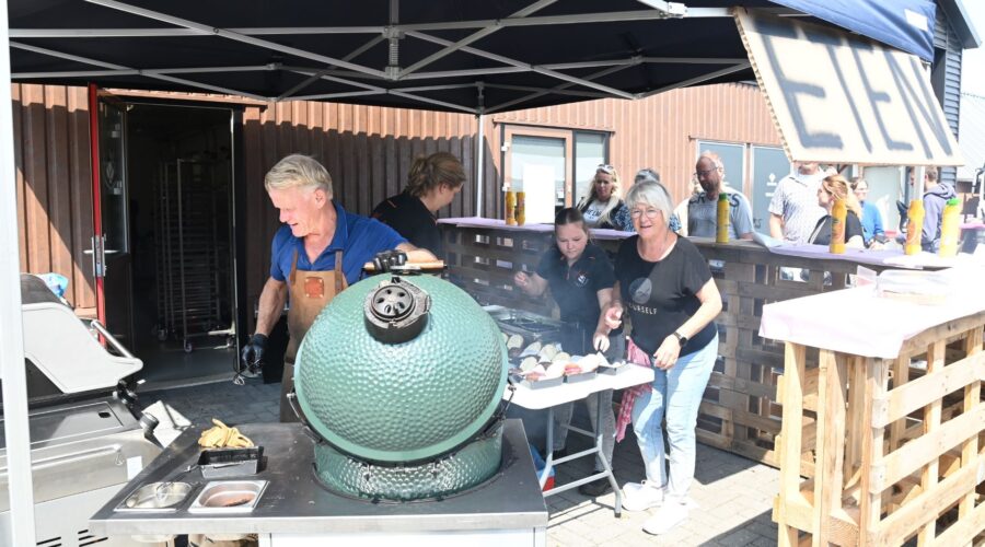 Vele honderden belangstellenden hebben woensdag 6 augustus deelgenomen aan het evenement “Kijken bij de Boer”. Dat is een jaarlijks evenement waarbij je op de fiets een route kunt volgen langs verschillende boerderijen. Er kon een kijkje worden genomen bij de boeren, hun dieren en zien waar ons voedsel vandaan komt. Het was een educatieve en gezellige fietstocht, waarbij je ook vaak iets te eten en te drinken aangeboden kreeg. De Veense Courant ging kijken bij William en Mariska van Roemburg die een marktslagerij hebben en een thuiswinkel. Daar stond ook Frits van de Pol uit Nijkerk achter de green egg. Het was niet normaal zo ‘iezig’ druk het was voor zijn kraam. Foto Kees van den Heuvel