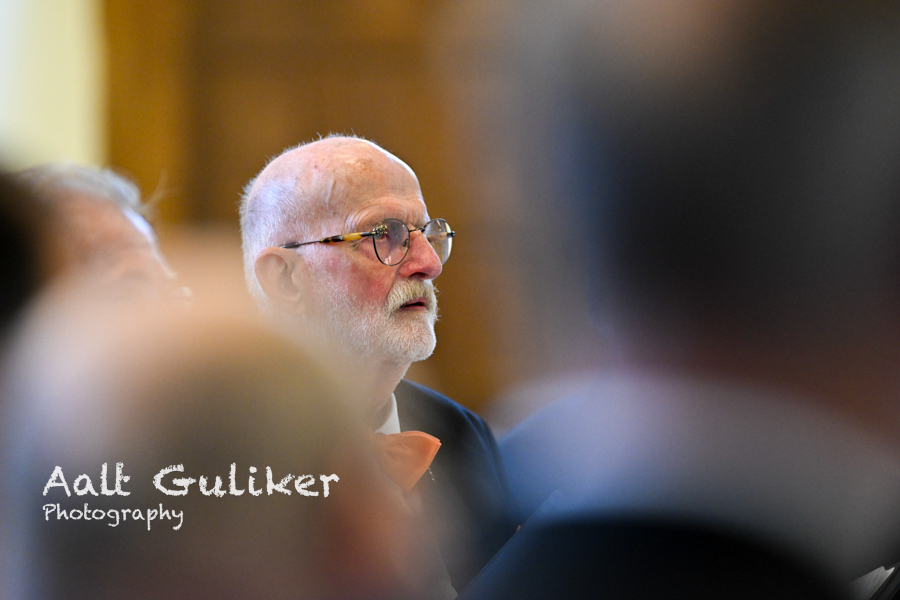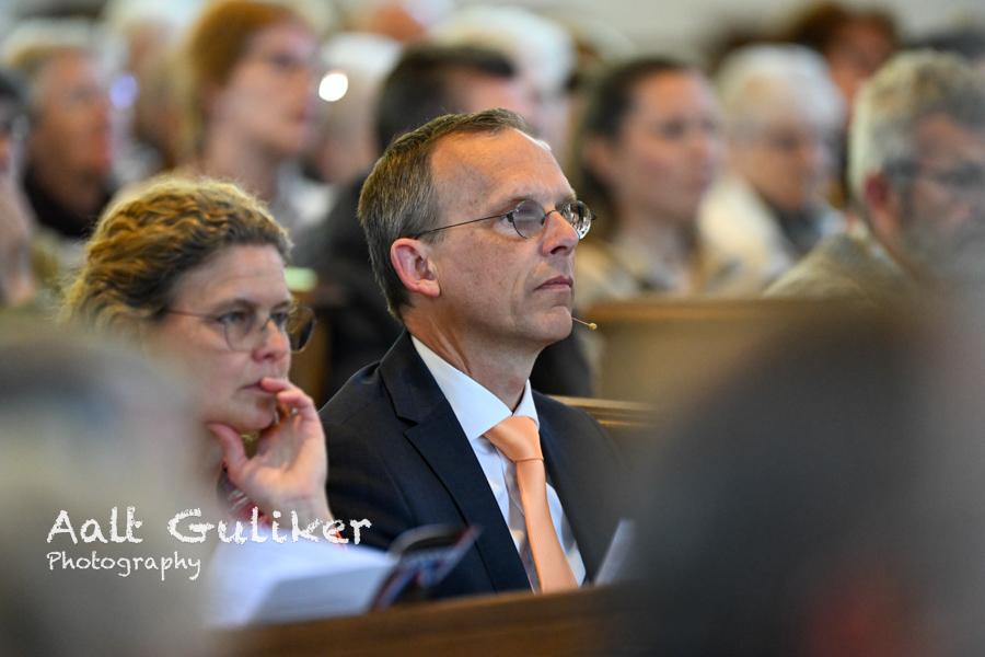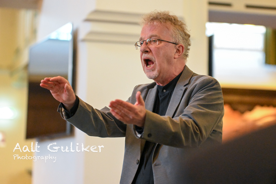 Het voorwoord werd verzorgd door Dominee Martin van der Klis van de Kruiskerk Nijkerk. In zijn overdenking stond het thema ‘luisteren’ centraal. Hij benadrukte dat luisteren de basis vormt voor echte verbinding. Het koor noemde hij daarbij een tastbaar voorbeeld: verschil in stemmen, hoog en laag, hard en zacht wordt pas harmonie wanneer zangers naar elkaar luisteren in plaats van zichzelf te laten overheersen. Met een blik op de samenleving stelde hij dat gezinnen, families, kerken en de gemeente Nijkerk niet zozeer méér woorden nodig hebben, maar beter leren luisteren, naar elkaar en naar Gods stem. “Samenleven ontstaat niet door volume of gelijk krijgen, maar door de discipline van luisteren,” klonk het. Wie niet luistert, loopt het risico relaties te verliezen; wie dat wel doet, ervaart volgens hem juist melodie, diepte en warmte in het samenleven.