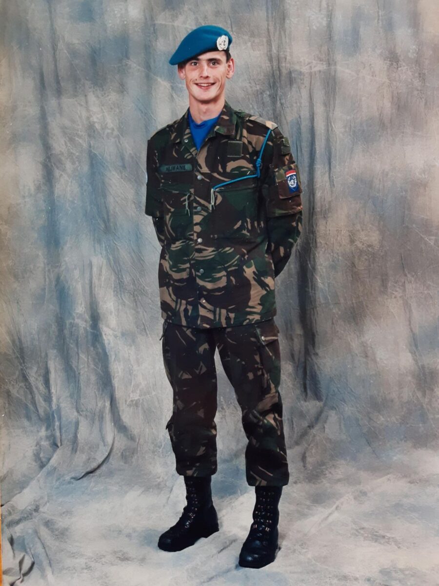 Als dienstplichtig militair waren ze vrijwillig gekozen voor een uitzending. Remco deed op dat moment een mbo-studie elektronica, wat niet zo lekker liep. Jeroen Heuts (nu 50, toen 19 jaar) was net als Remco gelegerd op de militaire basis in Šantići, op een oud fabrieksterrein. Hun missie: bescherming van de burgers. Er waren ongeveer dertig nationaliteiten betrokken bij deze United Nations Protection Force (UNPROFOR). Uit Nederland en België, Engeland en zelfs Nieuw-Zeeland. ,,Het was een vrij grote basis waar we met zo’n 300 dienstplichtigen aanwezig waren. We stonden al opgesteld bij het ochtend appèl, een centrale verzameling, toen we hoorden dat er in de buurt van ons geschoten werd. Dat er werd geschoten, waren we wel gewend, door strijdende partijen over ons kamp heen. Maar dit schot klonk anders, het was veel te dichtbij. Het geweervuur kwam van het kamp af.”