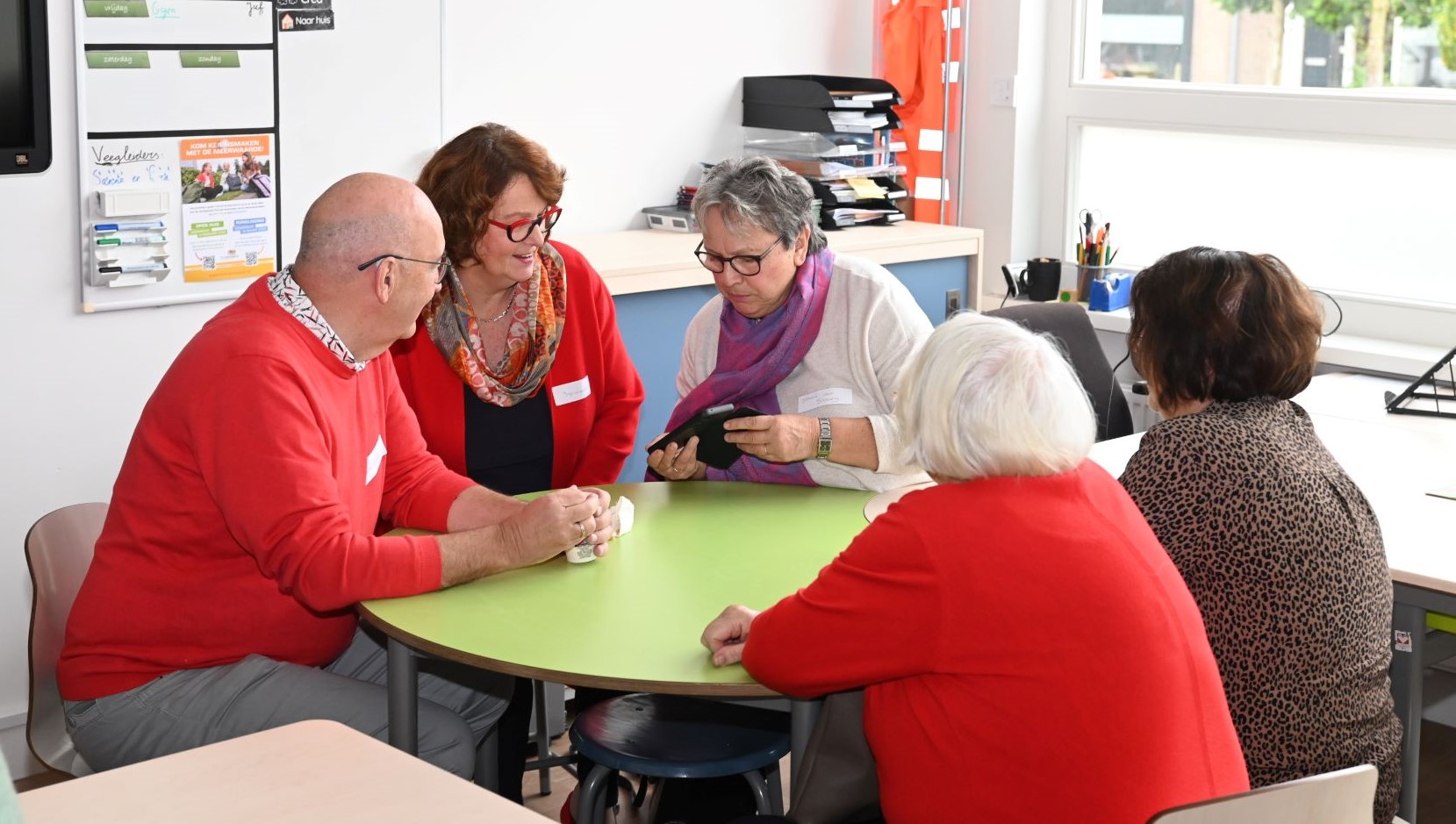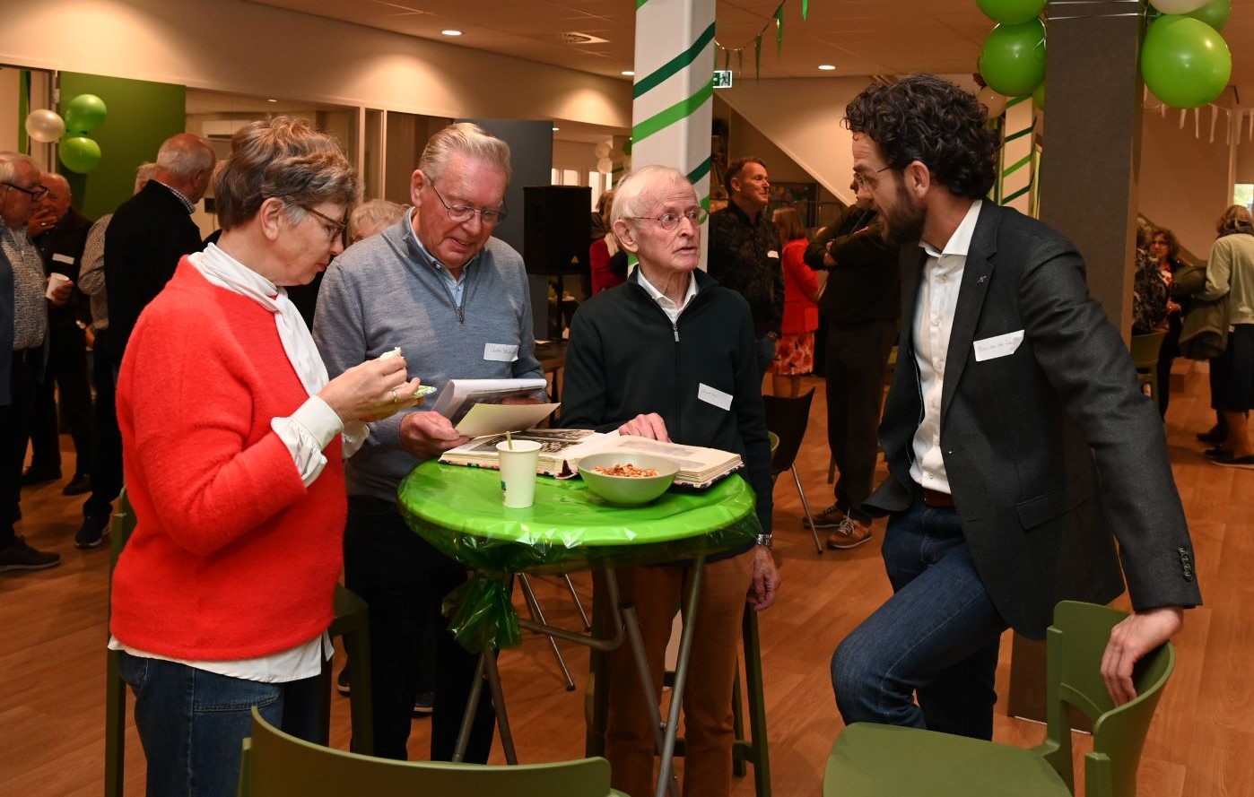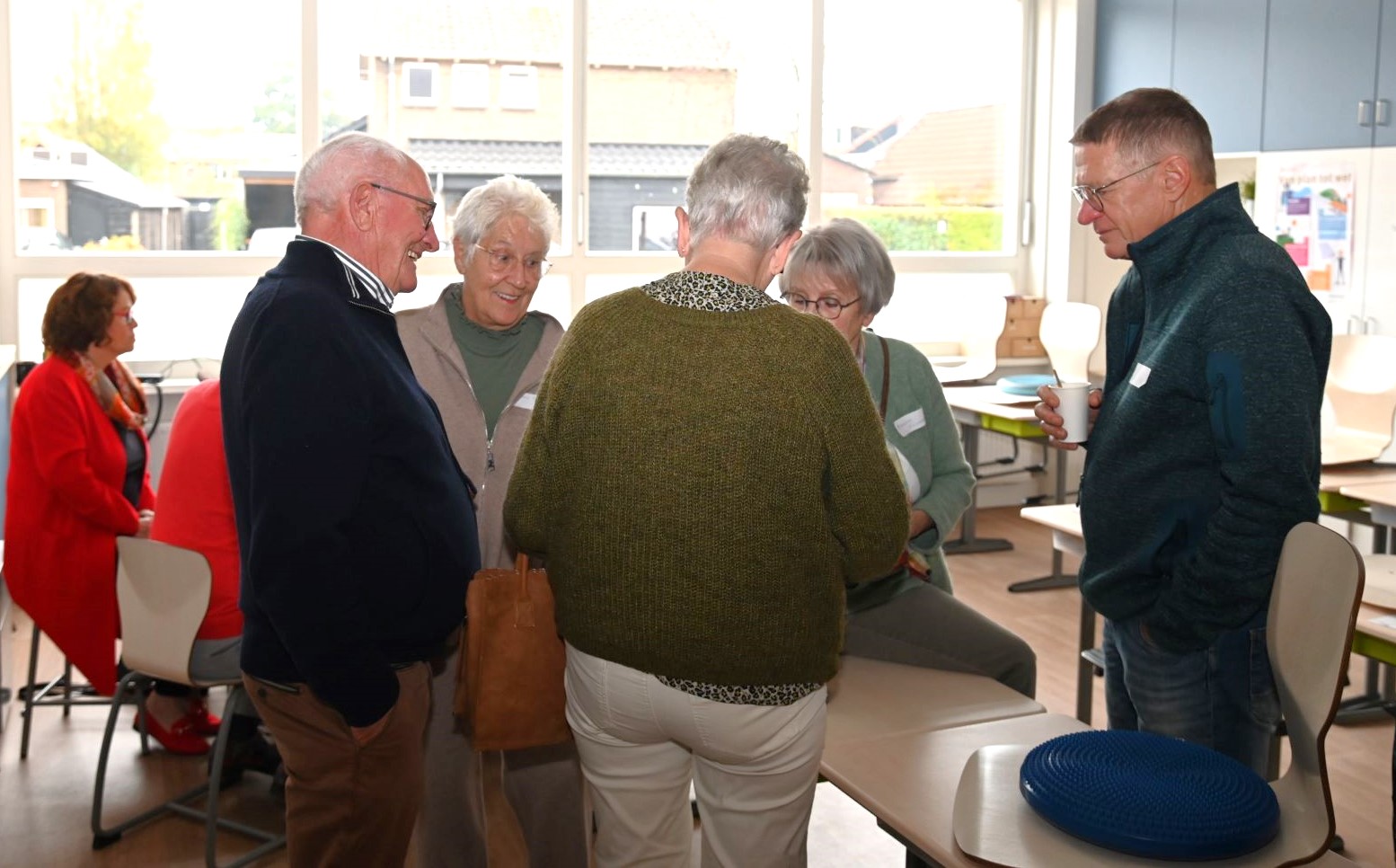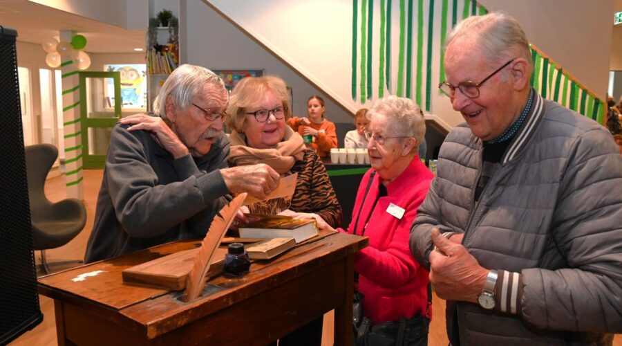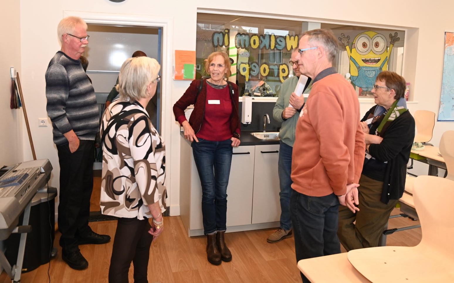 De Rehobothschool in Nijkerk vierde haar 75-jarige jubileum met een reünie op zaterdag 8 november. Dat begon met de oudste lichting leerlingen en leerkrachten en elk dagdeel werd opgeklommen naar de toekomstige generatie. Vooral onder de ouderen werden veel herinneringen opgehaald. Per lokaal was ruimte ingericht voor een bepaalde lichting en kon ieder elkaar weer na vele jaren in de armen sluiten. Er was veel fotomateriaal, bewegende videobeelden en poffertjes. Foto Kees van den Heuvel