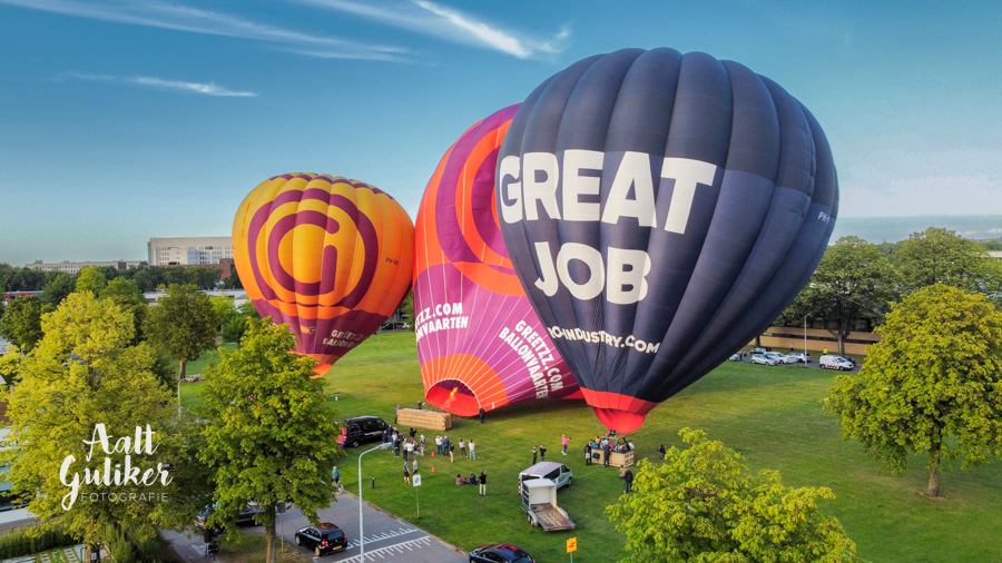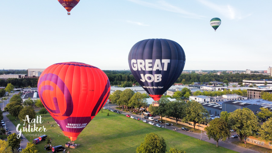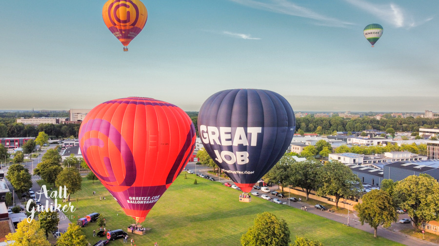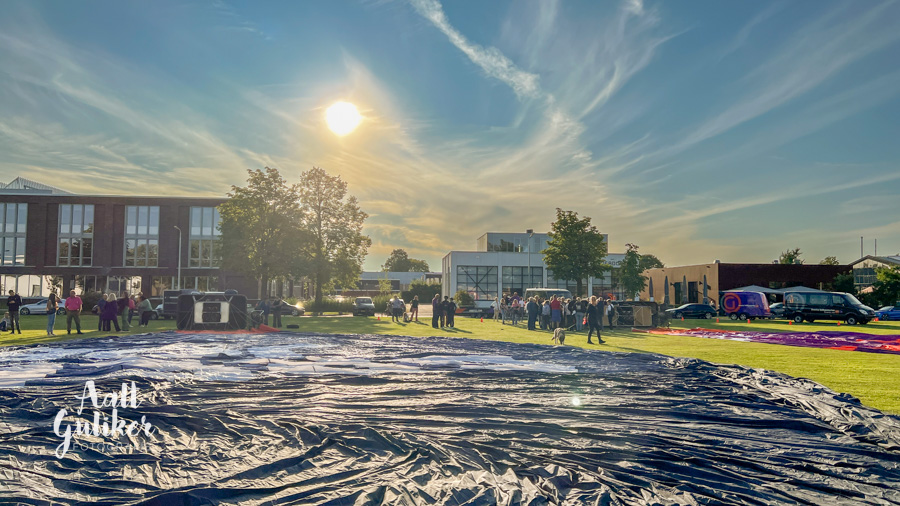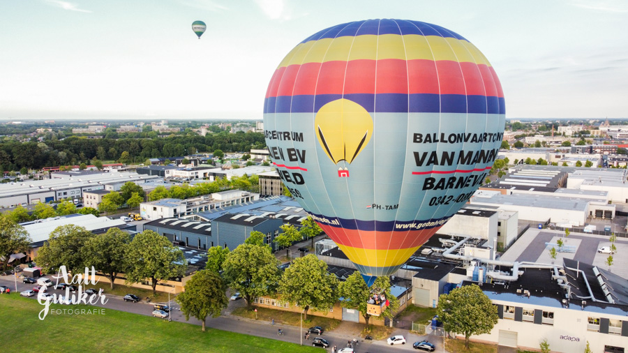 Na liefst twee afzeggingen door slechte weersomstandigheden was het woensdagavond 26 juli dan eindelijk zover voor Herman Gerritsen uit Nijkerk. Hij maakte samen met zijn dochter Simone een prachtige ballonvaart die onder andere over Hoevelaken voer. Gerritsen kreeg de ballonvaart cadeau voor zijn 72ste verjaardag. Herman en Simone namen plaats in de grootste mand van Europa. De mand biedt plaats aan 32 personen. Woensdag gingen er liefst 28 mee.
