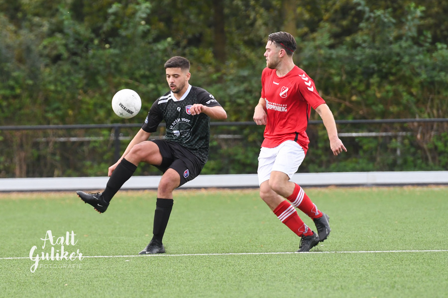 Met Hoevelaken als licht overheersende ploeg leken doelpunten ver weg, totdat op de speelhelft van de gasten tweemaal achtereen een duel niet voldoende werd aangegaan en CDW met drie balcontacten ineens opnieuw oog in oog stond met doelman Gijs Leebeek. In de 34e minuut was het nu wel raak, maar CDW kon niet lang van de voorsprong genieten. Nog geen minuut later torende Daniel Bezembinder boven de CDW verdediging uit, om de bal via het lichaam van een verdediger binnen te koppen.