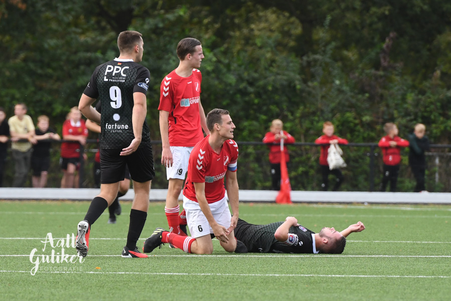 De wedstrijd leek naar een gelijke ruststand te hobbelen, totdat vanuit een hoekschop de gasten de bal een paar keer heen en weer konden koppen, om uiteindelijk de afrondende kopbal te bewerkstelligen: 1-2.