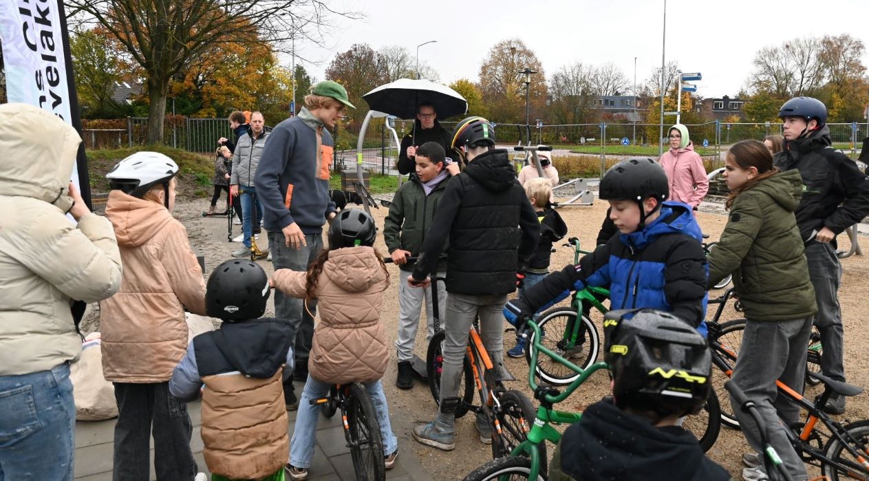 Zaterdag 15 november is naast sporthal de Slag in Hoevelaken de Pump Track baan geopend. De jeugd kan zich er helemaal uitleven op het aaneengesloten circuit van bulten en kombochten, vergelijkbaar met een BMX-baan en skatepark in één. Het is ontworpen om je snelheid te behouden door middel van een ‘pompende’ beweging met je lichaam en armen, waardoor je niet hoeft te trappen of te duwen zodra je de baan onder de knie hebt. Pumptracks zijn populair en geschikt voor een breed scala aan voertuigen, zoals BMX-fietsen, mountainbikes, skates, steps en skateboards. Maar fatbikes zijn niet toegestaan, maar een helm is verplicht. Hans Root, uitbater van sportcafé De Slag houdt een oogje in het zeil. Hij moest ondertussen al vaak optreden als EHBO’er. De pumptrack in Hoevelaken is tot stand gekomen door een samenwerking tussen de gemeente Nijkerk, de Lionsclub Hoevelaken, Sports2Play, The Pump Factory en het Wheelchair Skills Team. Een groot deel ervan is betaald door de provincie. De Lions Club zorgt voor het onderhoud. Foto Kees van den Heuvel