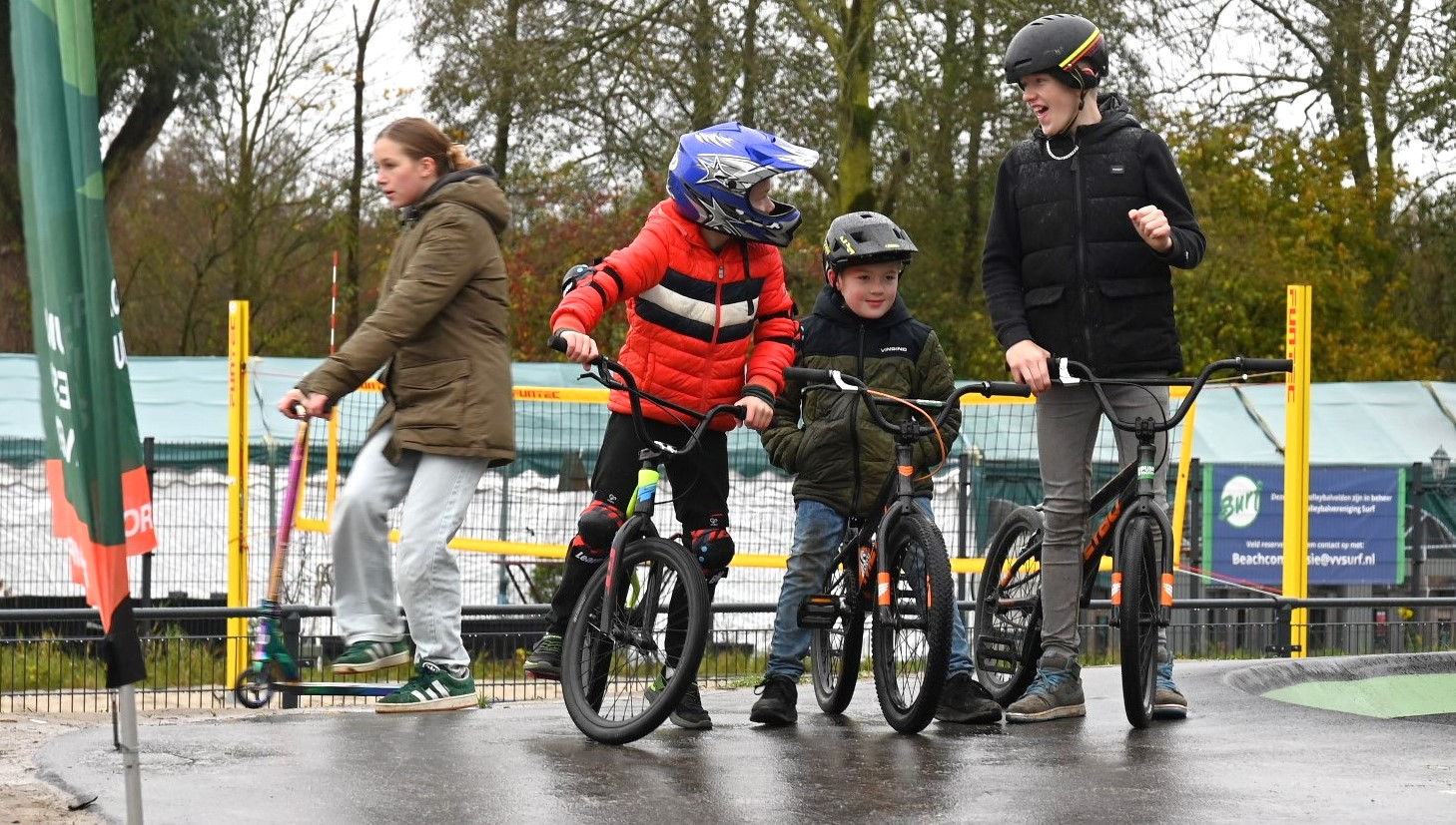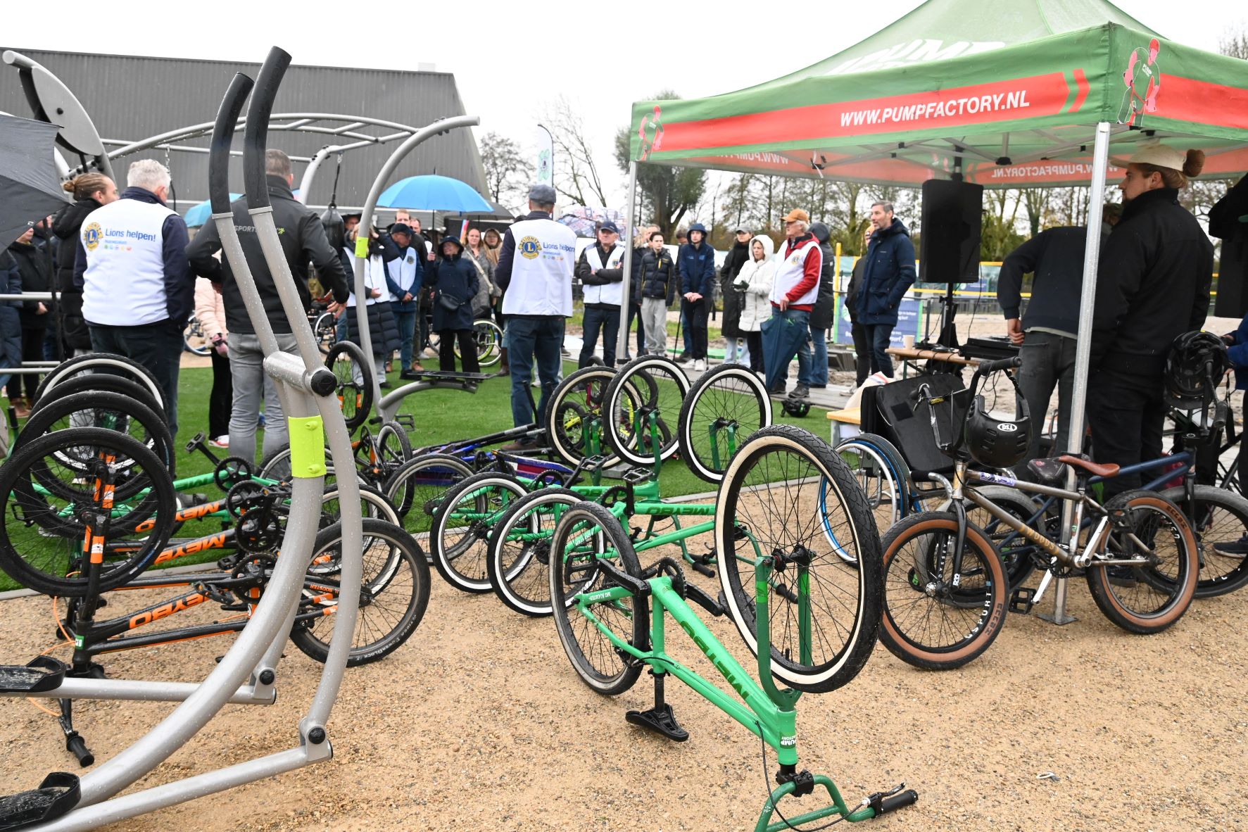 Zaterdag 15 november is naast sporthal de Slag in Hoevelaken de Pump Track baan geopend. De jeugd kan zich er helemaal uitleven op het aaneengesloten circuit van bulten en kombochten, vergelijkbaar met een BMX-baan en skatepark in één. Het is ontworpen om je snelheid te behouden door middel van een ‘pompende’ beweging met je lichaam en armen, waardoor je niet hoeft te trappen of te duwen zodra je de baan onder de knie hebt. Pumptracks zijn populair en geschikt voor een breed scala aan voertuigen, zoals BMX-fietsen, mountainbikes, skates, steps en skateboards. Maar fatbikes zijn niet toegestaan, maar een helm is verplicht. Hans Root, uitbater van sportcafé De Slag houdt een oogje in het zeil. Hij moest ondertussen al vaak optreden als EHBO’er. De pumptrack in Hoevelaken is tot stand gekomen door een samenwerking tussen de gemeente Nijkerk, de Lionsclub Hoevelaken, Sports2Play, The Pump Factory en het Wheelchair Skills Team. Een groot deel ervan is betaald door de provincie. De Lions Club zorgt voor het onderhoud. Foto Kees van den Heuvel