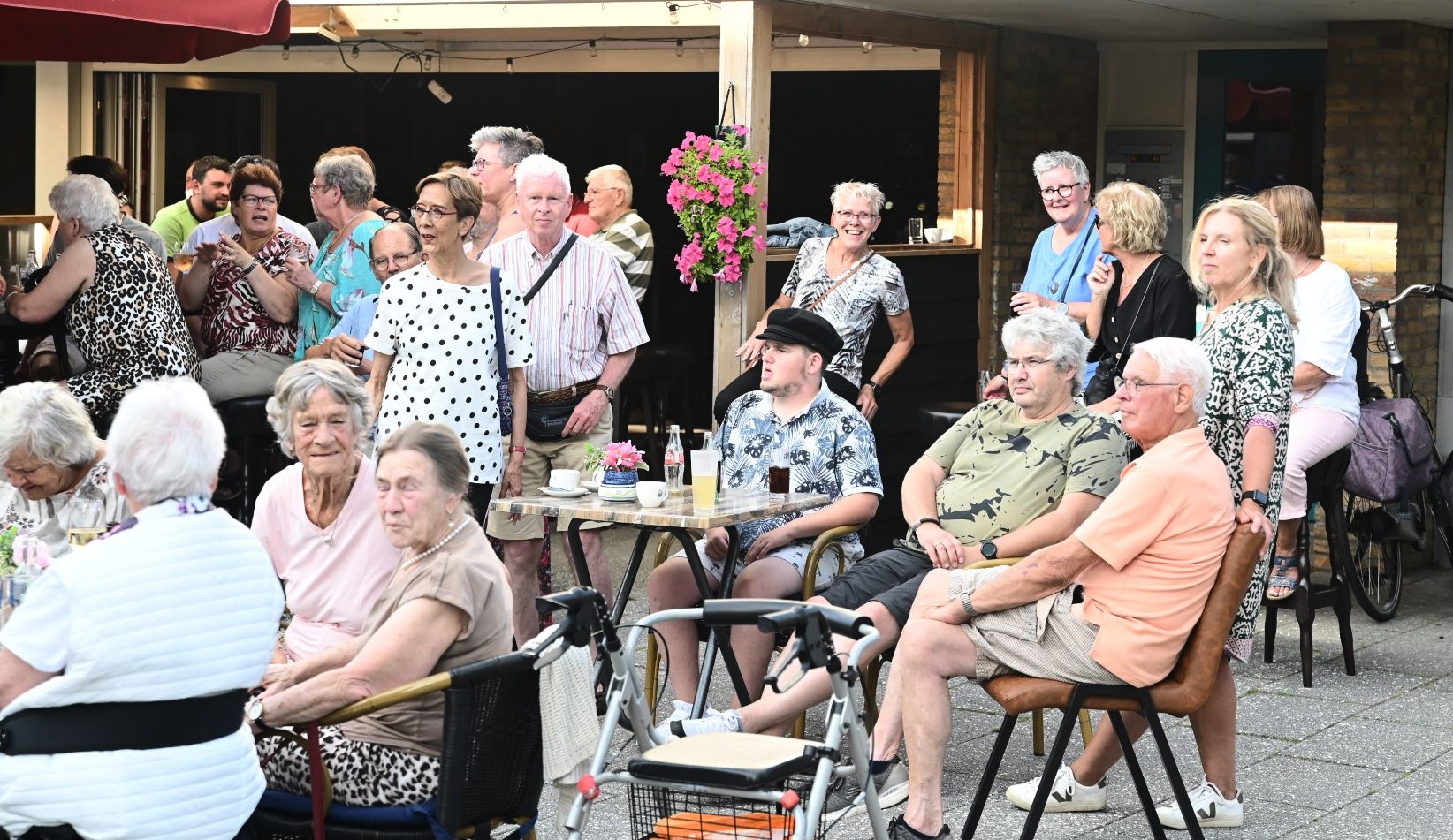 Het zeemanskoor Nijkerks Welvaren bracht maandagavond 10 juli een concert ten gehore in Hoevelaken. Het koor zong op de Wiekslag tegenover het gelijknamige café, alwaar een groot aantal muziekliefhebbers genoten van de vele zeemansliederen en smartlappen. Foto Kees van den Heuvel