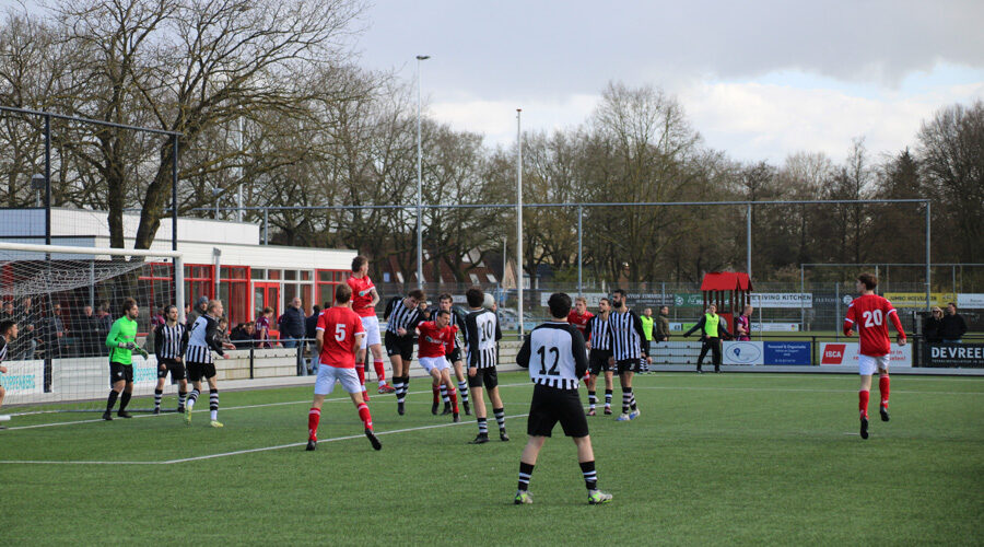 Een oppermachtig Hoevelaken heeft weer drie punten aan het conto toegevoegd door rode lantaarndrager Laren ’99 met een nederlaag huiswaarts te sturen. De gasten uit Laren hadden nauwelijks iets in te brengen tegen Hoevelaken, waren aanvallend slordig en onmachtig en zakken met een aan zekerheid grenzende waarschijnlijkheid af naar de vierde klasse. Desondanks kwam de Hoevelakense overwinning niet eenvoudig en pas laat tot stand. Ondanks het veldoverwicht en het veelvuldige bezoek aan het Larense strafschopgebied bleef het creëren van open kansen een manco. Enkele schoten en schotjes kon de doelman van Laren nauwelijks verontrusten. Hoe groot de Hoevelakense wil om op voorsprong de rust in te gaan ook was.