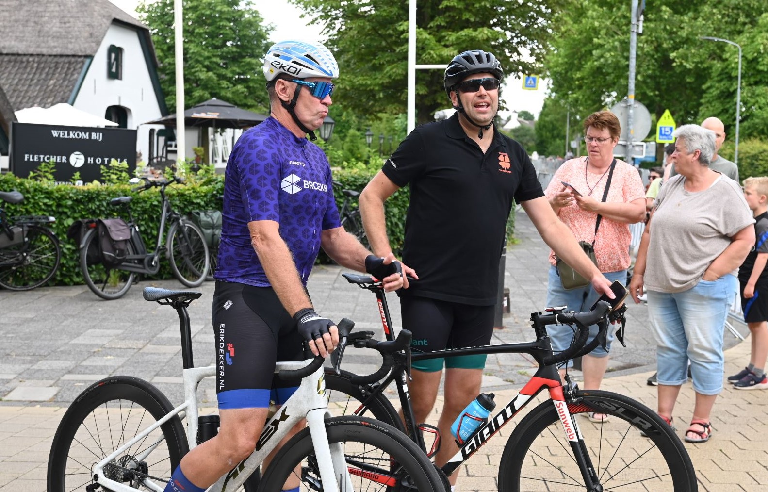 Hoe is het nu om een koppeltje te vormen met enkele voormalige wielerlegendes? Die droom kwam zaterdagavond 28 juni voor diverse Hoevelakers die een race mochten rijden met onder meer Erik Breukink, Michael Boogerd en Leontien Zijlaard-Van Moorsel. Deelnemers uit het dorp en omliggende plaatsen die eerder op de dag de toertocht van 85 kilometer uitreden, konden daarna nog deelnemen aan een race over het uitgezette dorpsparcours, met start en finish aan de Oosterdorpsstraat. De vijftien rapsten werden vervolgens aan een oud-prof gekoppeld. Foto Kees van den Heuvel