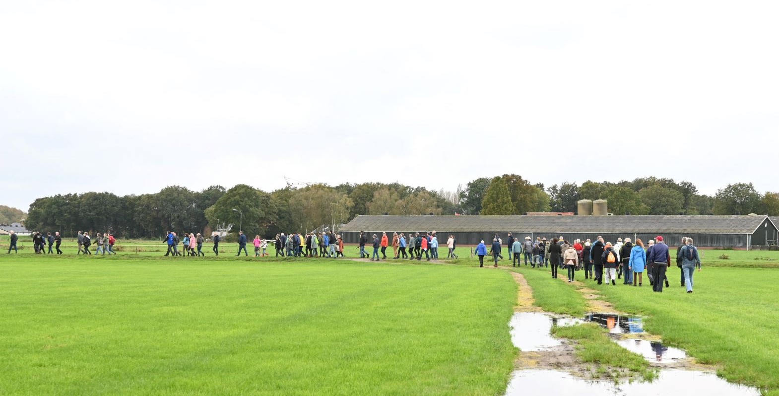 Honderden mensen hebben zaterdag 28 oktober deelgenomen aan het evenement Struinen door Appel, een initiatief van de Nijkerkse buurtvereniging Appel/Driedorp. De tocht liep via de weilanden van de Nieuwe Voorthuizerweg en terug. De wandeling langs de erven en weilanden gebeurde uiteraard met toestemming van de landeigenaren. Er kon worden gekozen voor twee afstanden: 5 en 10 kilometer. Vooraf en na de tocht was gezorgd voor een versnapering. Foto Kees van den Heuvel