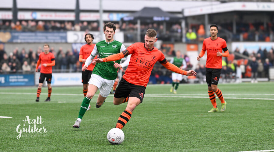De vraag is niet meer of HSC’21 gaat degraderen, maar wanneer. De eenzame hekkensluiter uit Haaksbergen werd op de pijnbank gelegd in Nijkerk, waar Sparta genadeloos uithaalde. De ploeg moest een 7-0 nederlaag incasseren. In Nijkerk was het verschil met een sterke topploeg te groot. De Haaksbergenaren hielden het in de openingsfase nog enigszins gesloten, maar na twintig minuten brak Sparta Nijkerk het verzet. Kort na de 1-0 volgde ook al snel de 2-0 en daarmee was de toon gezet. Sparta bleef doordrukken en liep via een rake vrije trap en een treffer vlak voor rust uit naar 4-0. Na rust veranderde het spelbeeld niet. Sparta Nijkerk ging onverminderd door en maakte binnen enkele minuten ook de 5-0 en 6-0. HSC’21 probeerde met wissels het tij te keren, maar werd vooral teruggedrongen. De ruimtes werden groter en in blessuretijd viel ook nog de 7-0. Buitenhuis 1-0, Vroegh 2-0, Fonville 3-0, Veenstra 4-0, Fonville 5-0, 6-0 en 7-0.