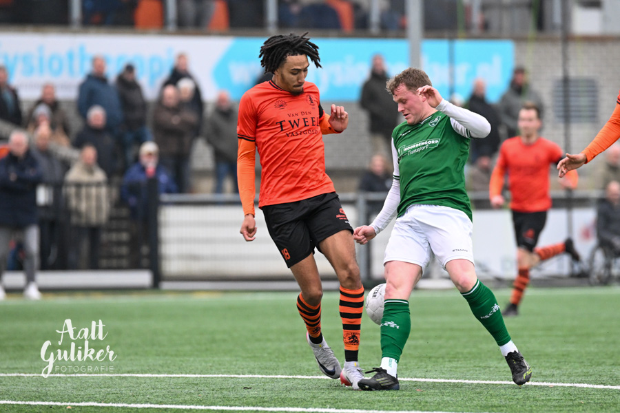Sparta Nijkerk heeft zaterdag 31 januari met een onvervalste zevenklapper uitgehaald tegen hekkensluiter HSC’21. Op de Ebbenhorst werden in de eerste helft al vier goals gemaakt en een ontketende Tyrone Fonville droeg zorg voor de overige drie goals na rust. In totaal maakte Fonville liefst vier goals. Sparta Nijkerk is met dit resultaat tijdelijk koploper. Rohda Raalte moet zondag nog in actie komen tegen Hoogeveen.