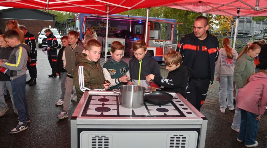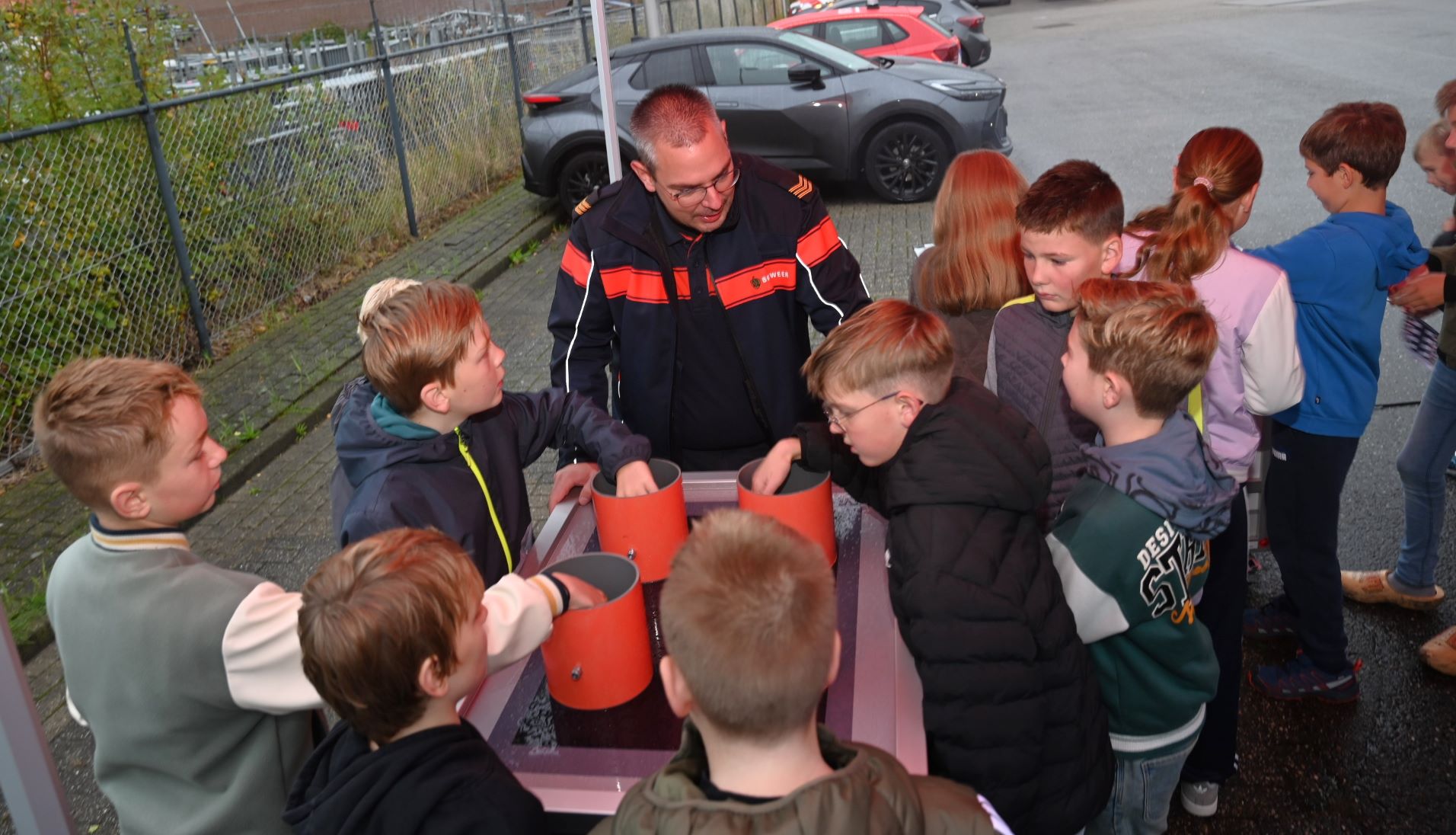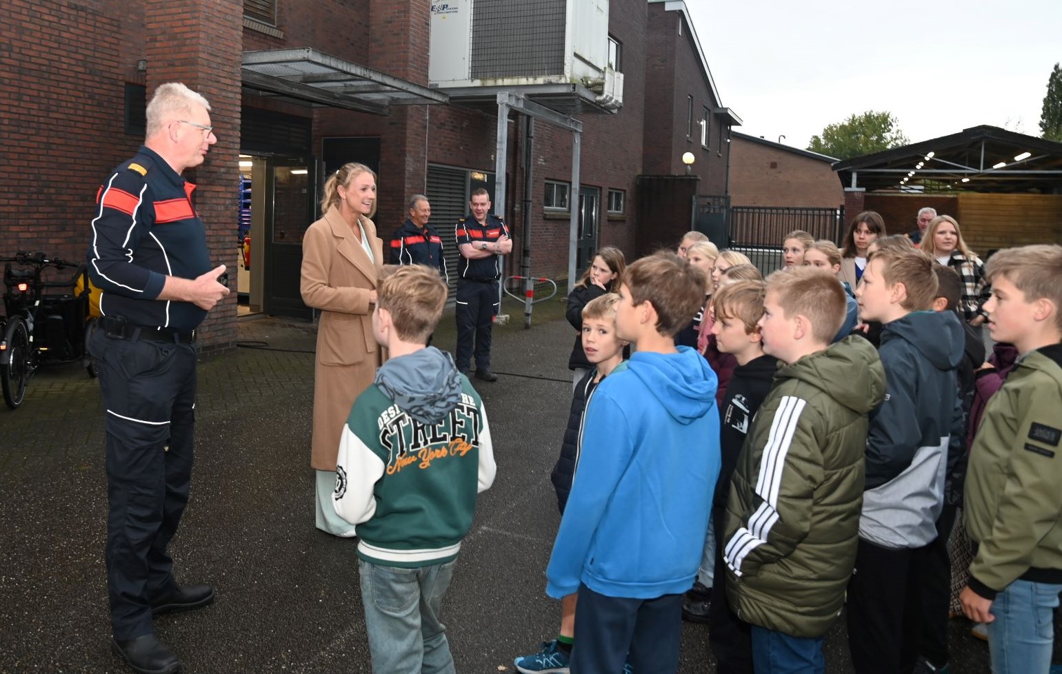 In oktober vinden de Nationale Brandpreventieweken plaats. Het thema is “Ik laad accuraat”, met aandacht voor het veilig gebruik van accu’s. De jeugd vormt de basis voor een brandveilige generatie. Daarom is de brandweer een bijzondere pilot gestart: het mobiele belevingscentrum. Groepen 7 en 8 van de Ichthusschool kregen maandag 6 oktober een interactieve les en beleefden zelf wat brand(on)veilig gedrag betekent. Bij het bezoek aan de brandweerkazerne was ook burgemeester De Jonge aanwezig. Foto Kees van den Heuvel