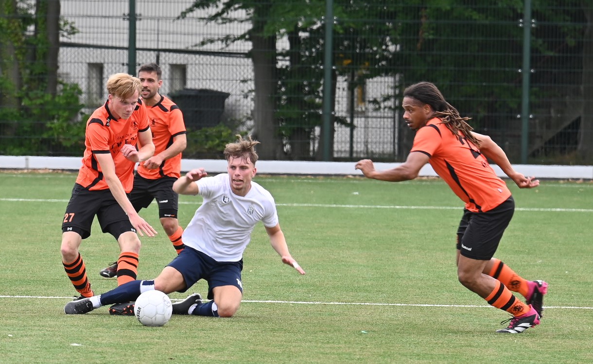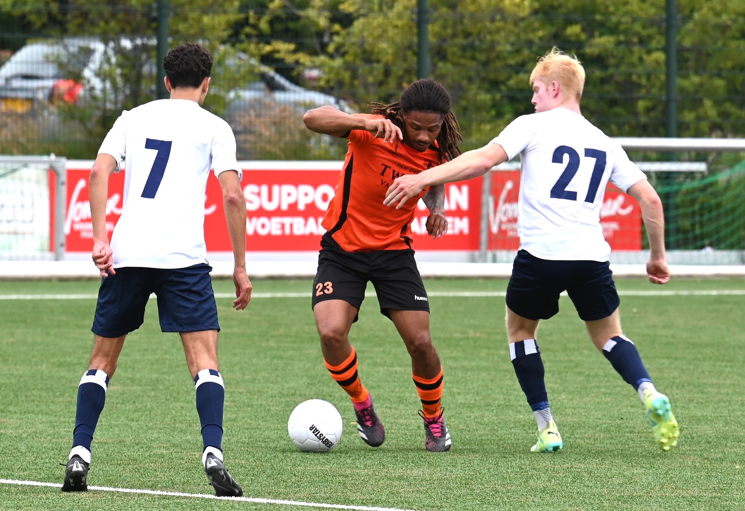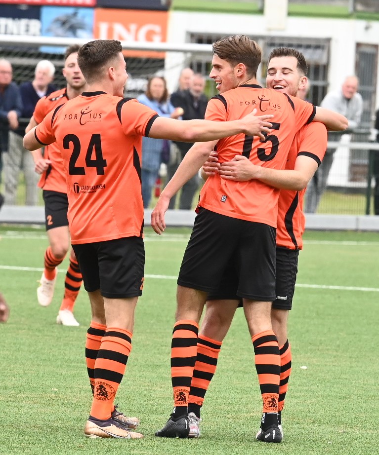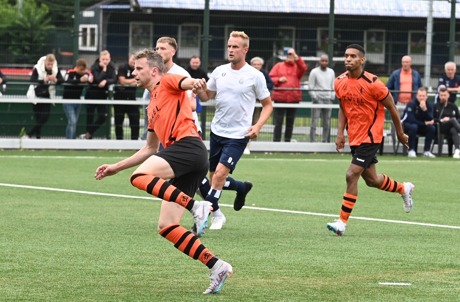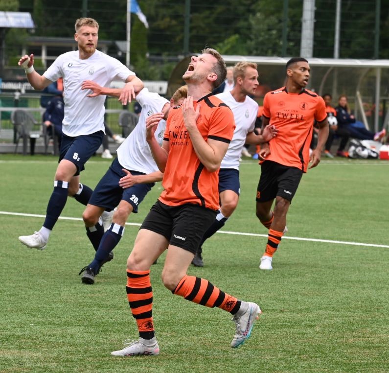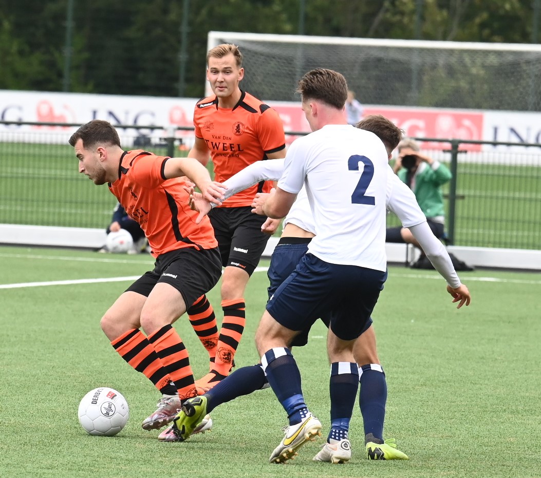 Sparta Nijkerk heeft een zeer goed begin van het seizoen achter de rug. In de eerste oefenwedstrijd zaterdag 22 juli tegen tweede divisionist Koninklijke HFC uit Haarlem werd het 2-4. Vooral in het eerste kwartier kende Sparta in Haarlem een ijzersterke start. Toen had het ook zomaar 0-5 kunnen staan. Al na drie minuten kreeg Marc van der Weijden een penalty toegewezen na een overtreding in het strafschopgebied. Hij mocht zelf achter de bal plaatsnemen. Aanvankelijk werd de bal gepareerd door de keeper maar in de rebound ging de bal er alsnog in. Nog geen minuut later scoorde Christos Ibrahim met een ongenadig mooie krulbal de 0-2, een wereldgoal vanaf een meter of twintig. Na nog twee minuten werd wederom een penalty toegewezen na een overtreding op uitblinker Kevin Sterling. Marc van der Weijden mocht opnieuw plaatsnemen achter de bal maar ditmaal miste hij. Sterling zag daarna nog een bal langszij gaan en Marc van der Weijden zag na tien minuten de bal opnieuw gekeerd door de keeper van HFC maar anders zat er een echt een stunt in het verschiet tegen de club uit Haarlem. In de tweede helft nam Sparta wat gas terug en kwam nog maar sporadisch bij de goal van de tegenstander, maar als ze er waren werd er ook raak geschoten. Er waren goals van Frank Heus die geblesseerd het veld verliet en Stefano Fransberg. HFC dat in de tweede helft veel beter stond, scoorde tegen middels goals van Veerman en Yuya. Na afloop van de wedstrijd was trainer Eric Speelziek trots op zijn jongens. ‘We hebben slechts één trainingsweek gehad. We waren vooral bezig met het spel zonder bal, de intensiteit van het druk zetten. Van de vier goals kwamen er drie vandaan vandaag. Dat hebben ze heel goed gedaan.’’ Kevin Sterling was in de ogen van de verslaggever de allerbeste speler, ofschoon hij niet scoorde. ‘Ja geweldig. Hij is heel goed. We hebben meer snelheid en agressie voorin erbij gekregen. Ook Christos Ibrahim heeft het hartstikke goed gedaan. Die maakte die fantastische tweede goal.’ Volgens Speelziek had daarmee vorig seizoen wellicht het verschil kunnen zijn gemaakt. ‘Maar ik ben vooral tevreden wat we getraind hebben. Balbezit, vooruit lopen met zeven mensen. Dit biedt perspectief. We spelen met veel jonge jongens. Veel basisspelers waren er niet. Er kwamen er vijf uit de onder 23.’ De zeven ontbrekende selectieleden voegen zich maandag bij de groep. ‘Het zou mooi zijn als we vrijdag tegen IJsselmeervogels weer zo starten.’ Foto’s en verslag/interview Kees van den Heuvel