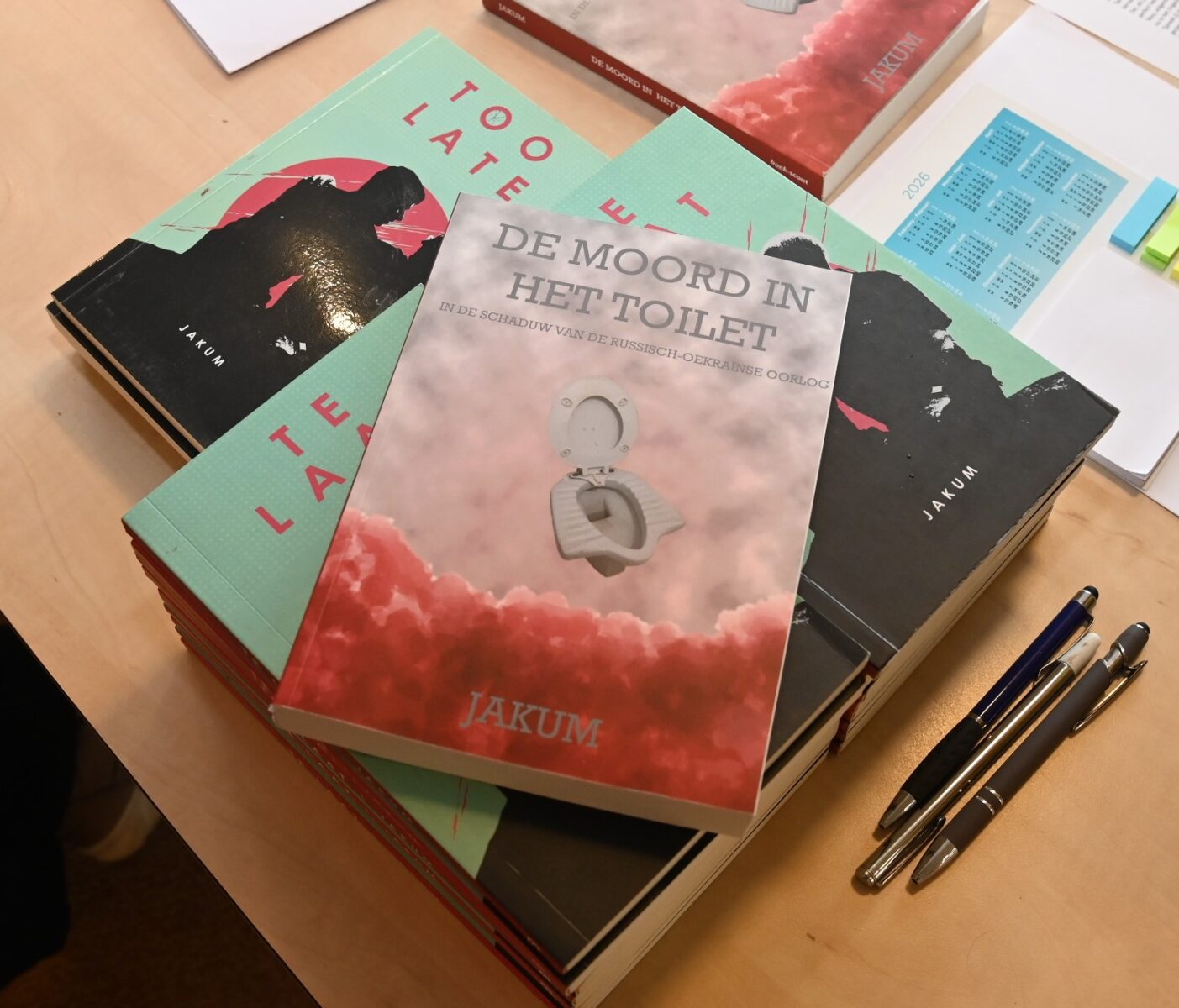 Op vrijdag 10 april vond in de bibliotheek van Hoevelaken de feestelijke presentatie plaats van de thriller De moord in het toilet. Onder behoorlijke belangstelling presenteerde oud-Hoevelaker Jan de Beer zijn tweede boek, dat hij schreef onder zijn alter-ego Jakum. Tijdens een officieel moment in de bibliotheek werd de ‘geboorte’ van het boek gevierd. Het eerste exemplaar werd door de auteur persoonlijk overhandigd aan Cilia van Leeuwen van Primera Hoevelaken. Hiermee werd de nauwe band tussen de schrijver en de lokale boekhandel bezegeld. Het boek is exclusief verkrijgbaar bij Primera Hoevelaken. Foto Kees van den Heuvel