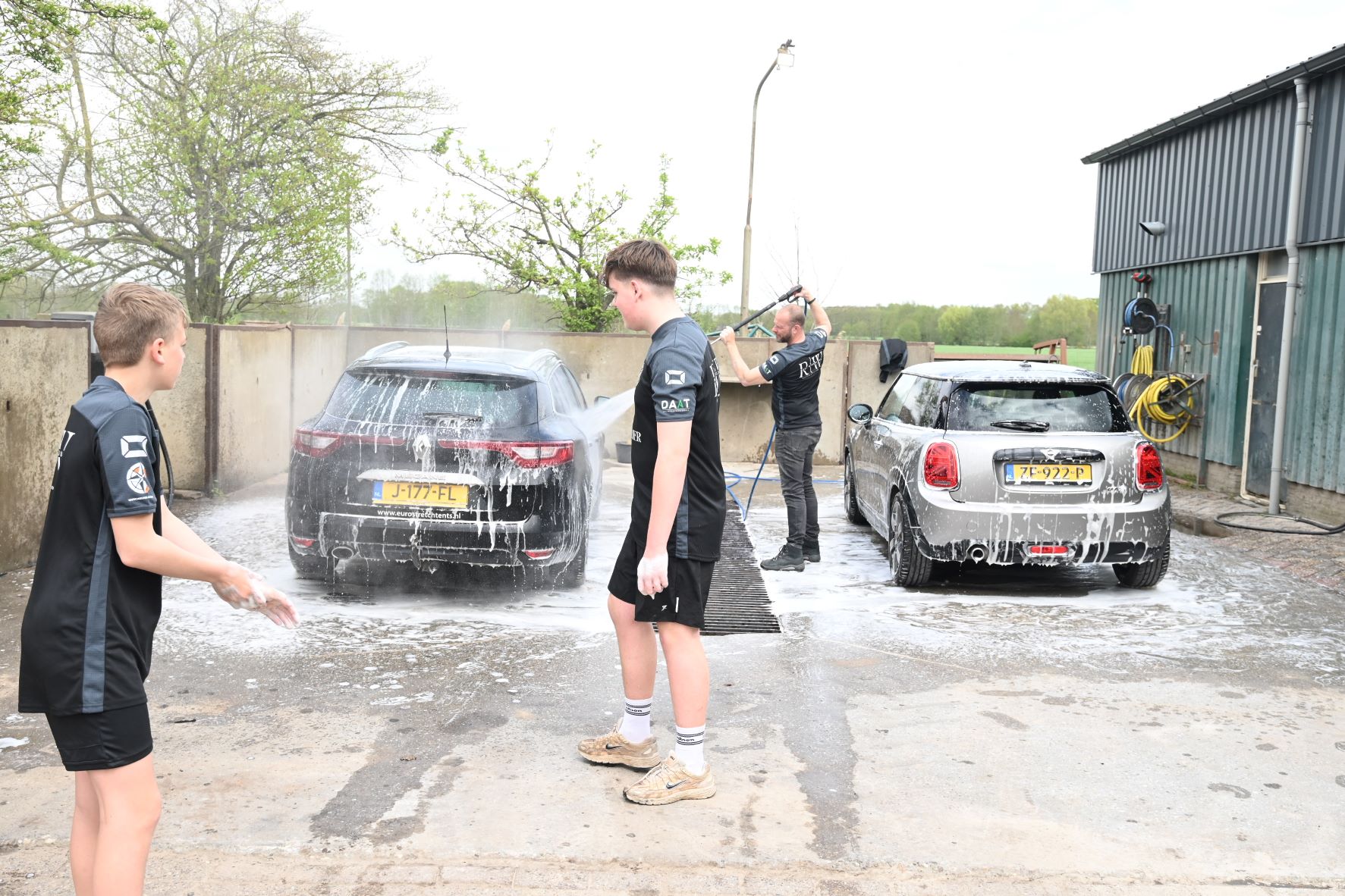 De actie is een belangrijk onderdeel van de crowdfunding die het team heeft opgezet. Eerder al werden statiegeldflessen opgehaald. Het team wil Buijtenhuis bedanken voor het beschikbaar stellen van de locatie, evenals alle gulle automobilisten die hun auto lieten wassen. Dankzij hun bijdrage kan de JO13-4 zich nu volledig gaan focussen op de laatste voorbereidingen voor hun internationale debuut in België. Autowassen kan nog tot 16.00 uur. Foto Kees van den Heuvel