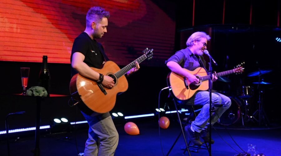 De lancering werd extra glans gegeven door Ed Struijlaart, bekend van zijn succesvolle theatershows zoals Gitaarmannen. Met zijn passie voor de gitaar en verhalen over iconen als John Mayer, zorgde hij voor de perfecte sfeer tijdens de drukbezochte dag in het Medialab. De grote belangstelling onderstreepte de sterke gitaar-community in Nijkerk en omgeving. Foto Kees van den Heuvel