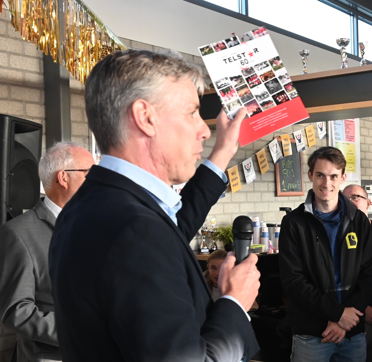 Korfbalvereniging Telstar uit Hoevelaken vierde zaterdag 14 oktober haar zestigjarige bestaan. Bij die gelegenheid heeft burgemeester Gerard Renkema namens het Nijkerkse gemeentebestuur een cheque overhandigd ter waarde van 600 euro aan voorzitter Rob Harmsen. Op zijn beurt overhandigde Harmsen het jubileummagazine van Telstar aan de burgemeester, die ook nog eens kreeg ingewreven dat Telstar vorige week de derby won van Sparta Djops uit Nijkerk.