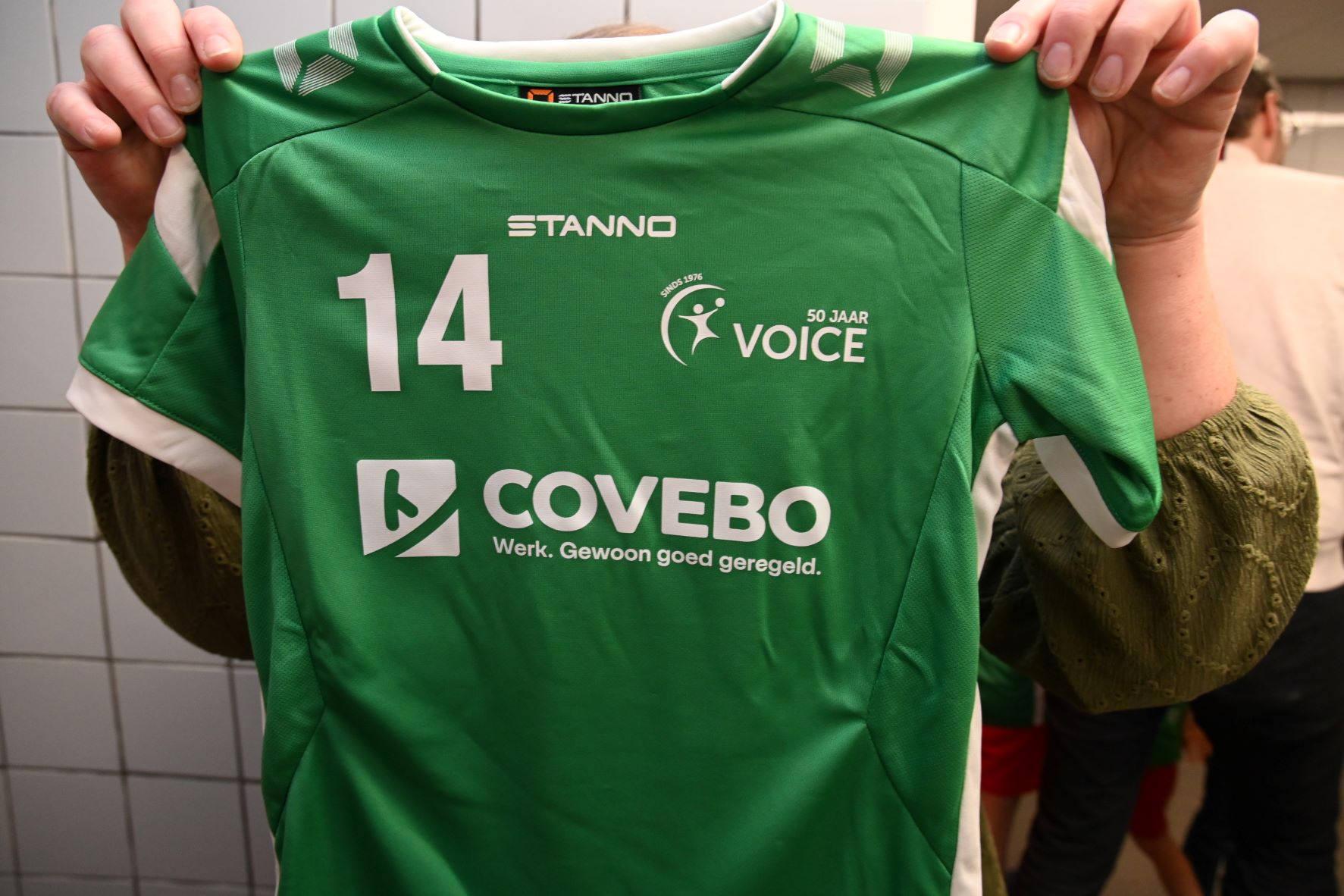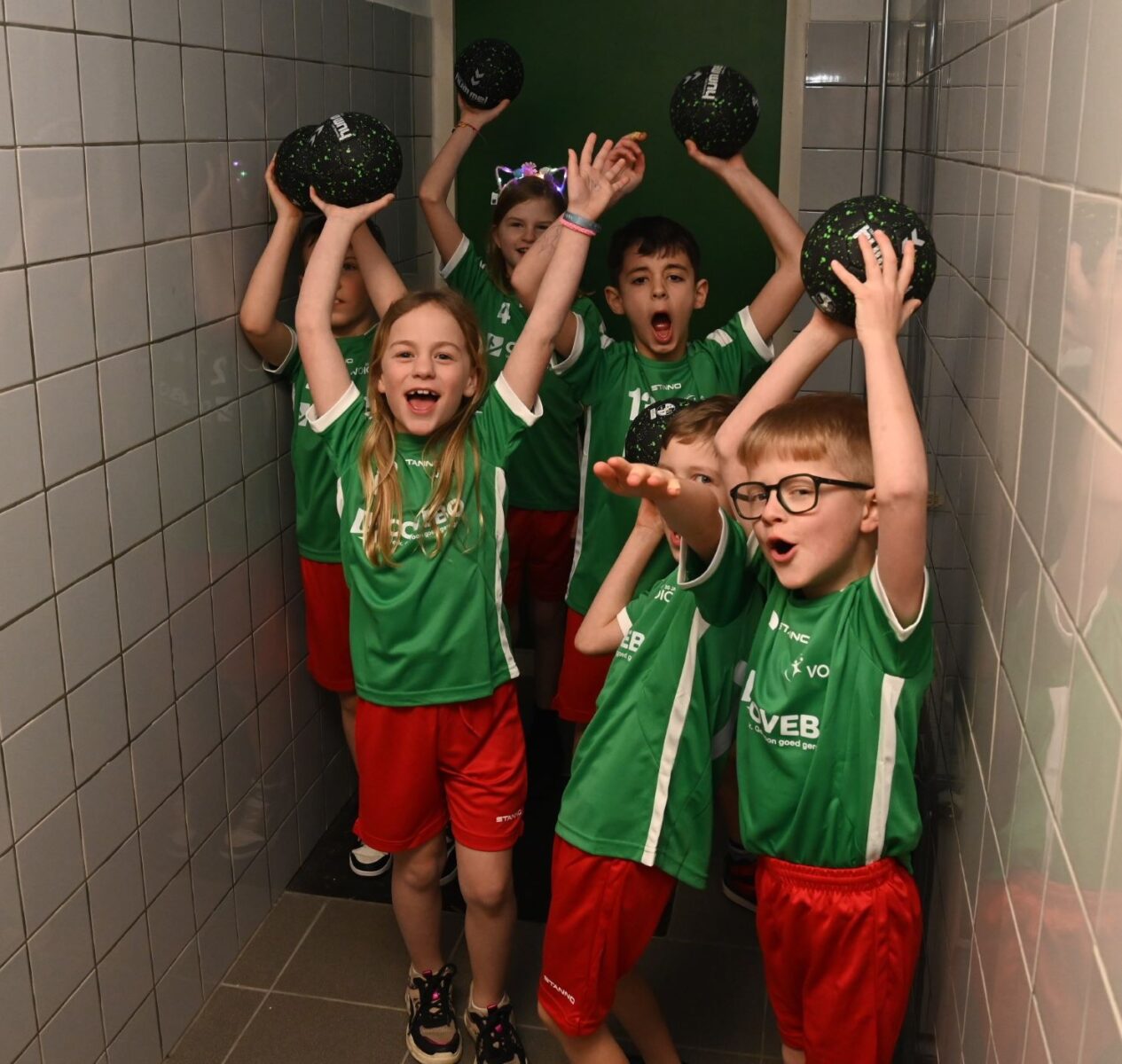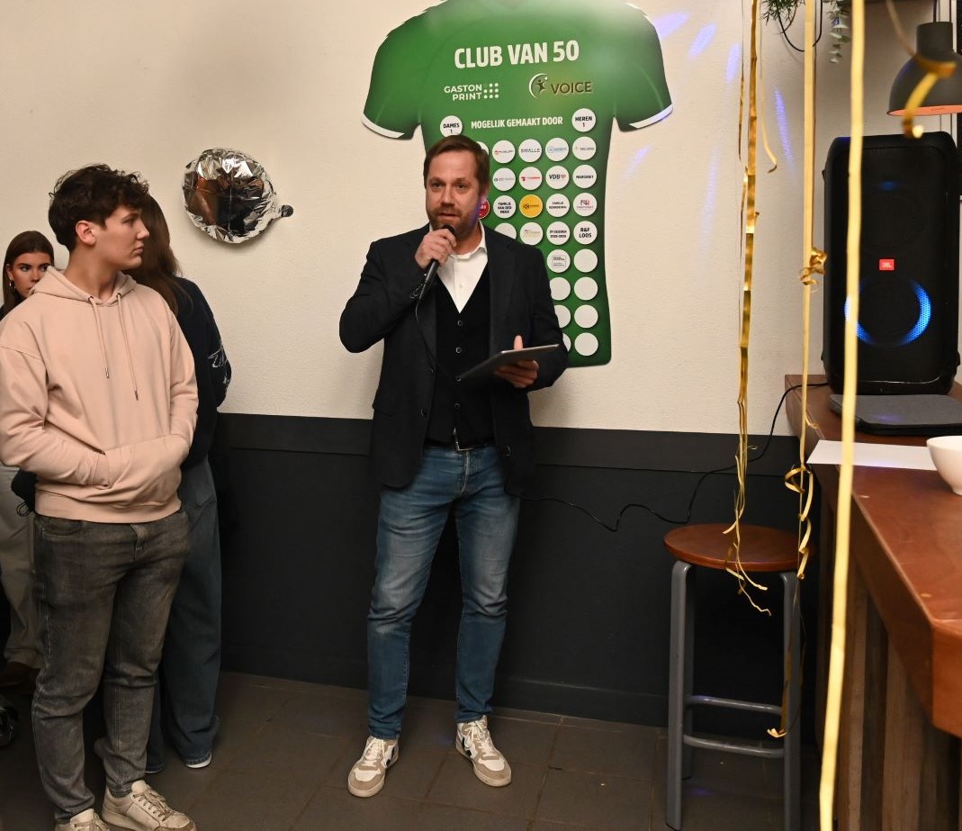 Het hele jaar 2026 staat bij de Nijkerkse handbalvereniging Voice in het teken van het 50-jarige bestaan. Dat wordt gevierd op 6 juni met een reünie, maar ook tijdens de nieuwjaarsreceptie op vrijdag 10 januari werd er aandacht aan besteed. Zo worden alle leden getrakteerd op een jubileumshirt. De onderbouw van Voice presenteerde die shirts op een rode loper middels een modeshow. Foto Kees van den Heuvel