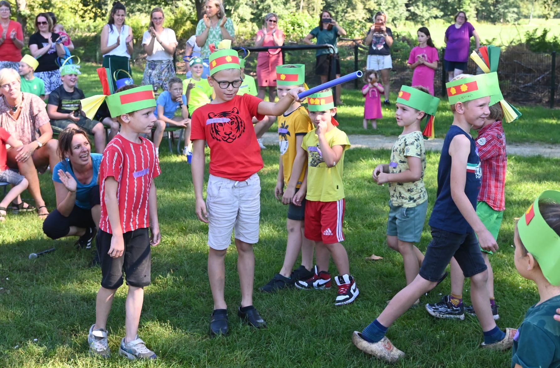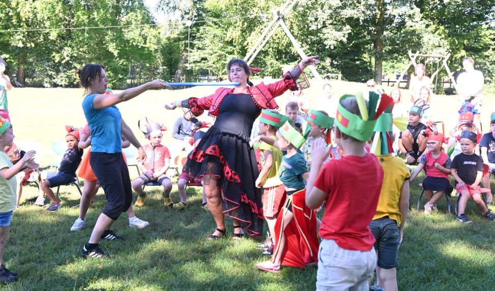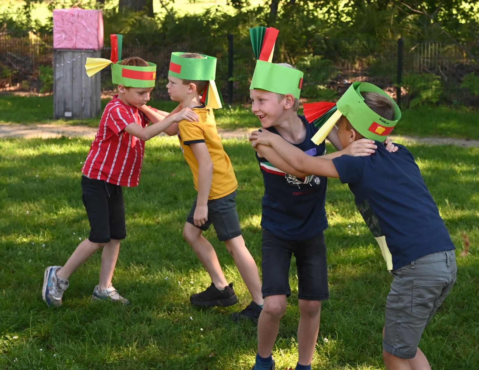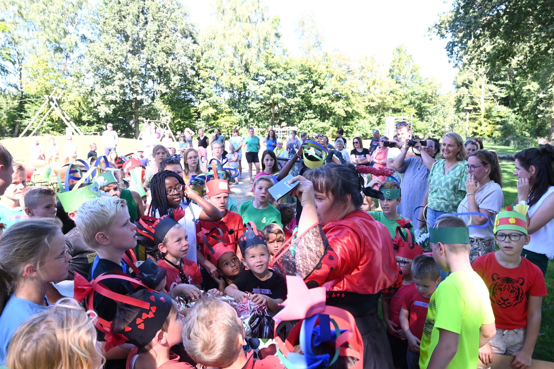Juf Alieke vierde woensdag 6 september dat ze al 25 jaar werkzaam is op basisschool De Appelgaard in de Nijkerkse kern Appel/Driedorp. In de loop der jaren heeft ze aan alle groepen les gegeven. Ze werd ’s morgens thuis opgehaald door de kleutergroep en aangekomen op school moest ze een rode flamenco-jurk aan. De kinderen van de school verrasten haar met allerlei Zuid-Amerikaanse dansen. Tot slot moest juf Alieke ook meedansen. Ze ontving van de school een cadeaubon, waarvan ze wandelschoenen gaat kopen. Foto Kees van den Heuvel