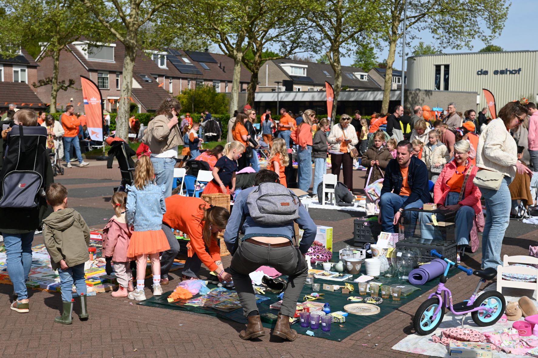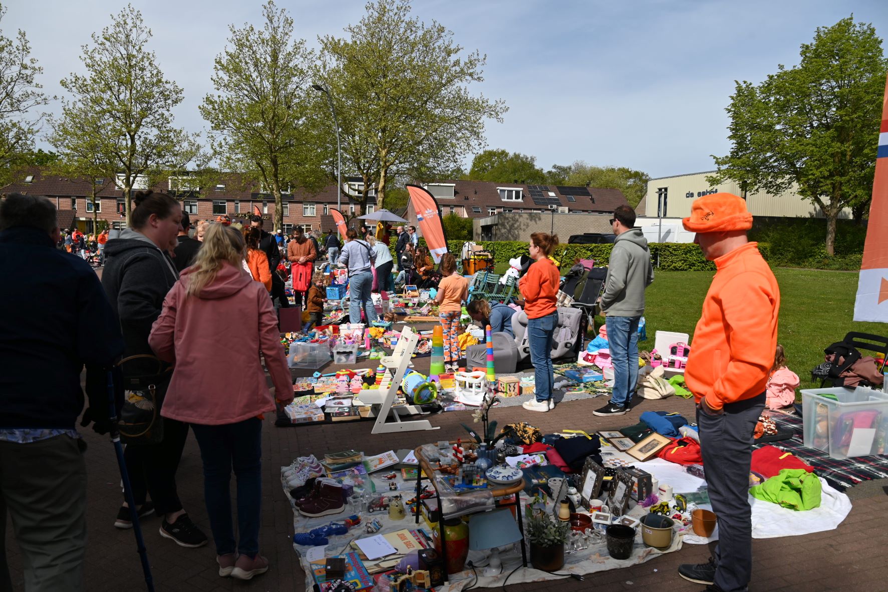 Ondanks de stralende zon bleef de sfeer in de straten van Hoevelaken dit jaar tijdens Koningsdag achter bij de verwachtingen. Door een verplaatsing van de traditionele matjesmarkt en het ontbreken van livemuziek in het centrum, spreekt de gemeenschap van een ‘karige’ editie. De Oranjevereniging Hoevelaken waarschuwt dat strengere regelgeving en een tekort aan vrijwilligers het organiseren van grote dorpsactiviteiten in de toekomst ernstig bemoeilijken. Waar de straten van het dorpscentrum normaal gesproken bruisen van activiteit, bleef het dit jaar opvallend stil. De matjesmarkt was verplaatst naar de parkeerplaatsen van het evenemententerrein, waardoor de loop uit het centrum verdween. Bovendien was er geen groot podium voor artiesten. Wel konden mensen hun eigen liedjes ten gehore brengen op het evenemententerrein. Volgens John van de Bunt van de Oranjevereniging is de grens van het haalbare bereikt, zo meldde hij in De Stad Nijkerk. De organisatie loopt aan tegen een muur van kosten en eisen. „Denk aan beveiliging, EHBO en alle eisen rondom een podium,” aldus Van de Bunt. „Alleen al een muziekpodium met alle voorzieningen kost al snel 15.000 euro.” Zonder een sterke groep vrijwilligers is het bovendien lastiger om sponsoren te binden, wat direct gevolgen heeft voor het budget en de invulling van het programma. De Oranjevereniging benadrukt dat de veranderingen in het dorp en de toenemende regeldruk vragen om een nieuwe aanpak en meer lokale steun. Om de levendigheid van Koningsdag in de toekomst te kunnen garanderen, is er meer hulp nodig van zowel vrijwilligers als het bedrijfsleven. Het bestuur van de Oranjevereniging en de lokale ondernemers hopen voor volgend jaar tijdig om tafel te kunnen om een herhaling van deze ingetogen viering te voorkomen. Foto Kees van den Heuvel