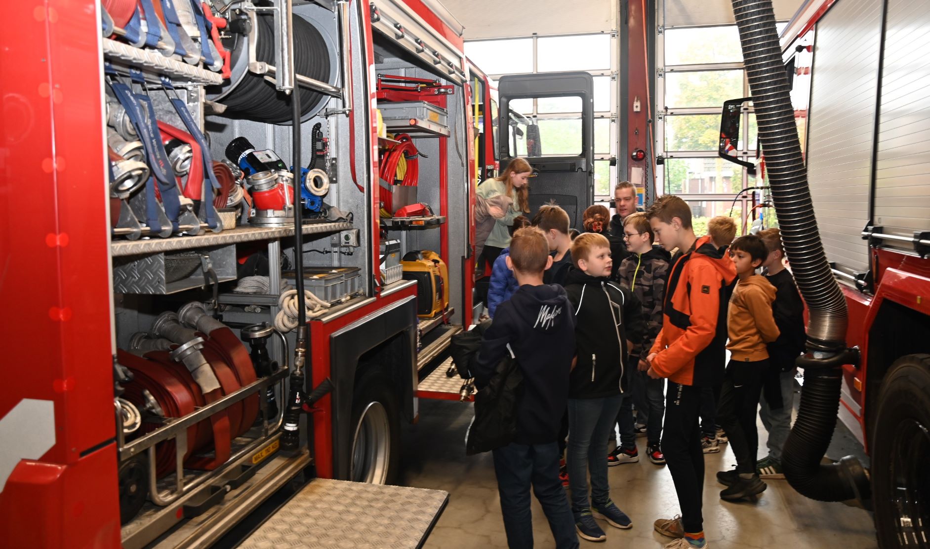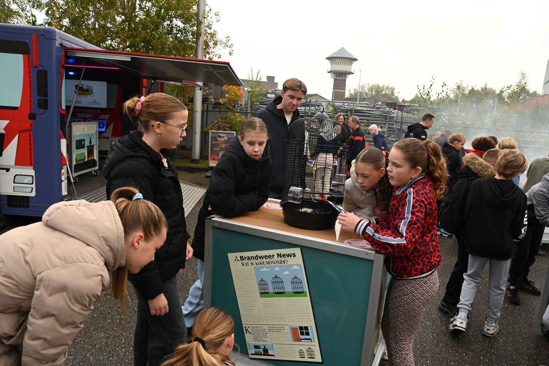 In oktober vinden de Nationale Brandpreventieweken plaats. Het thema is “Ik laad accuraat”, met aandacht voor het veilig gebruik van accu’s. De jeugd vormt de basis voor een brandveilige generatie. Daarom is de brandweer een bijzondere pilot gestart: het mobiele belevingscentrum. Groepen 7 en 8 van de Koningslinde kregen woensdag 8 oktober een interactieve les en beleefden zelf wat brand(on)veilig gedrag betekent. Bij het bezoek aan de brandweerkazerne was ook wethouder Heutink aanwezig. Foto Kees van den Heuvel