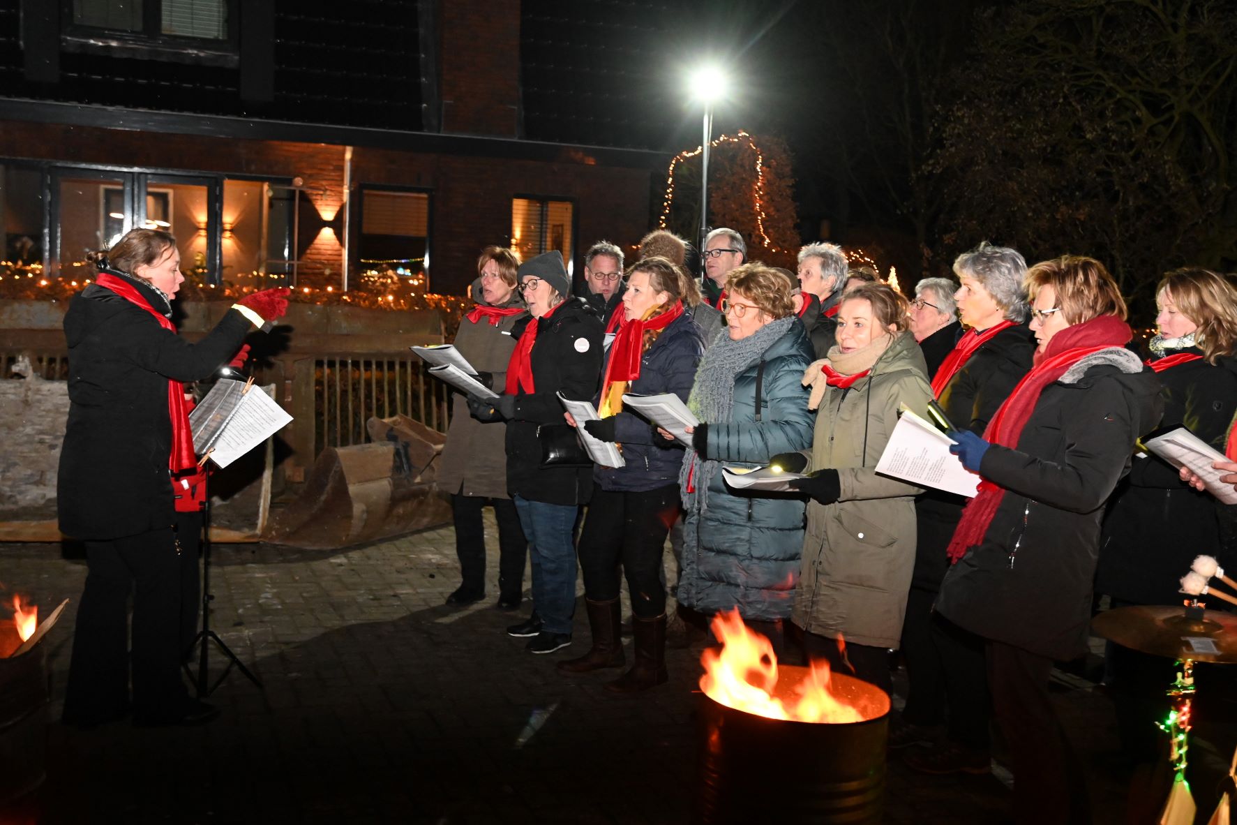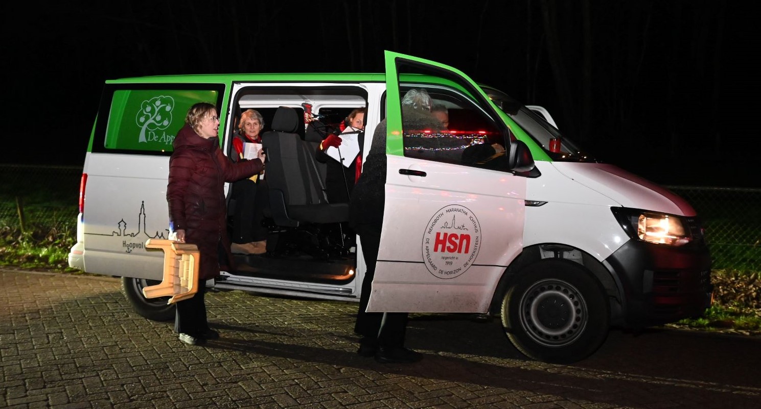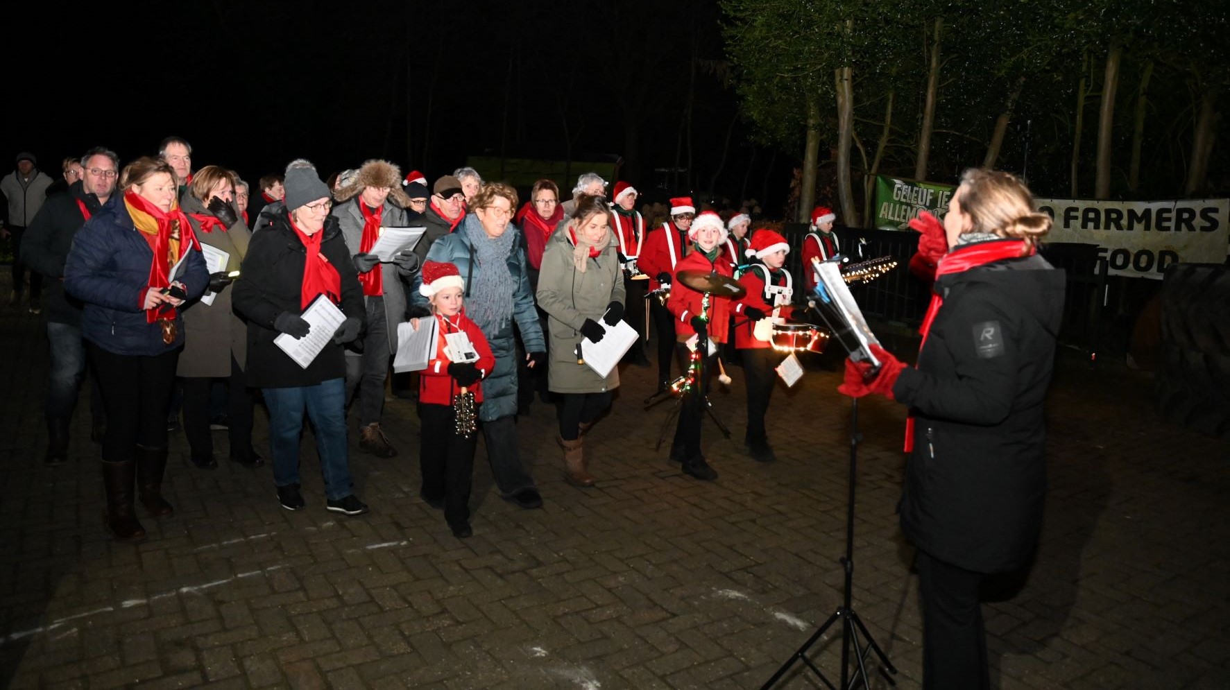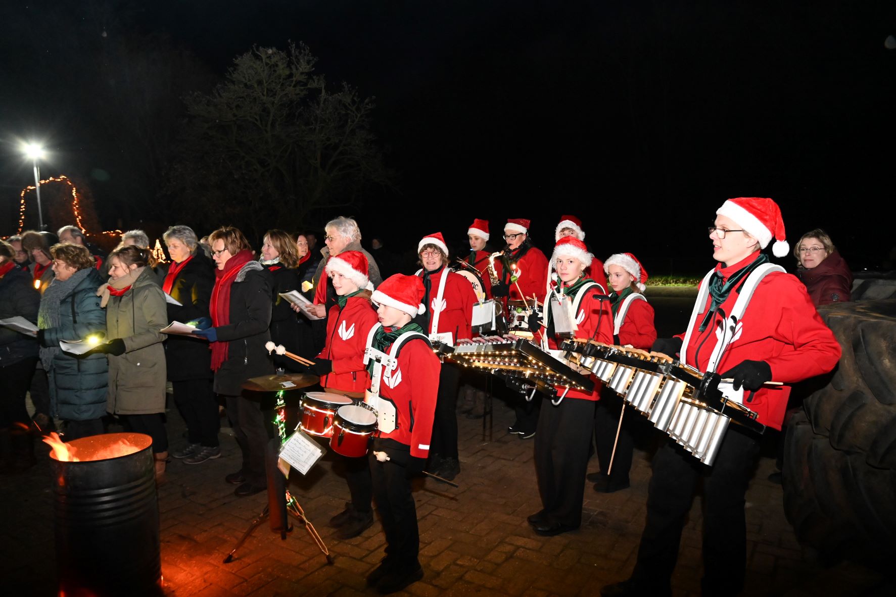 Ze waren er maar druk mee in deze kersttijd. Een zangkoor, bestaande uit een groep enthousiaste buurtbewoners uit de Nijkerkse kernen Appel en Driedorp, ging dinsdagavond kerstliederen zingen bij de senioren in de buurt. Tot ver in de avond waren ze bezig om vele adressen te bezoeken. Het koor kreeg begeleiding van de slagwerkgroep van de muziekvereniging De Voortzetters uit Voorthuizen. Er waren drie verschillende liederen ingestudeerd en het koor bracht dit meerstemmig ten gehore. Hilarisch was dat de muzikanten, overigens comfortabel, in een paardentrailer werden rondgereden. Met de foto-opnamen waren we te gast bij Marijke van Mispelaar aan de Slichtenhorsterweg waar diverse vuurkorven waren aangestoken. Foto Kees van den Heuvel