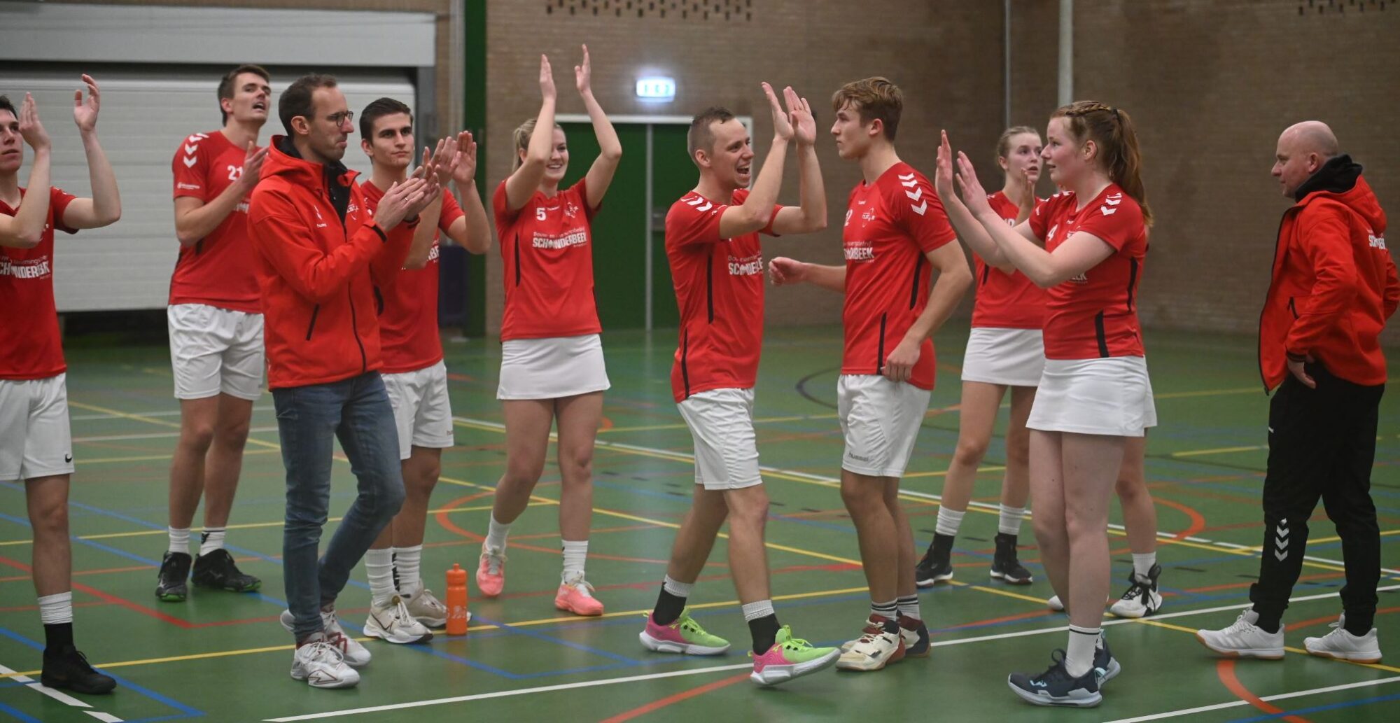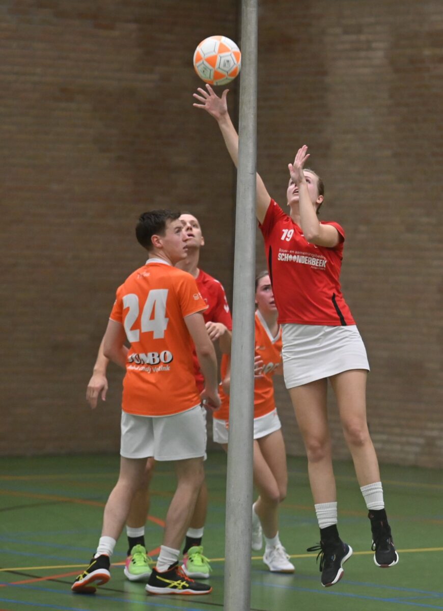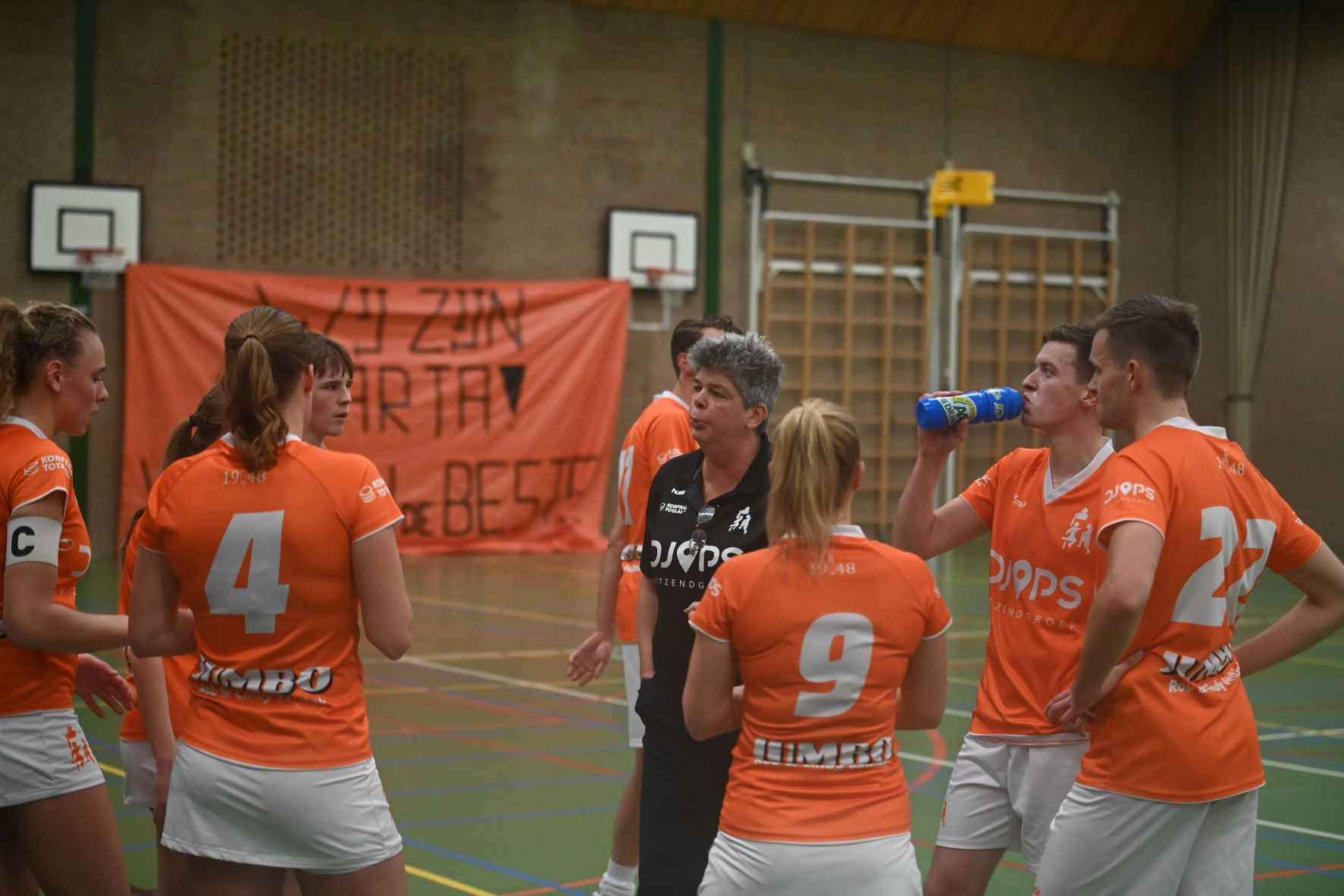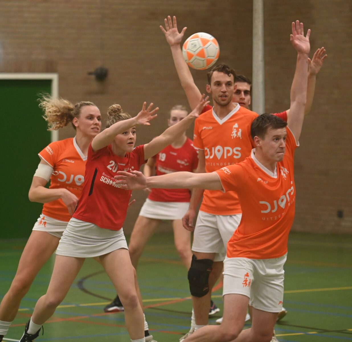 In een regelrechte derby heeft korfbalvereniging Telstar Schoonderbeek uit Hoevelaken in de Nijkerkse sporthal Watergoor met 16-24 gewonnen van Sparta Nijkerk/Djops. In de eerste helft ging het nog gelijk op en was er een lichte voorsprong voor Sparta Nijkerk (10-9), maar in de tweede helft bleek zo ongeveer iedere aanval van de Hoevelakers raak. Sparta Nijkerk verzuimde om tegenwicht te vinden en droop teleurgesteld af. Telstar voert ongeslagen de koppositie aan de competitie. Sparta Nijkerk/Djops staat derde van onderen. Later volgen de gedetailleerde verslagen van de afzonderlijke clubs. Foto Kees van den Heuvel