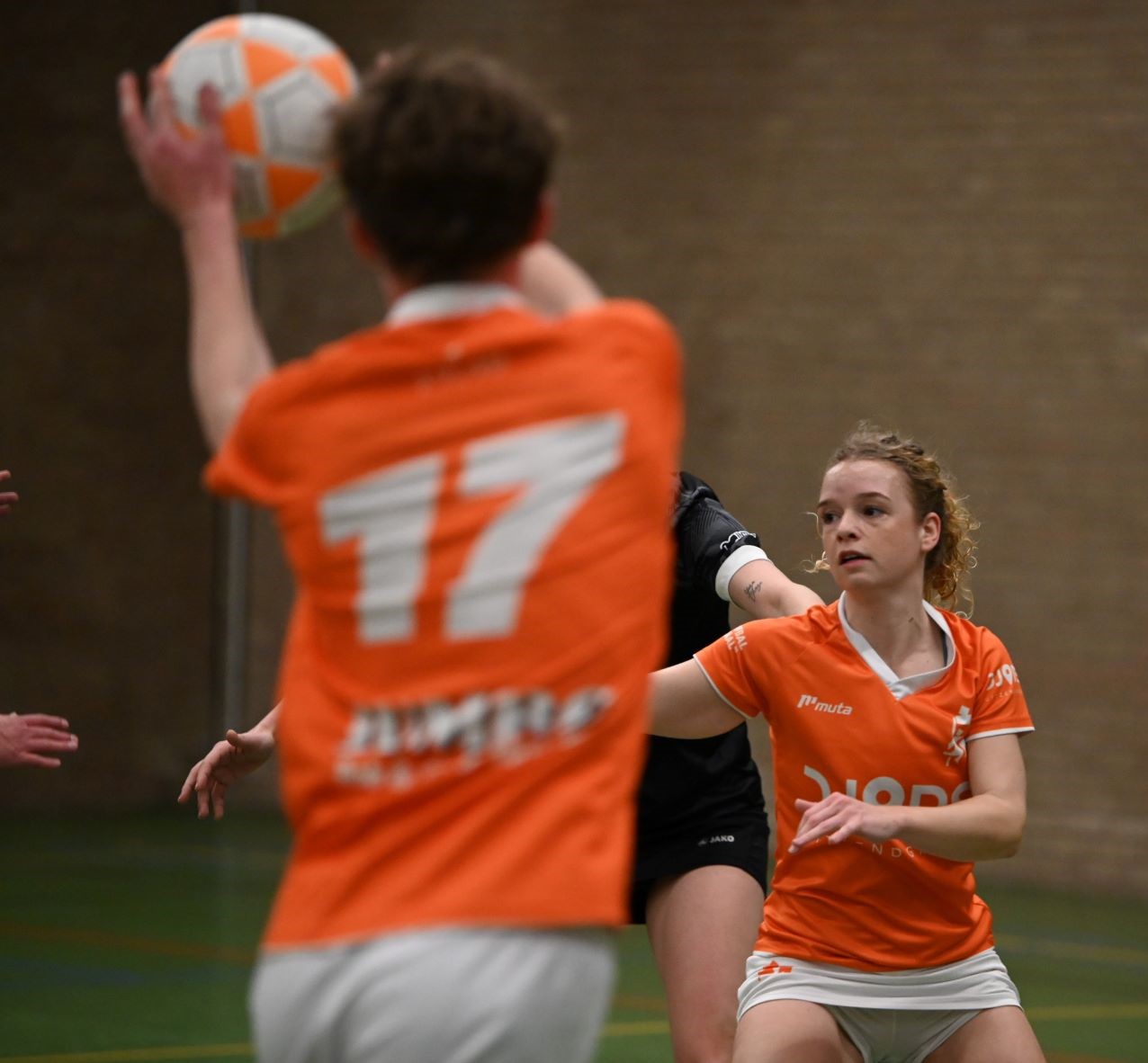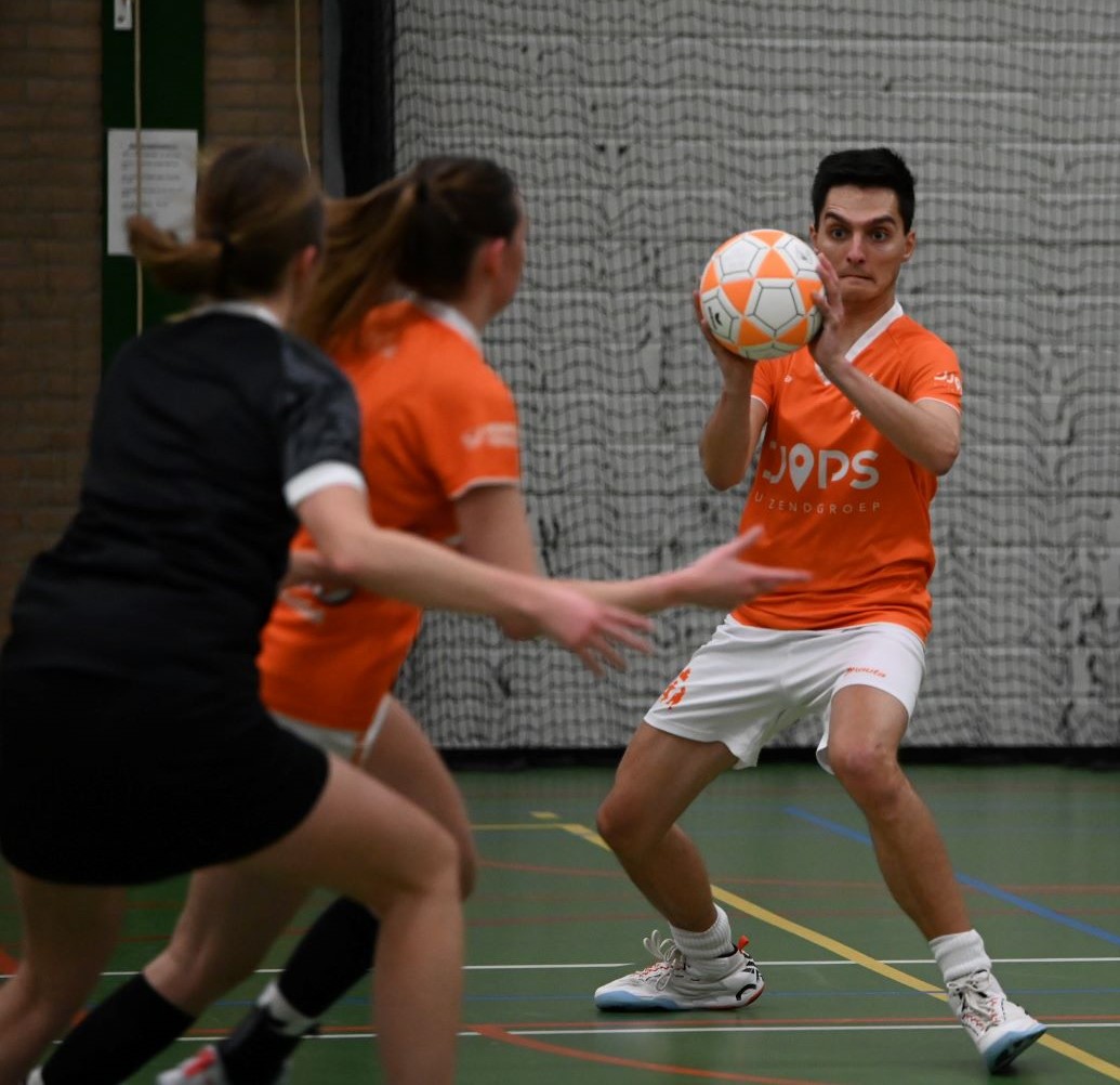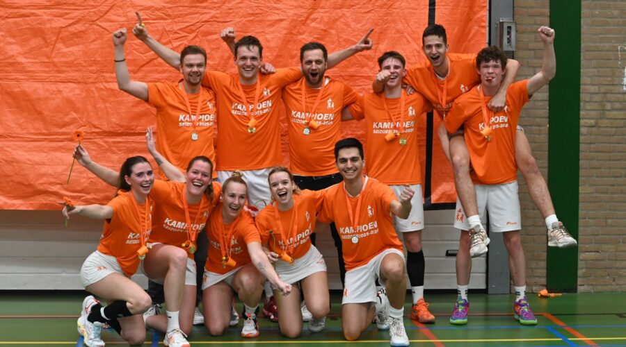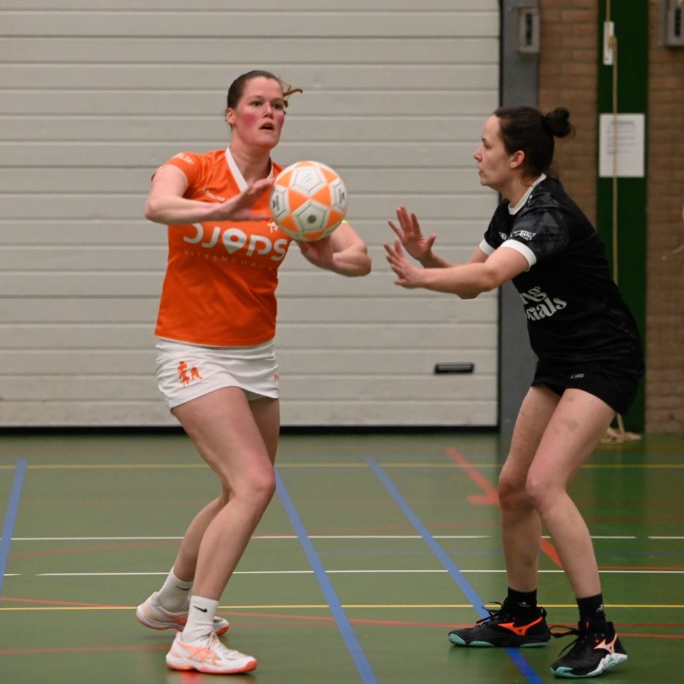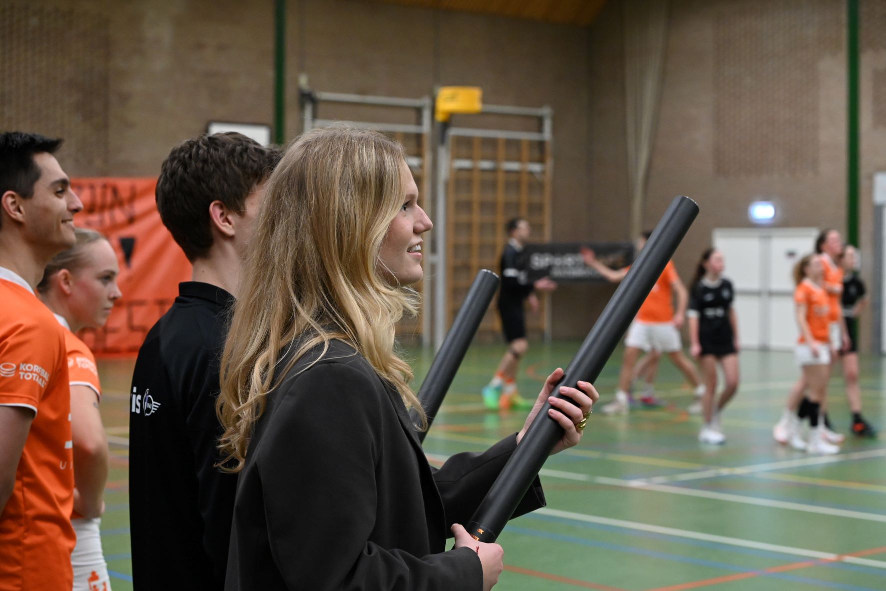 Na de zwaarbevochten overwinning op Atlantis een week eerder, waarbij Sparta het kampioenschap in eigen hand nam, was de spanning in de zaal voelbaar. HBC uit Beverwijk kwam echter alleen in het begin van het stuk voor. Waarschijnlijk kampte de Spartanen met iets teveel wedstrijdspanning en kwamen ze aanvankelijk op achterstand. Toen de scores opeen werden geregen, nam het zelfvertrouwen toe. Met een ruststand van 11-6 werd die dominantie al weerspiegeld en kon het thuispubliek zich halverwege al voorzichtig opmaken voor een feestje. In de tweede helft bleef Sparta geconcentreerd spelen. Waar de ploeg in eerdere wedstrijden soms nog de verdediging openzette, hielden ze nu, net als in de slotfase tegen Atlantis, de boel potdicht. HBC slaagde er nauwelijks in om door de Nijkerkse muur heen te breken. De aanvalsmachine van Sparta bleef ondertussen rustig doorbouwen aan de score, wat uiteindelijk resulteerde in een klinkende 18-8 einduitslag. Na het laatste fluitsignaal barstte het feest los in de hal en ontvingen de kampioenen een medaille, bos bloemen en een kampioensshirt. Foto en verslag Kees van den Heuvel