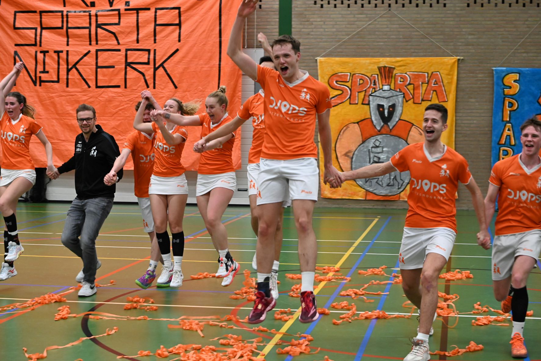 De missie is volbracht. In een kolkende sporthal Watergoor heeft Sparta (N)/Djops zaterdagavond 14 maart het kampioenschap in de tweede klasse veiliggesteld. De ploeg van het trainersduo Peter Vedder en Jochem van Ruler liet er geen gras over groeien en veegde tegenstander HBC met maar liefst 18-8 van de mat. Met deze overwinning dwingt de Nijkerkse formatie directe promotie af naar de eerste klasse, waar volgend seizoen voor het eerst met de schotklok zal worden gespeeld.