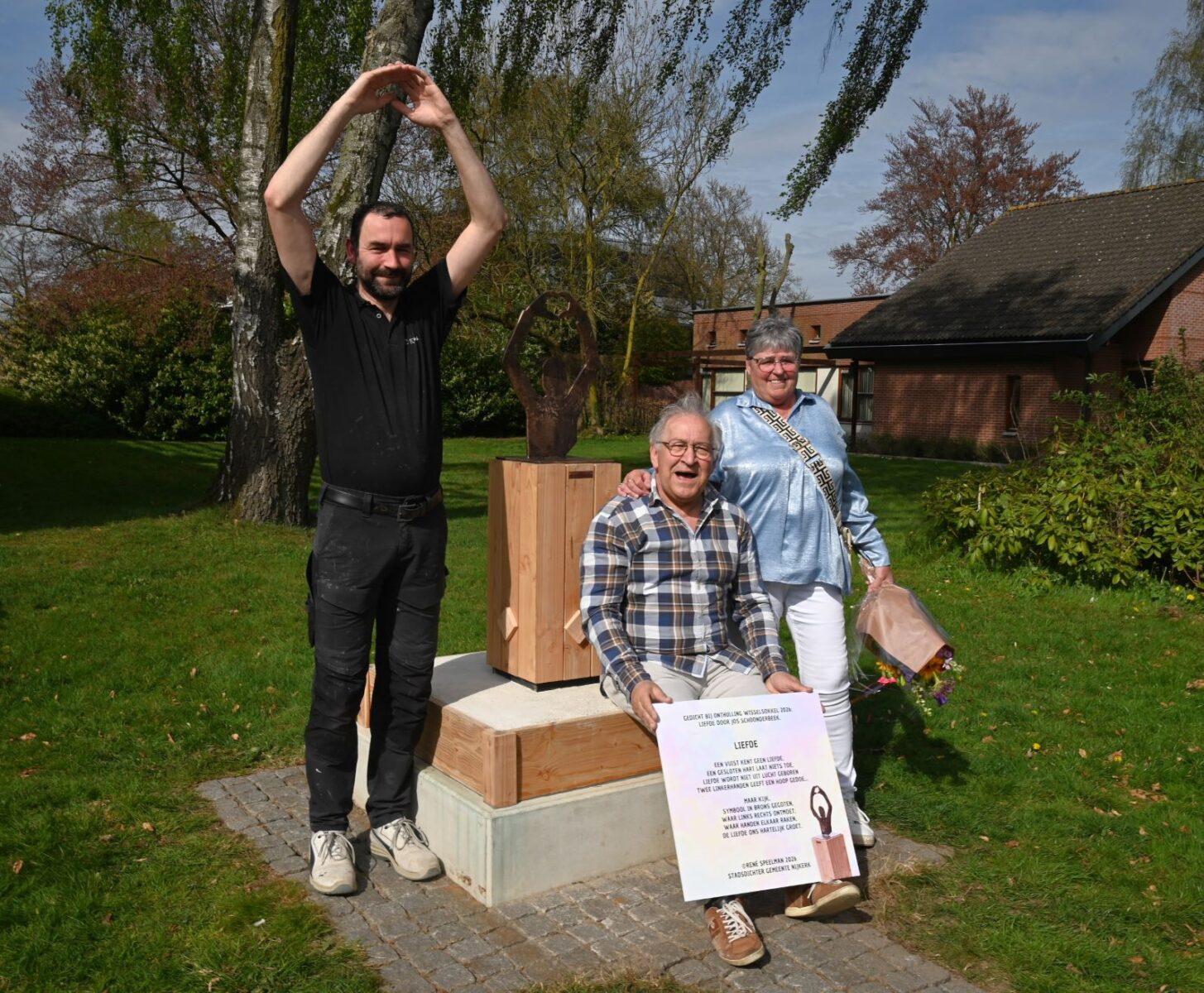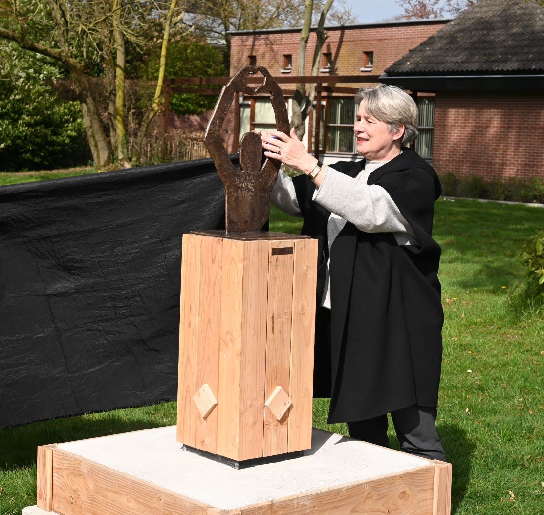 Onder grote belangstelling is woensdagmiddag 15 april het kunstwerk “De Liefde” officieel onthuld aan de Parklaan in Hoevelaken. Met een symbolische handeling gaf wethouder Mariëlle Broekman het winnende ontwerp van kunstenaar Jos Schoonderbeek vrij aan het publiek. Het beeld, dat de komende twee jaar de Wisselsokkel siert, bleek een zeer persoonlijke achtergrond te hebben: de familie van de kunstenaar stond aan de basis van het werk. Nadat Jos Schoonderbeek de publieksverkiezing met bijna de helft van de stemmen won, werd er met spanning uitgekeken naar de onthulling. Tijdens de ceremonie deelde de kunstenaar een bijzonder detail over het creatieproces. “De Liefde” is diep geworteld in zijn eigen gezinsleven; zijn zoon stond zelfs model voor het beeldhouwwerk. Dit persoonlijke element verklaart de voelbare tederheid en verbinding die het werk uitstraalt. Wethouder Mariëlle Broekman prees bij de onthulling de kracht van de lokale kunst: “Dit beeld laat zien waar de Wisselsokkel voor bedoeld is: kunst die raakt, verbindt en een verhaal vertelt dat voor iedereen herkenbaar is.”