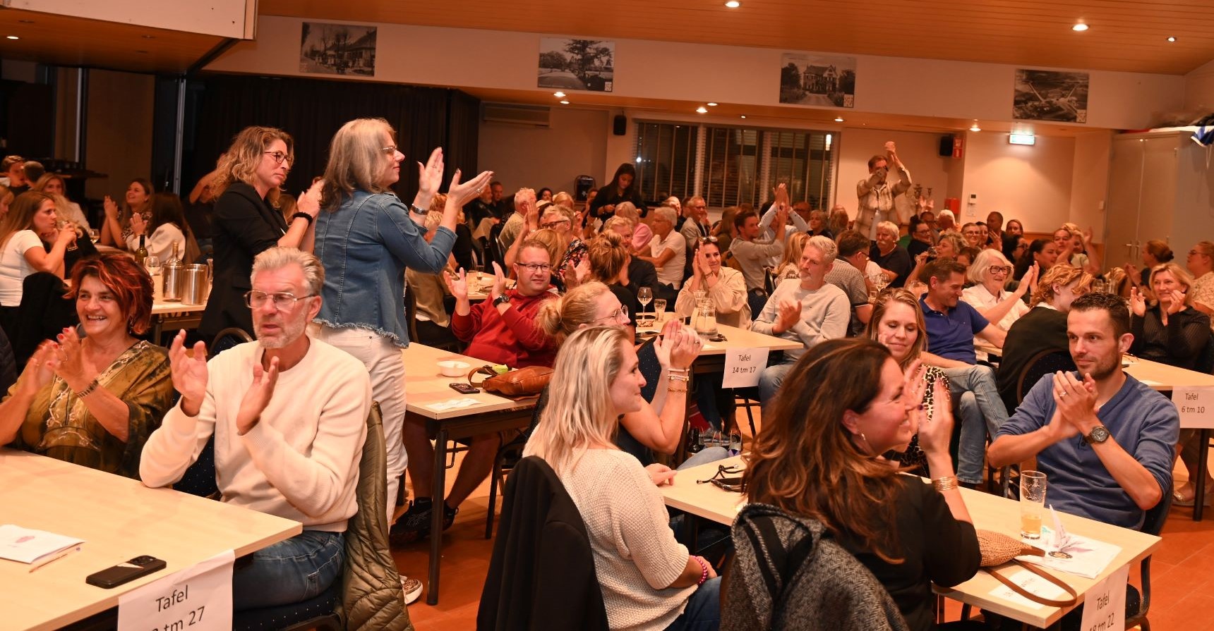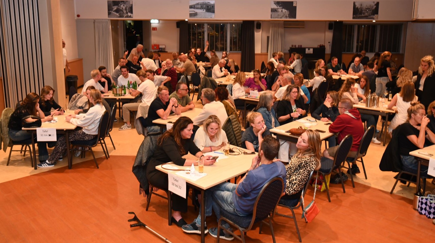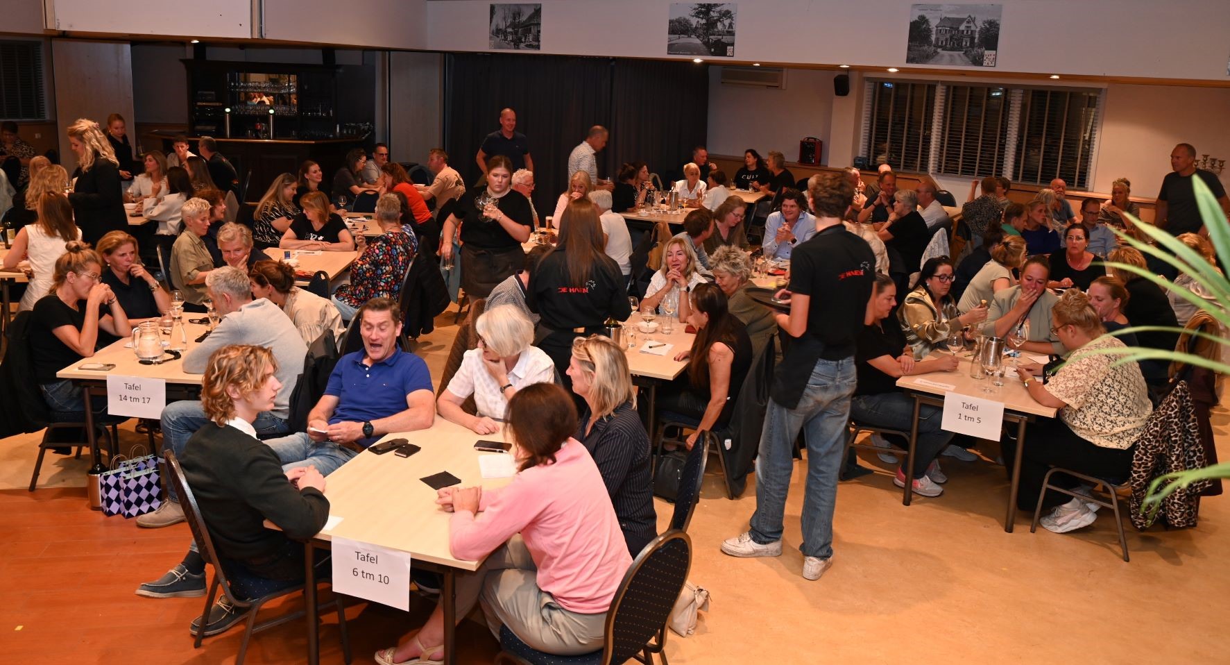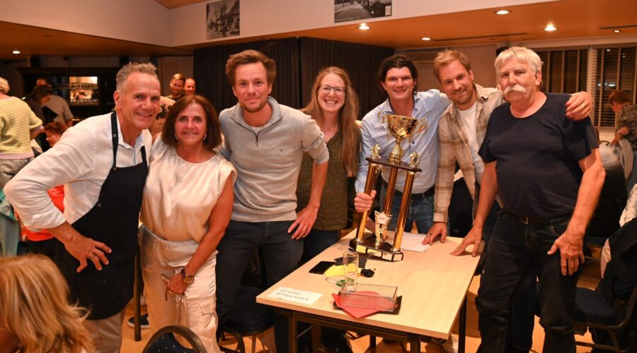 Na zestig afleveringen is het eind oefening voor de Pubquiz van Grand Café De Haen in Hoevelaken. Vrijdagavond 12 september was de laatste editie. De Stuw zat helemaal vol deelnemers, ruim 160 enthousiaste pubquizers. Het team dat vanaf het begin heeft deelgenomen, de Magnificent Five, mocht de wisselbeker naar huis nemen. De winnaars van de laatste editie werden de Cassettebandjes met 102,5 punten. De beker werd overhandigd door het echtpaar Horst. Er was een staande ovatie voor de organisatie. Nadien was er nog een groot feest in De Haen met DJ Chris en de zingende schilder. Foto Kees van den Heuvel