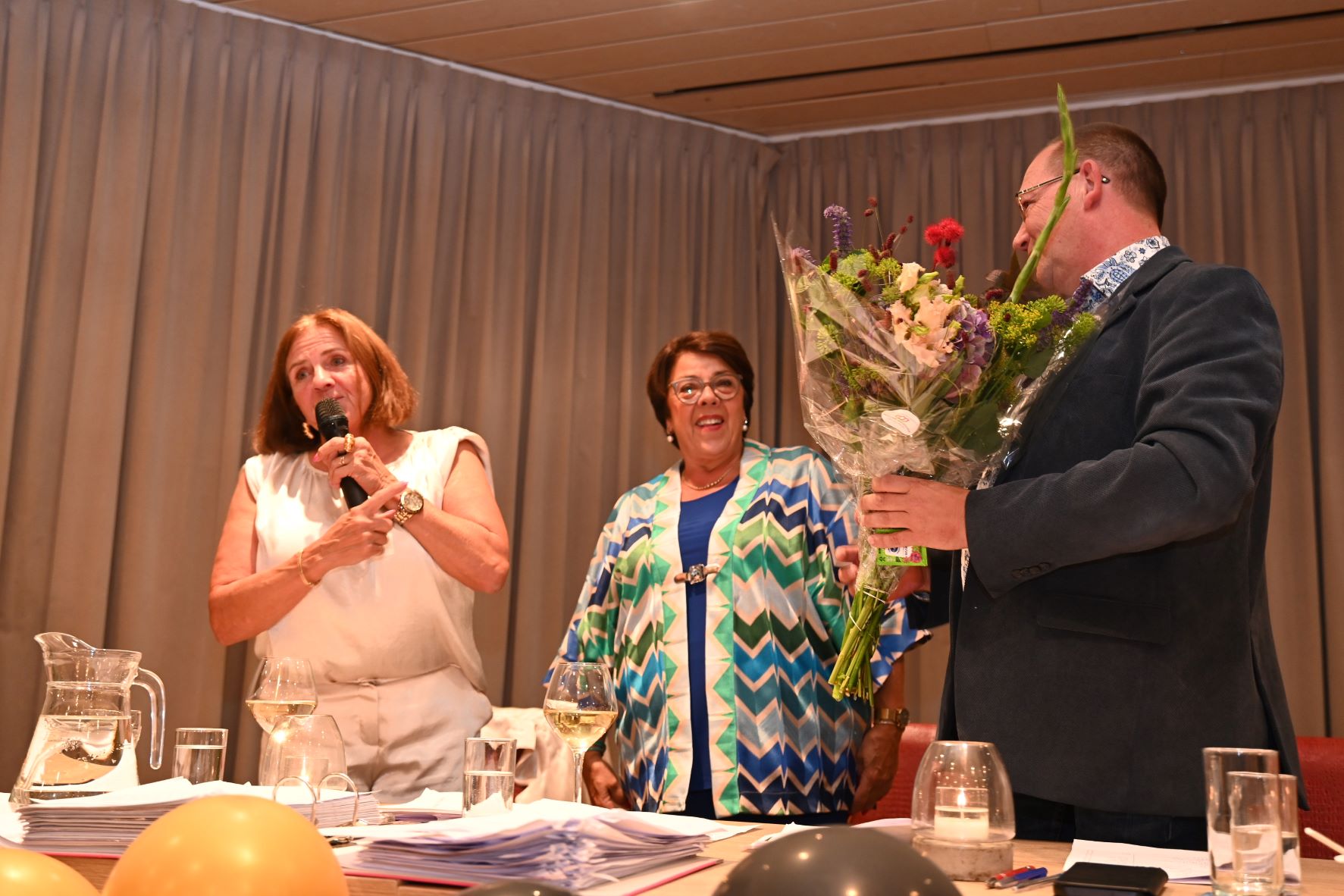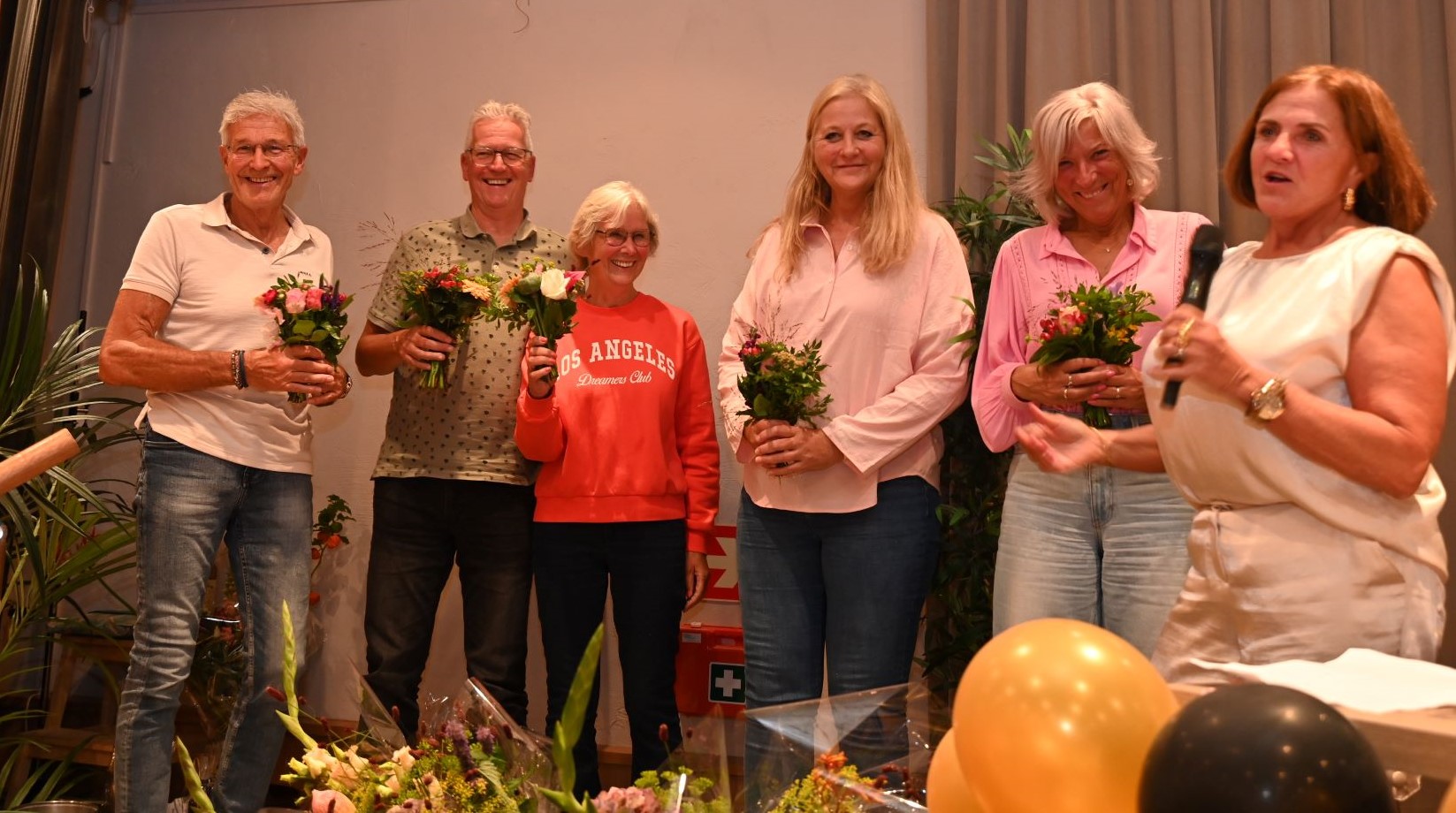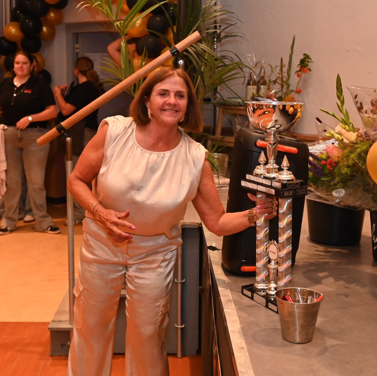 Na zestig afleveringen is het eind oefening voor de Pubquiz van Grand Café De Haen in Hoevelaken. Vrijdagavond 12 september was de laatste editie. De Stuw zat helemaal vol deelnemers, ruim 160 enthousiaste pubquizers. Het team dat vanaf het begin heeft deelgenomen, de Magnificent Five, mocht de wisselbeker naar huis nemen. De winnaars van de laatste editie werden de Cassettebandjes met 102,5 punten. De beker werd overhandigd door het echtpaar Horst. Er was een staande ovatie voor de organisatie. Nadien was er nog een groot feest in De Haen met DJ Chris en de zingende schilder. Foto Kees van den Heuvel
